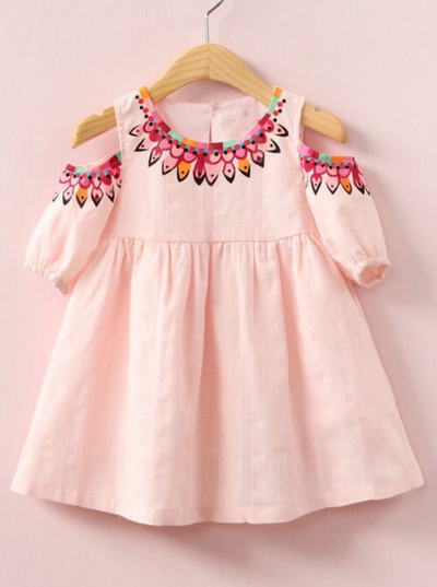A Rosy Glow Tribal Print Cold-Shoulder Dress