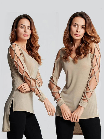 Women's Criss Cross Sleeve Hi-Lo Blouse