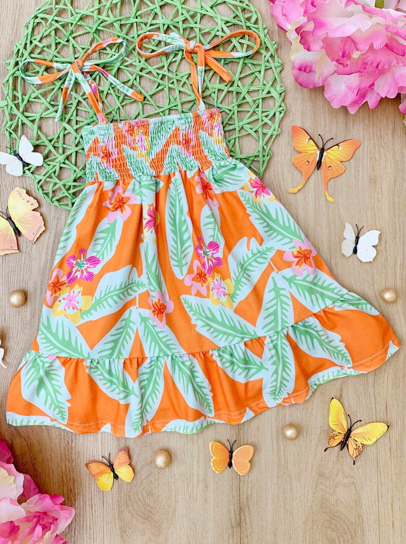 Your little girl and this adjustable shoulder strap tropical print sundress were made for each other! Its trendy silhouette is finished with a unique and vibrant print for a custom design look that is guaranteed to be a big hit for spring and summer!