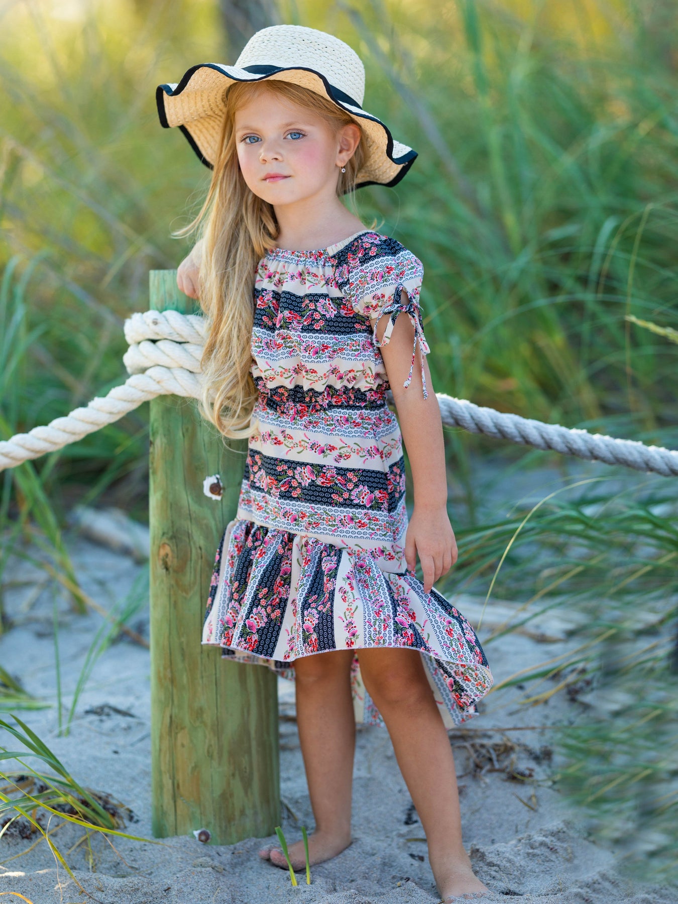 Welcome spring in a whole new way with our patchwork skirt set. Super cute floral print covers this adorable outfit from short sleeves to hi-lo hem for a fun, flirty look she can wear anywhere! Make it even prettier with flats, sandals, and a sun hat for the best pictures of the year!