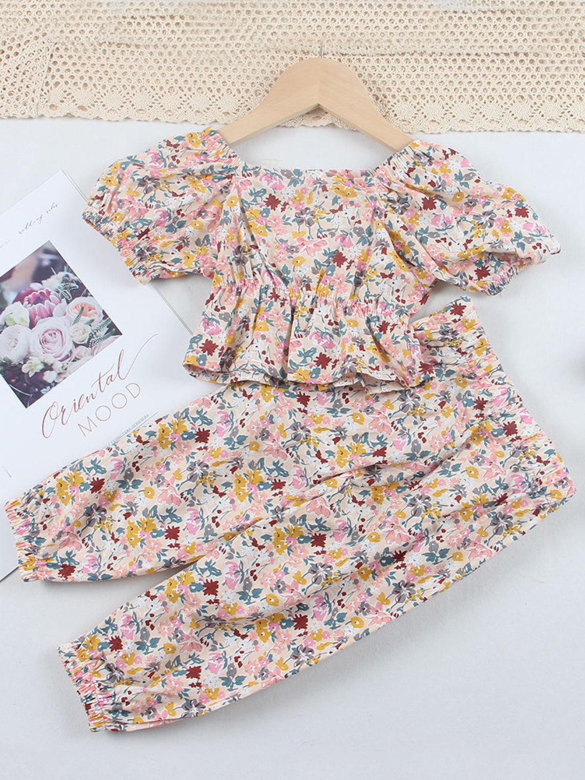 Give her ALL the flowers!! Our puff sleeve floral summer pants set features the prettiest blooms to brighten up your little girl's mood this season. She'll be strutting around with confidence in this extra cute outfit!