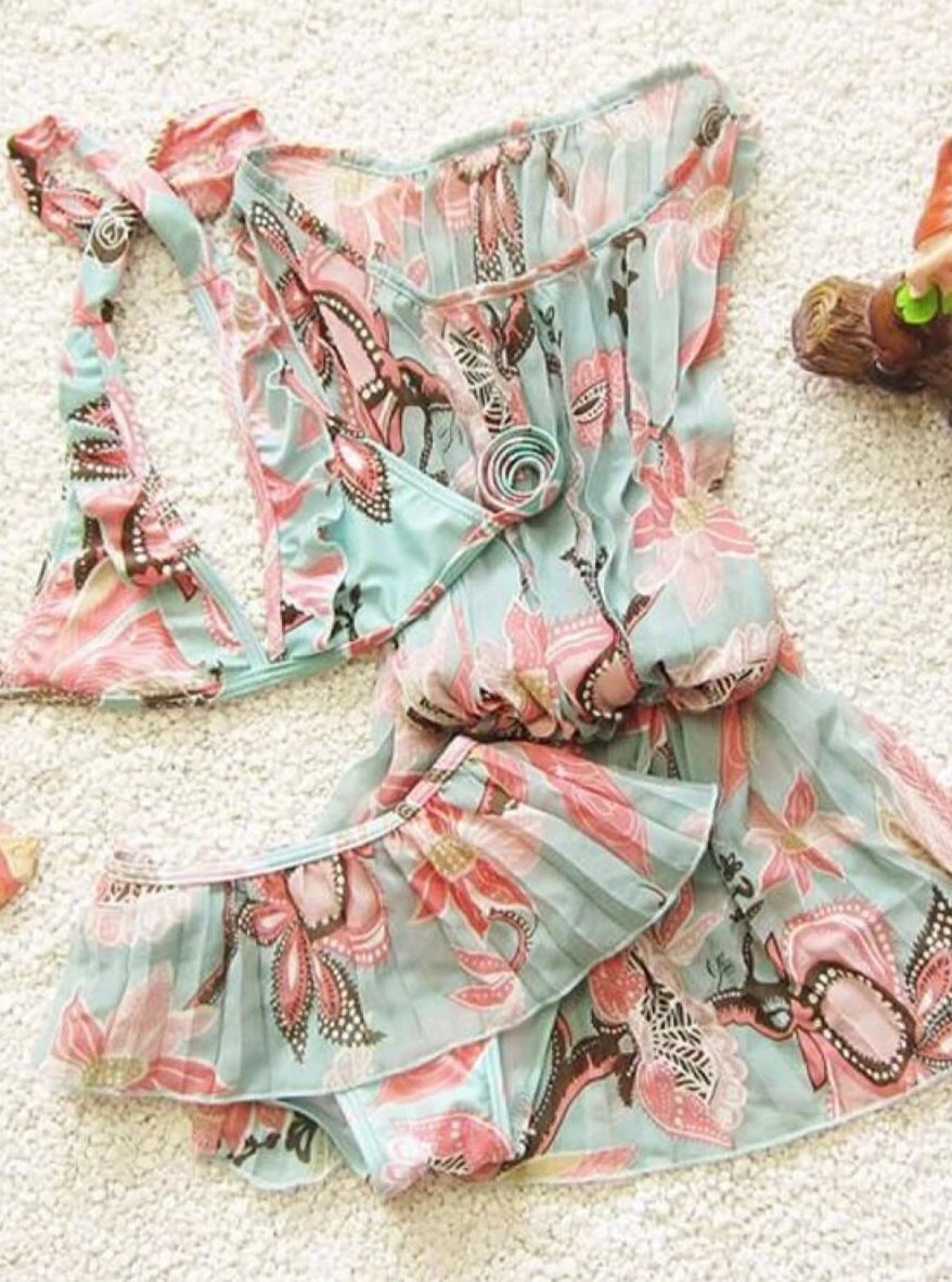 Style and comfort are combined in this complete floral swimsuit and matching cover up set for all day play and glamour! Just throw both pieces on and she's all set to soak up some sun!