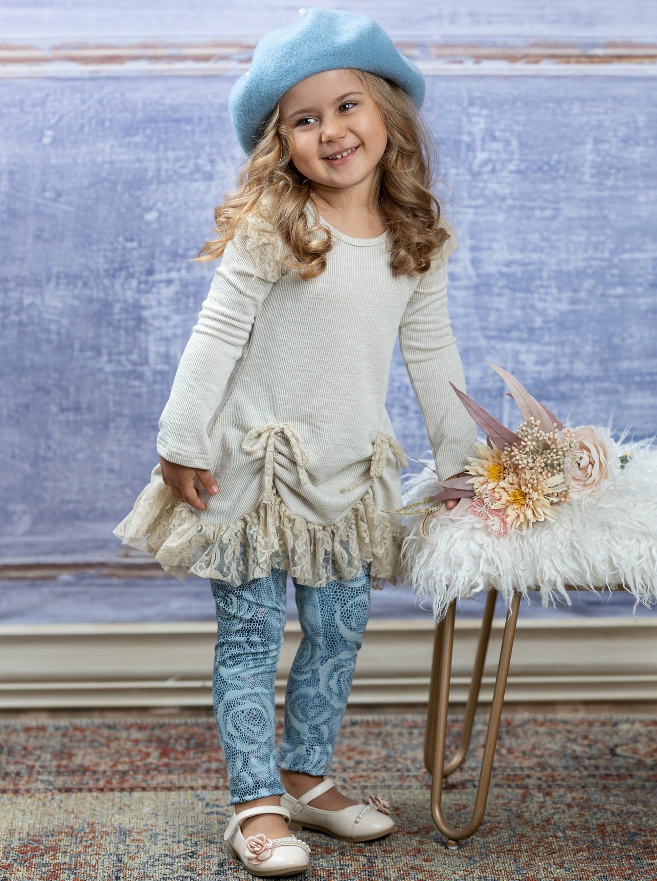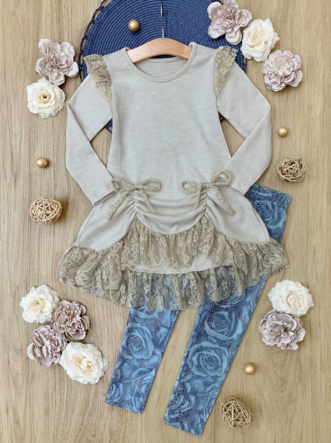 Shiny Rose Drawstring Ruffle Tunic & Legging Set