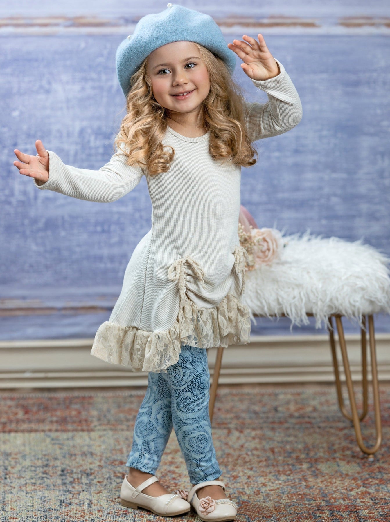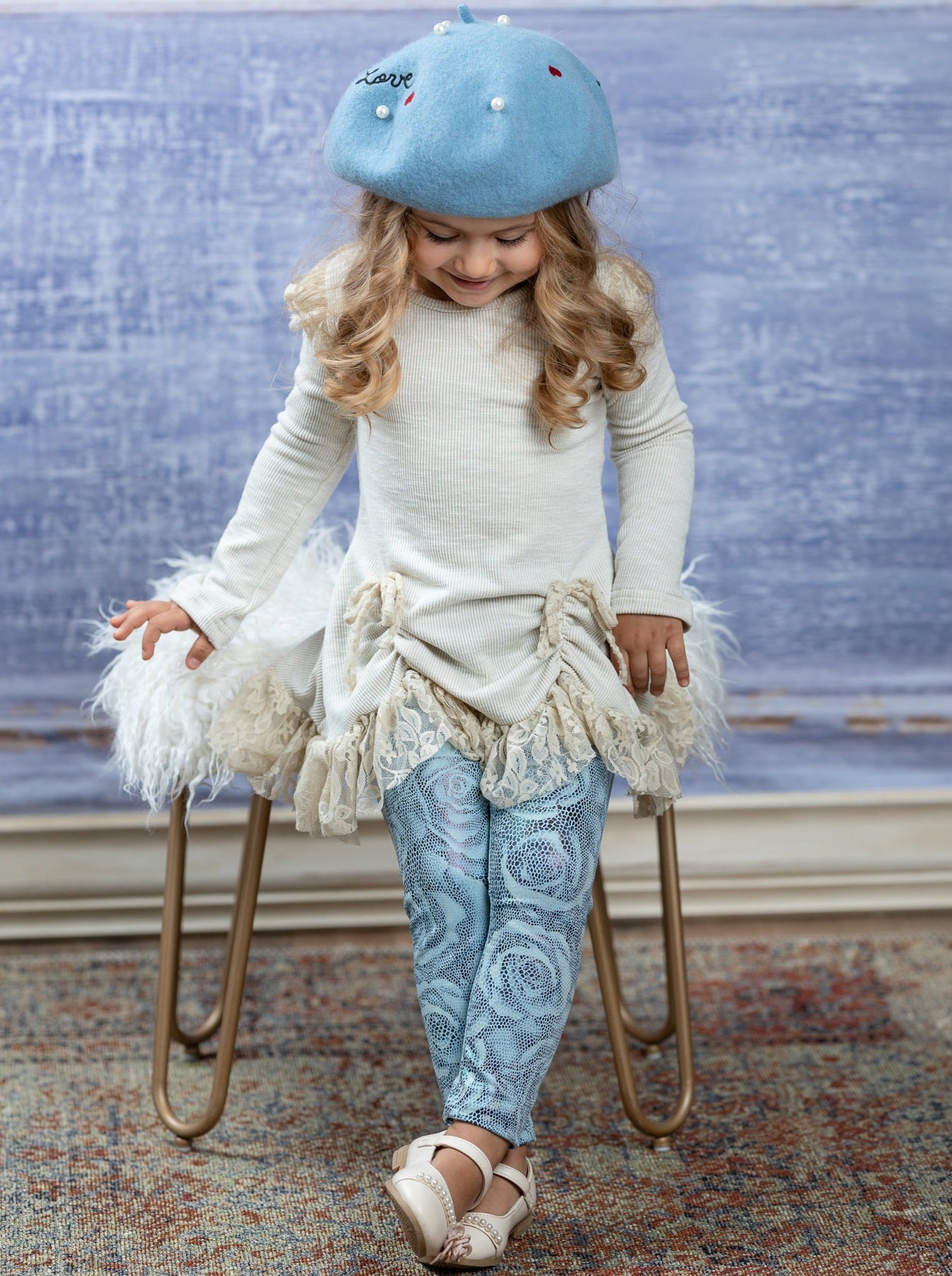Girls Cute Fall |  Shiny Rose Tunic & Legging Set - Mia Belle Girls