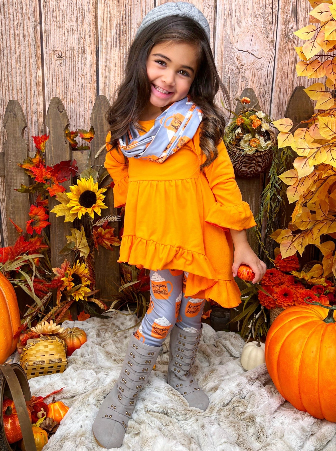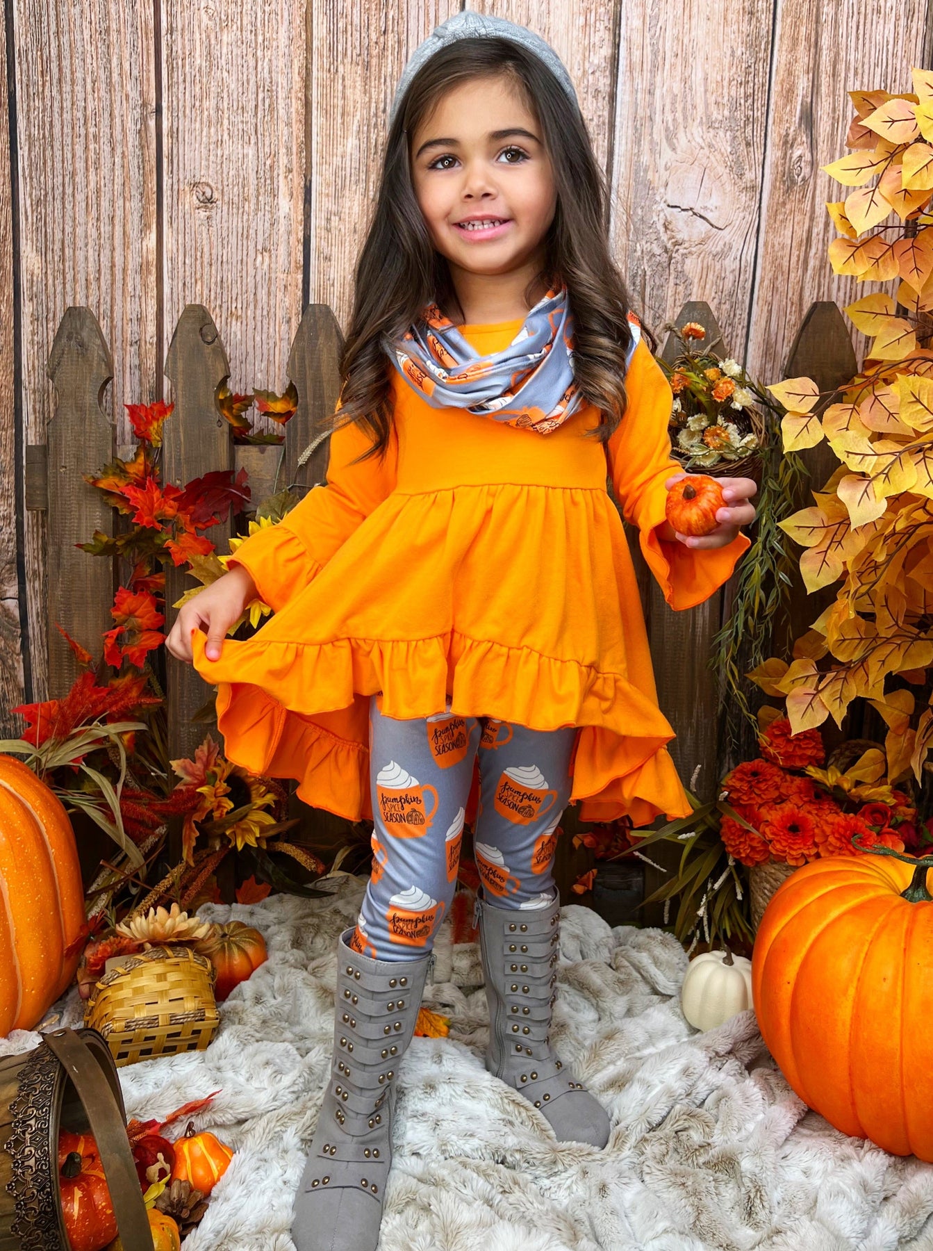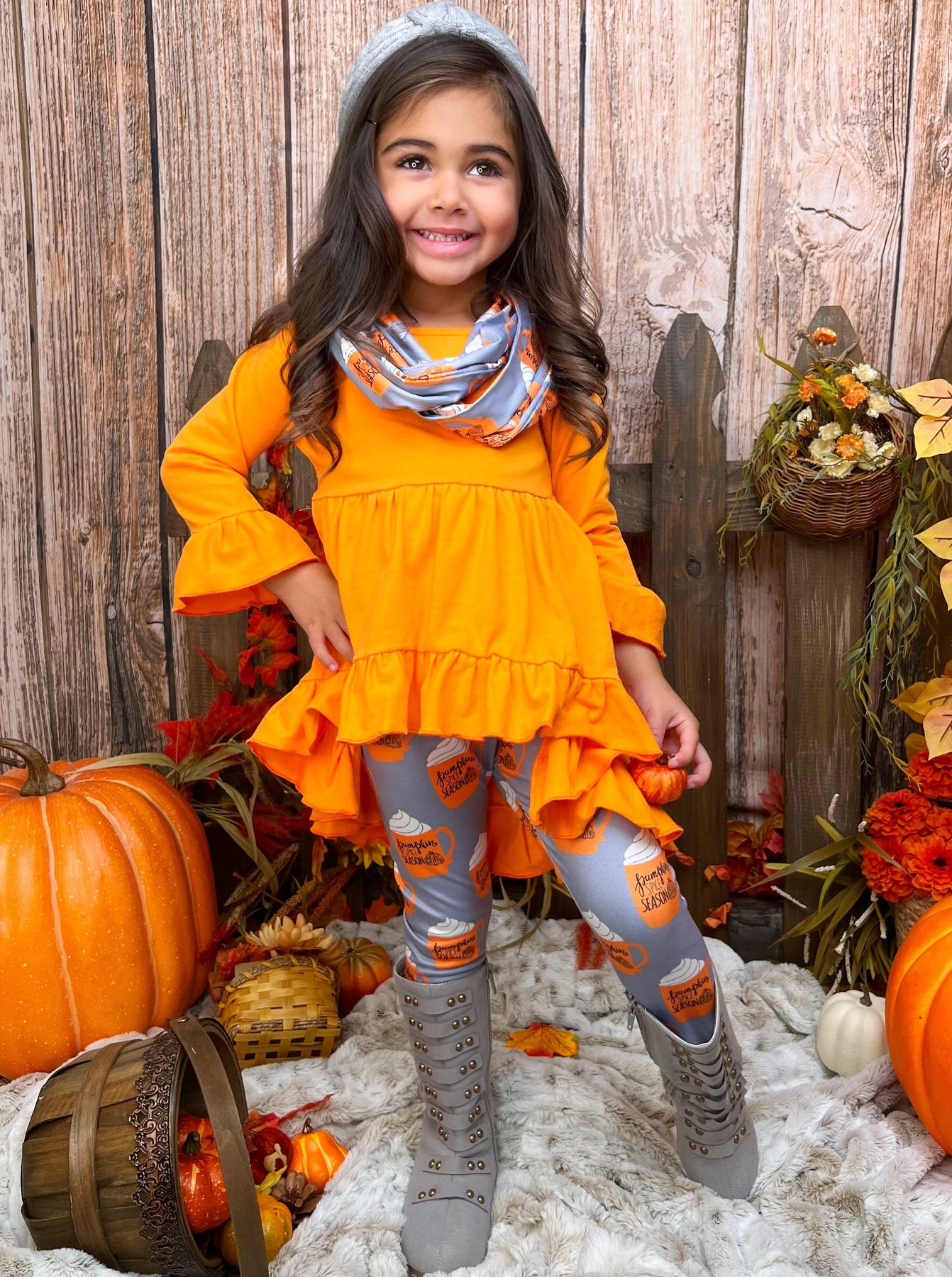 Girls Fall Outfits | Pumpkin Spice Season Tunic, Scarf & Legging Set