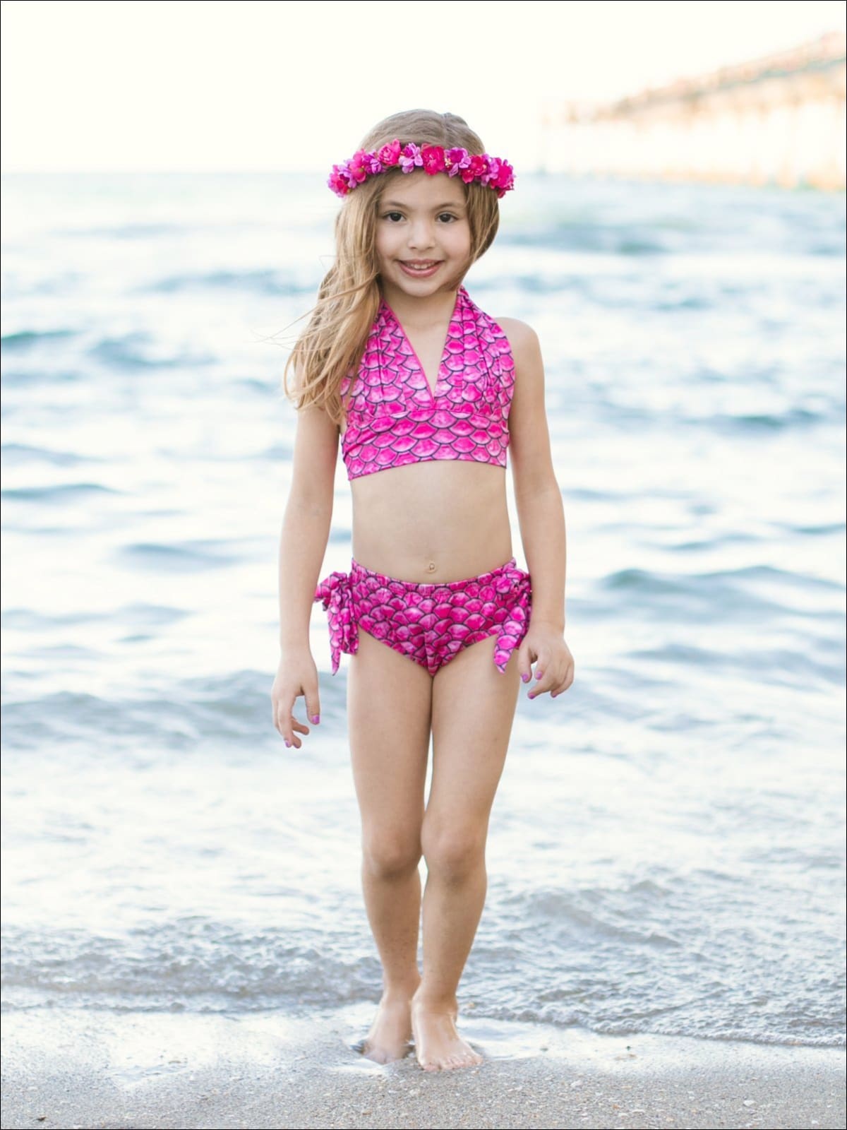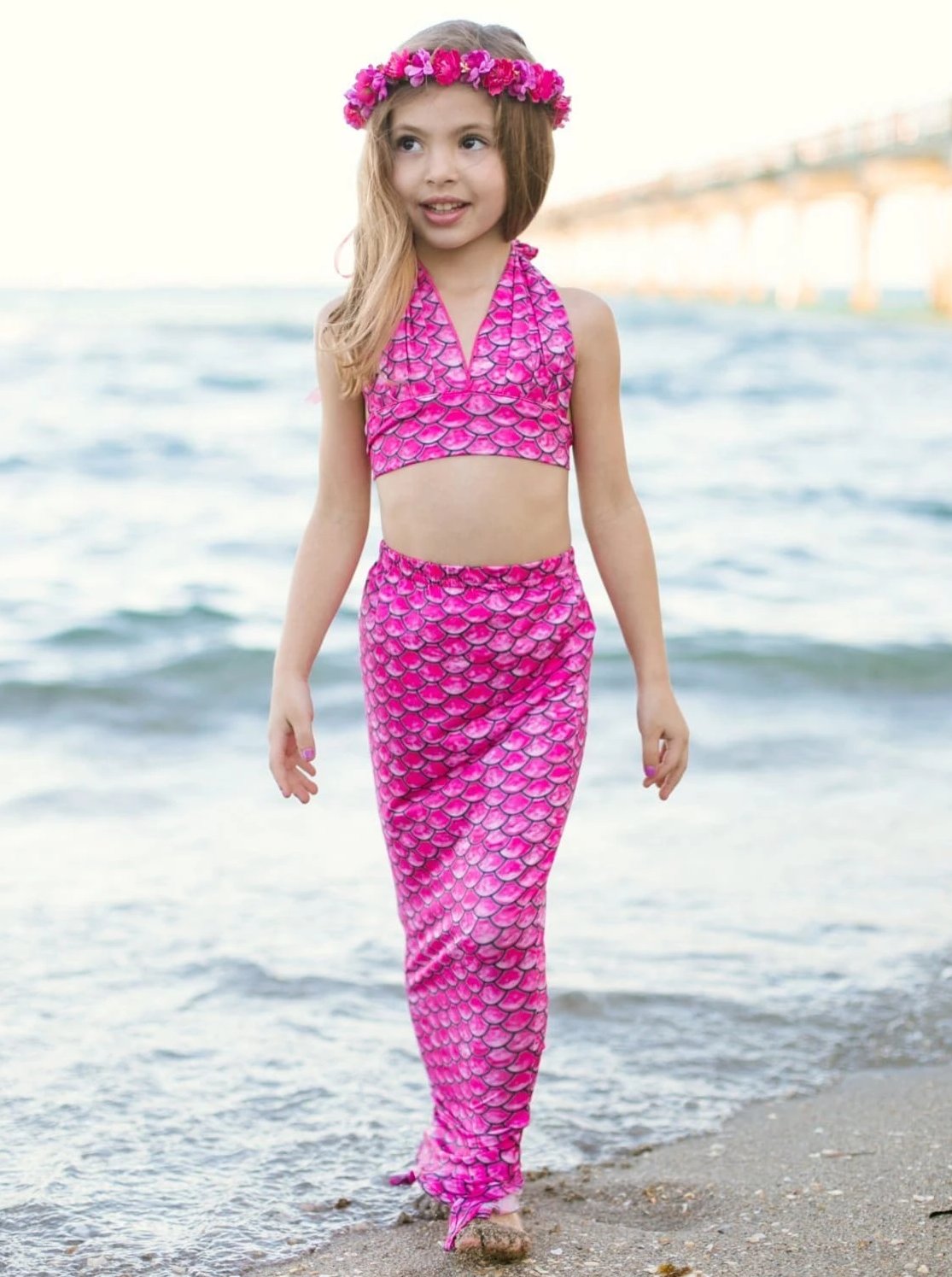 Little Mermaid who? Your water-loving cutie might just take over the fantastical role in this vibrant mermaid bikini and tail skirt cover up. Grant her the ultimate spring dream to master the water looking fabulous and mystical!