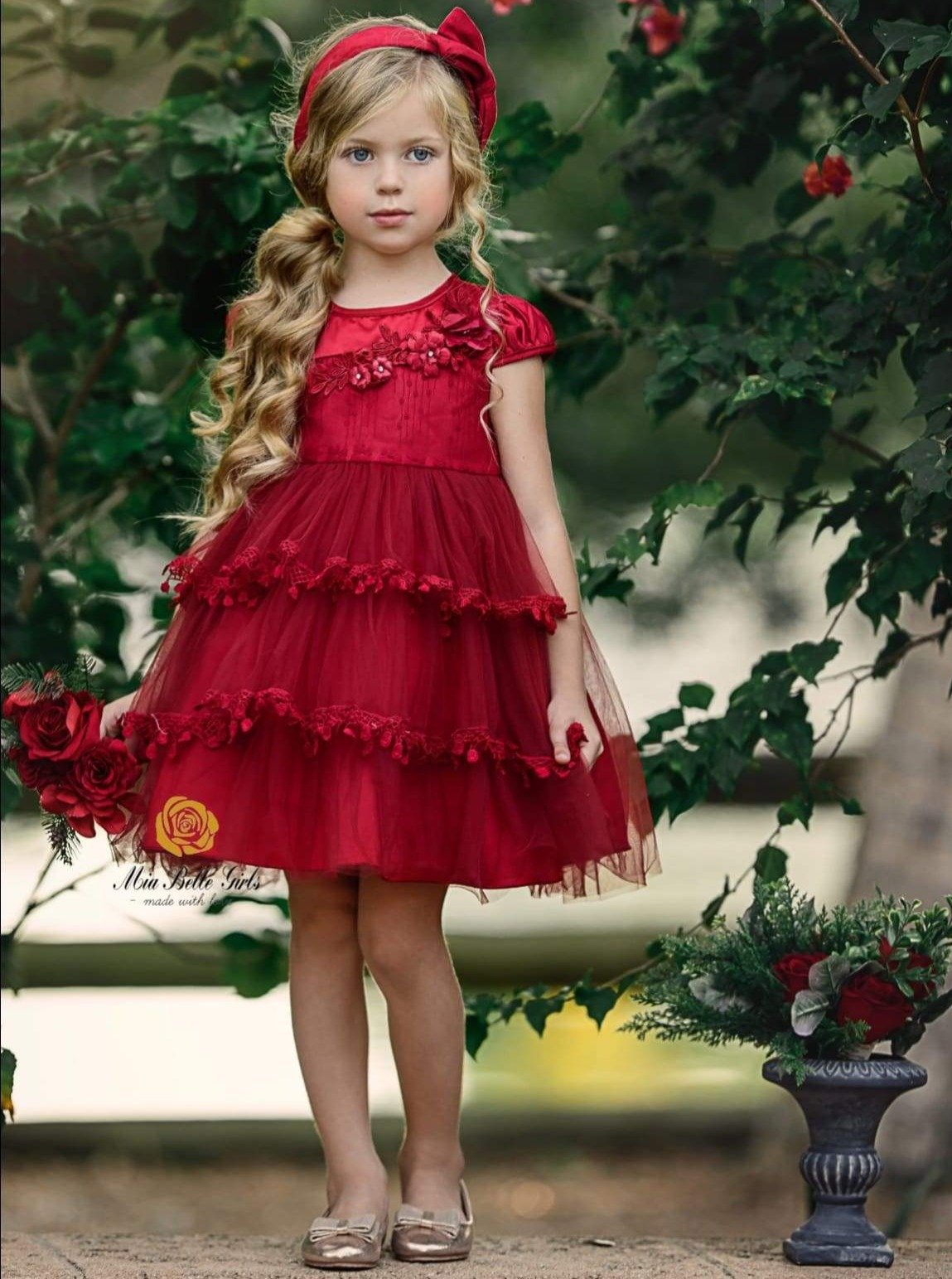 Your little princess will blossom glamorously throughout the season in this must-have floral dress. The ideal angelic piece for any holiday or occasion with ruffles, tulle, embroidered applique, and a sweet silhouette!