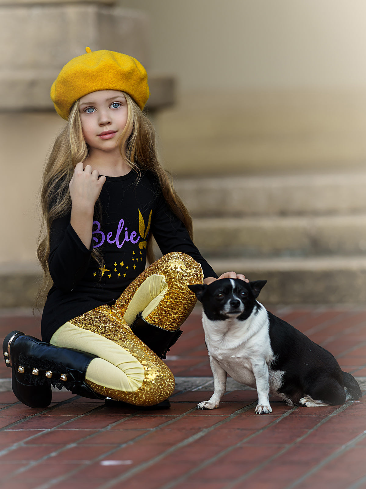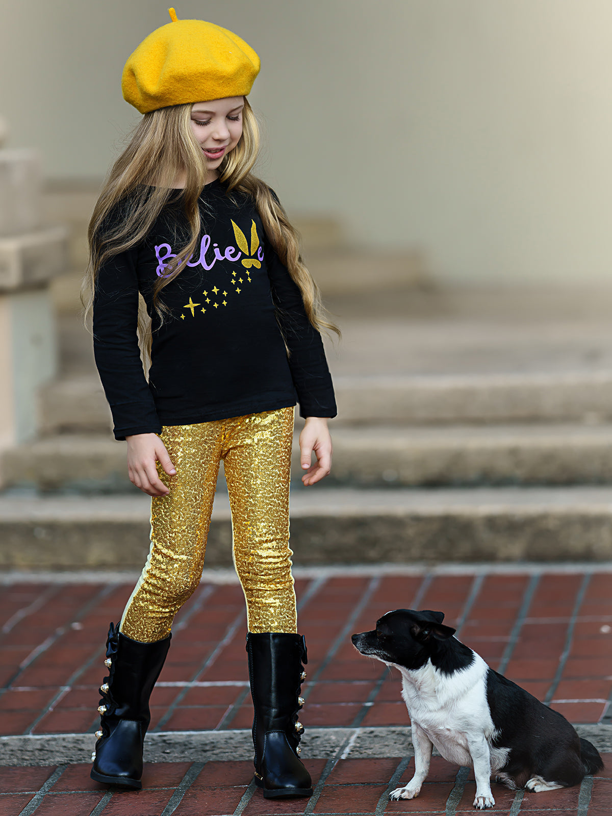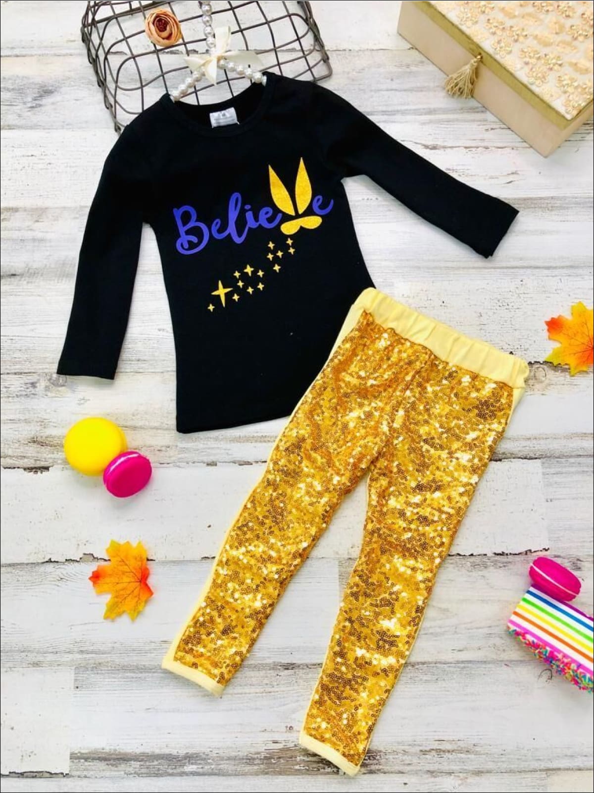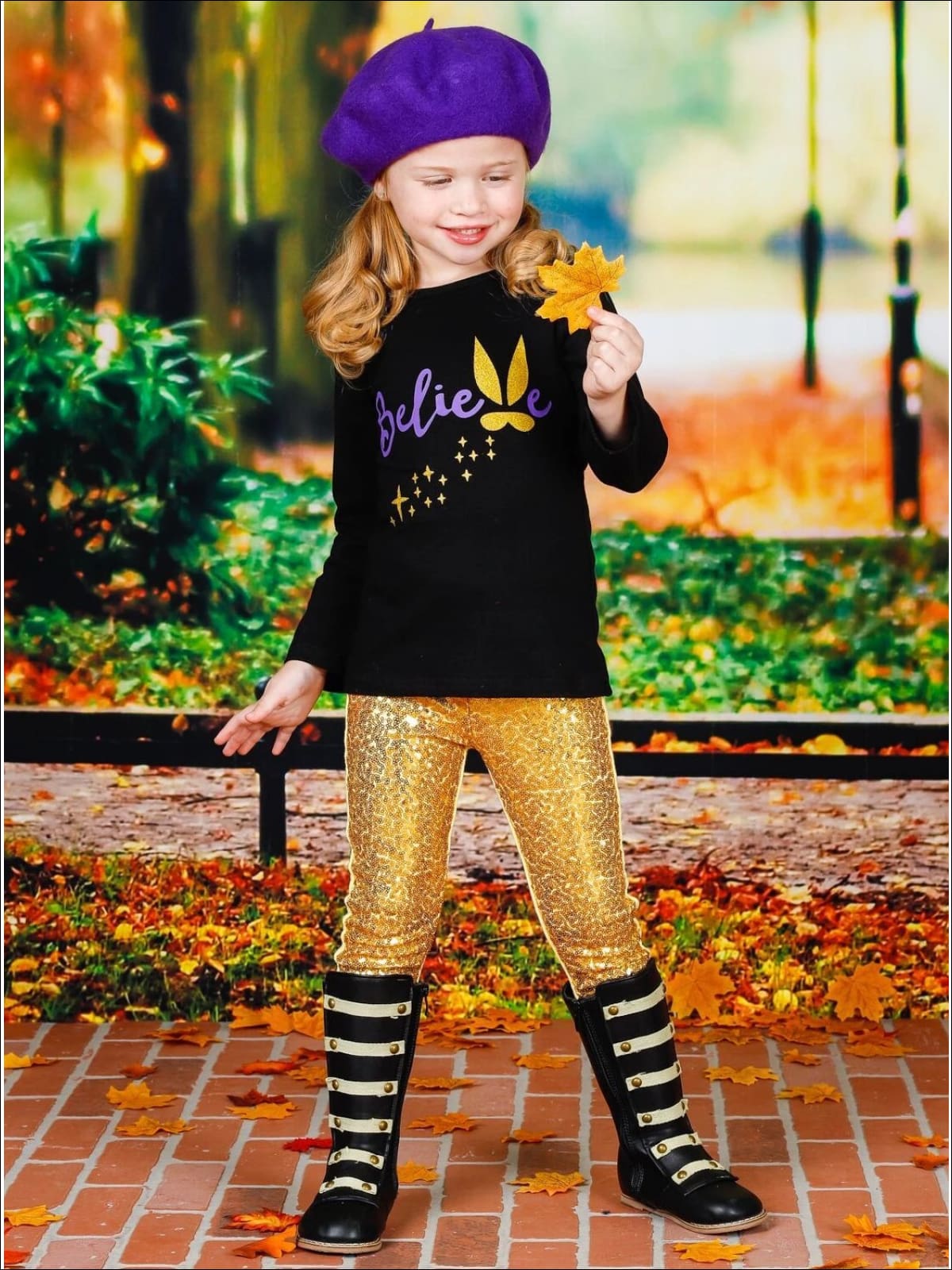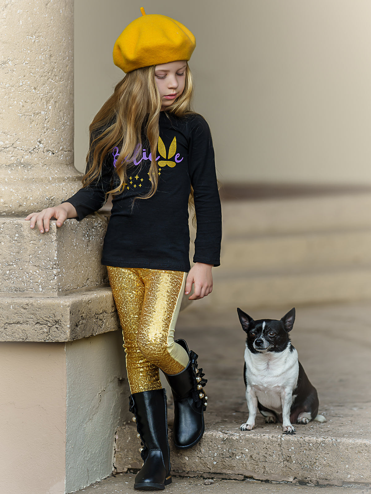 Girls "Believe" Bunny Long Sleeve Tunic & Sequin Legging Set