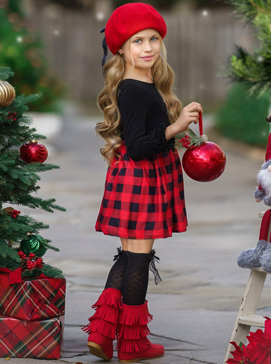 Calling all plaid-loving fashionistas! We've got the perfect girls' Christmas plaid dress for you! It features long sleeves and ruffles at the cuffs. Style it with our chic ballerinas flats or some cute boots to finish the look. We believe in only the best winter styles for your little girl.