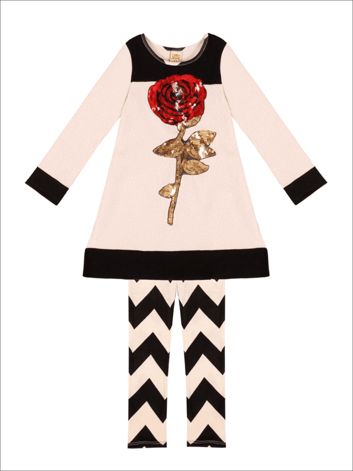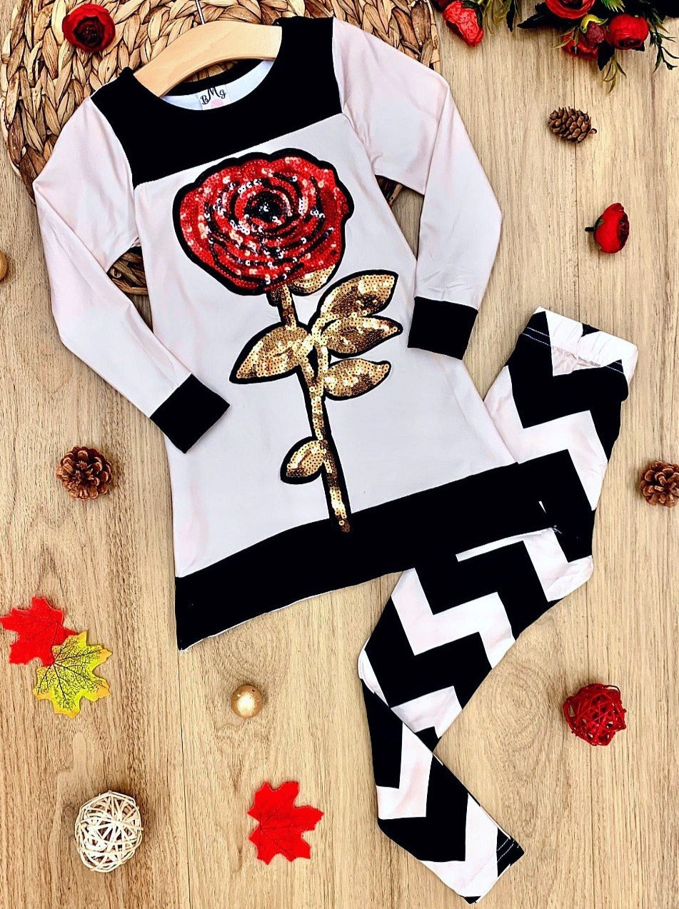 Girls Sequin Rose Tunic & Zigzag Leggings Set - Mia Belle Girls