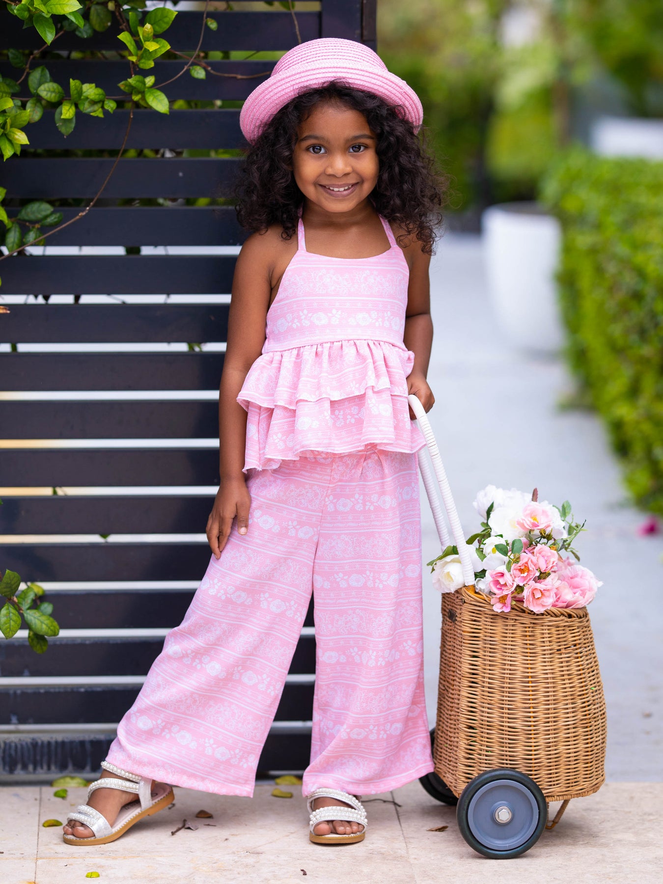 Cute Kids Outfit | Girls Spring Floral Tiered Ruffle Top & Pants Set