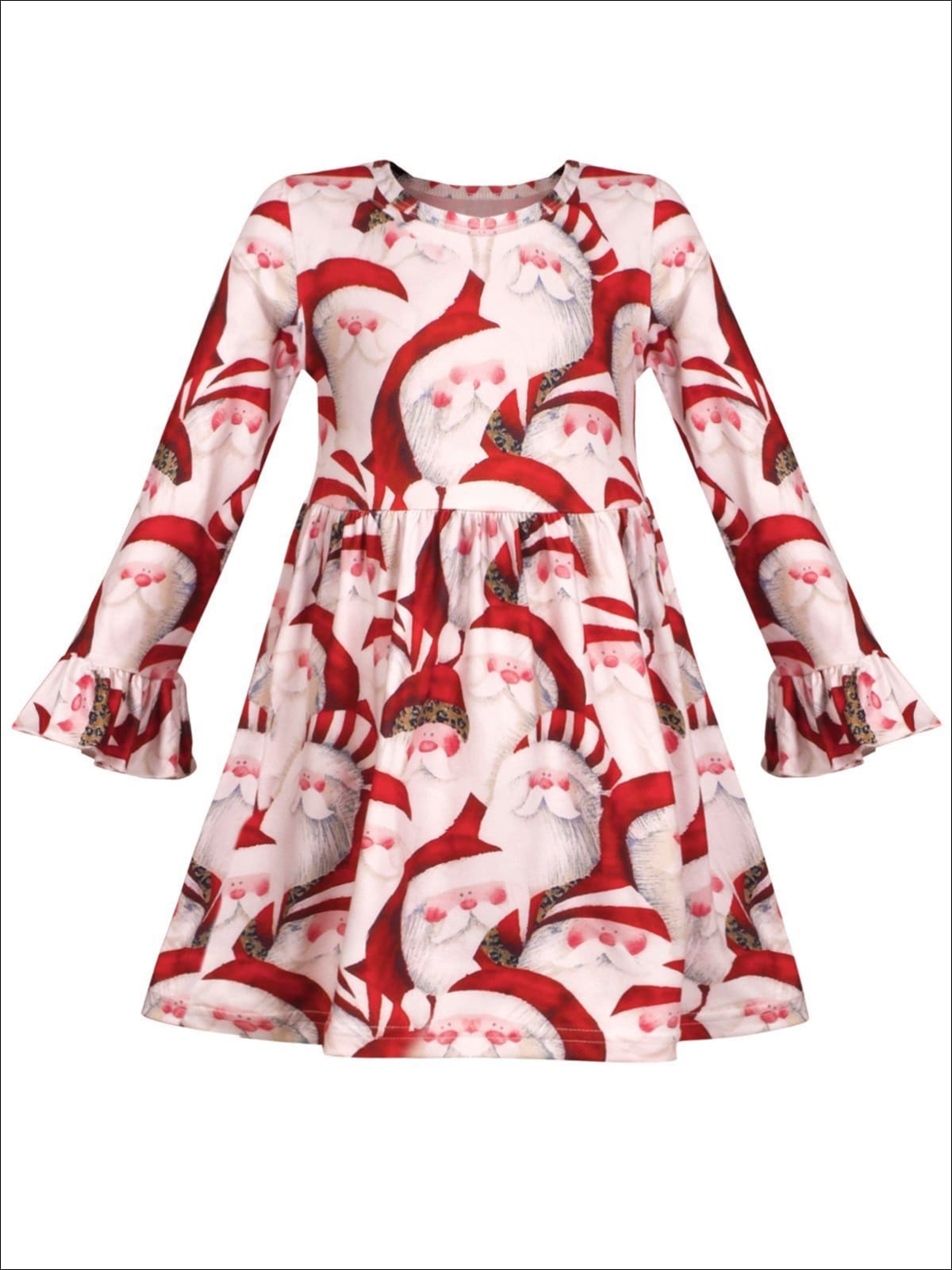 Girls Christmas Themed Santa Print Long Bell Sleeve Dress