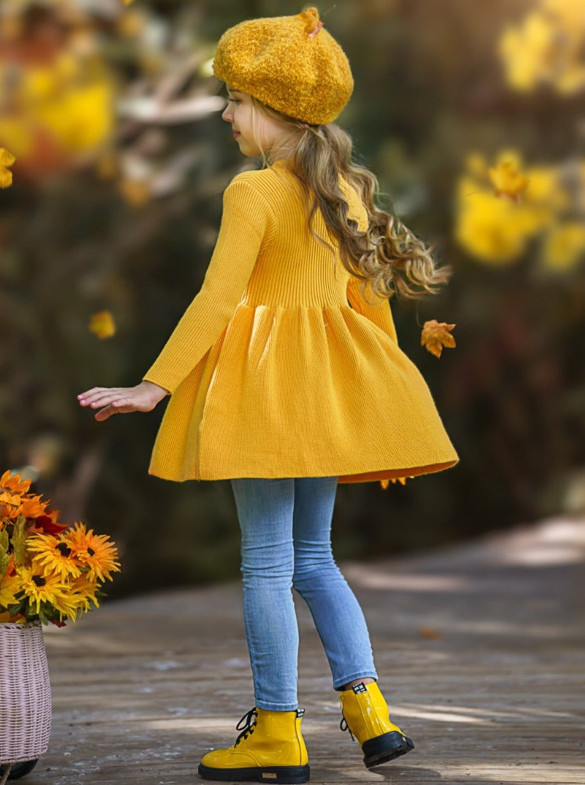 Girls Cozy Weather Knit Tunic - yellow