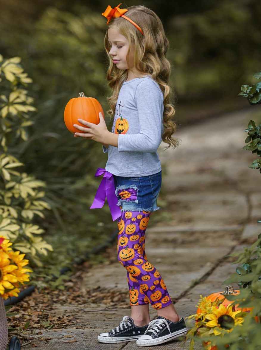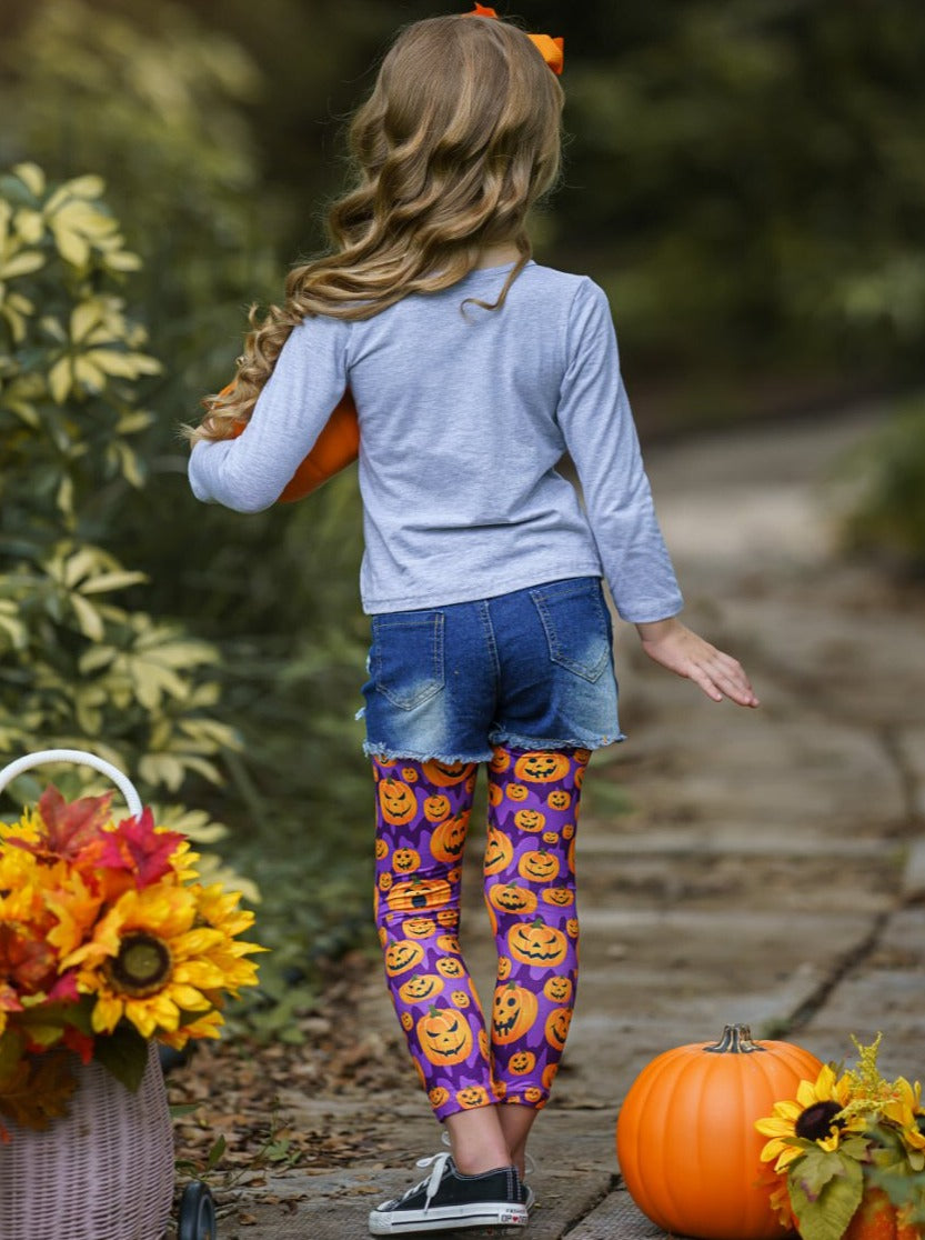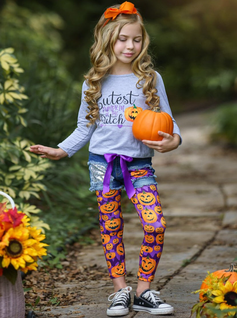 - Is your little girl the cutest pumpkin in the patch? Help her show it with this too-cute 3-piece legging set! With purple accents add some witchy charm to the Jack-o-lantern graphics.