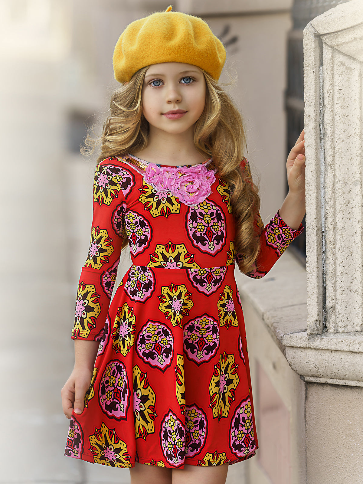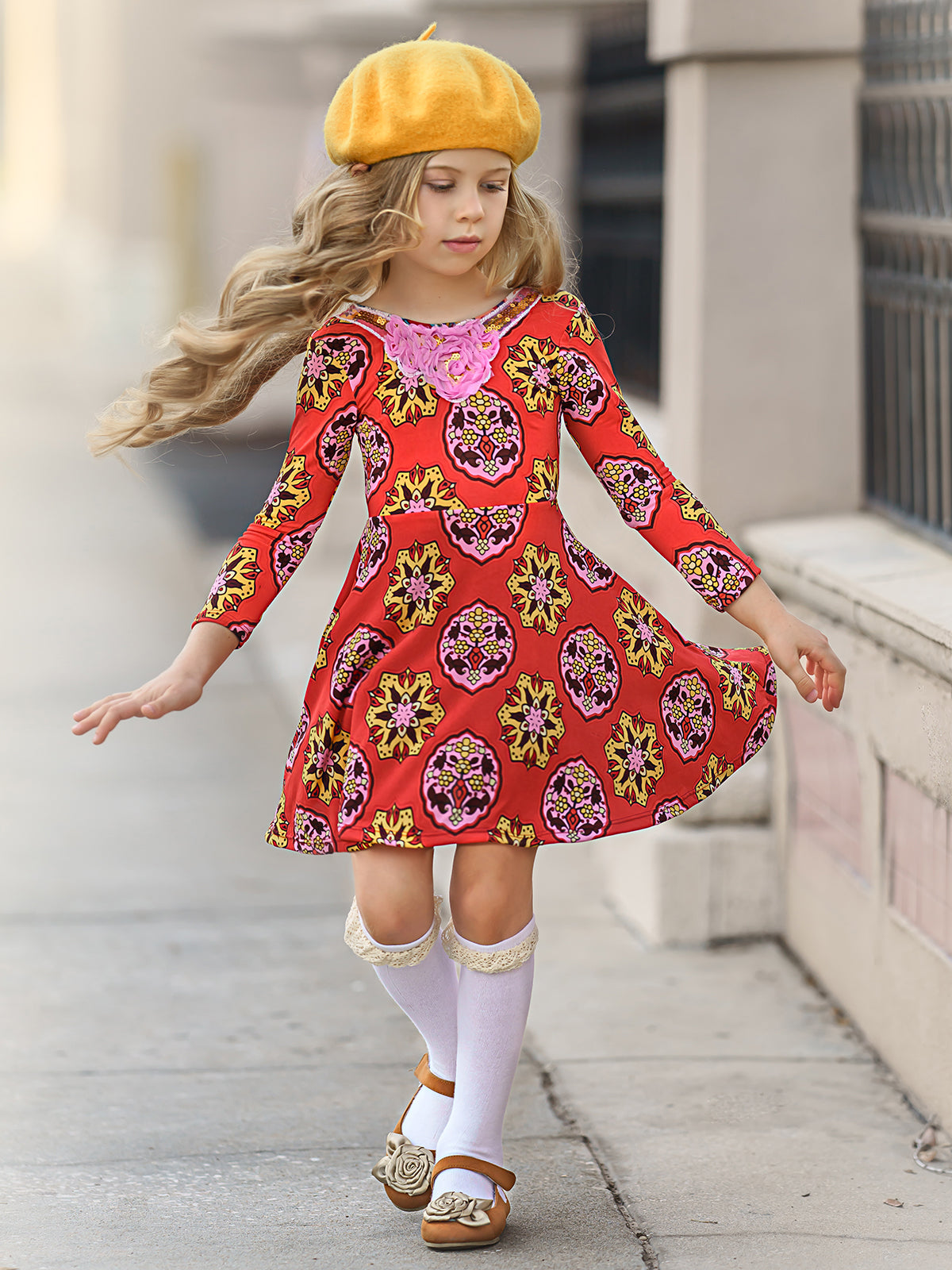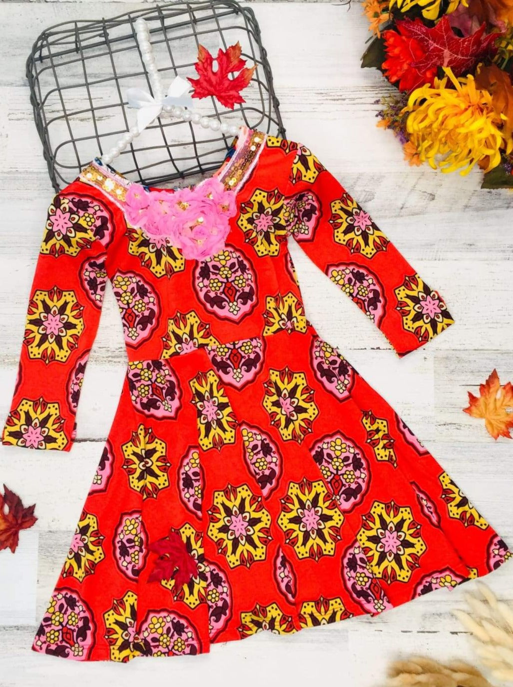 Now THESE are flowers she’ll want to pick! This fall floral freshness enhanced with a bow and scoop back detail will make her the brightest & trendiest cutie in the garden.