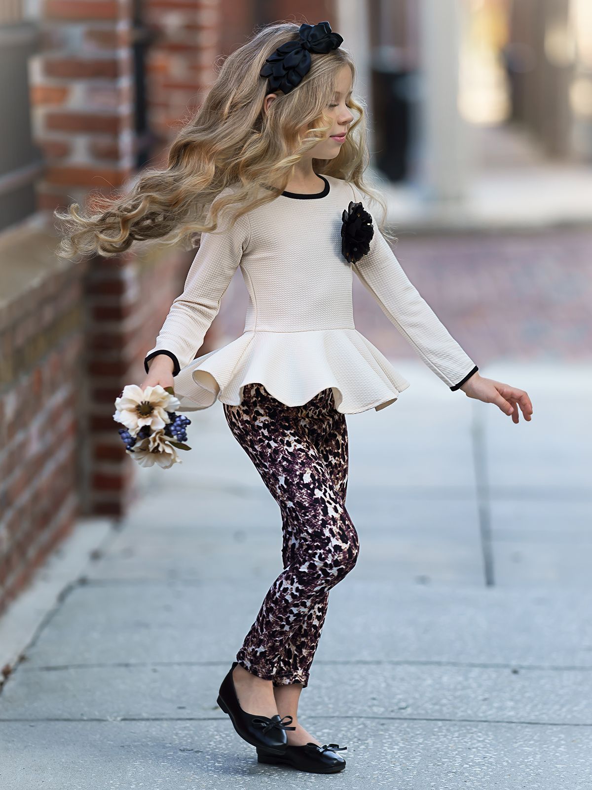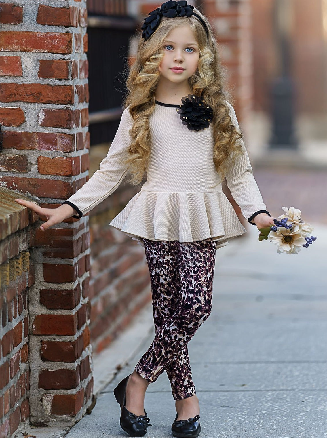 Dress your little princess in true charming fashion with this adorable set featuring a charming peplum tunic and leggings perfect for fall coverage. The charming details ensure she's looking camera-ready no matter the occasion!