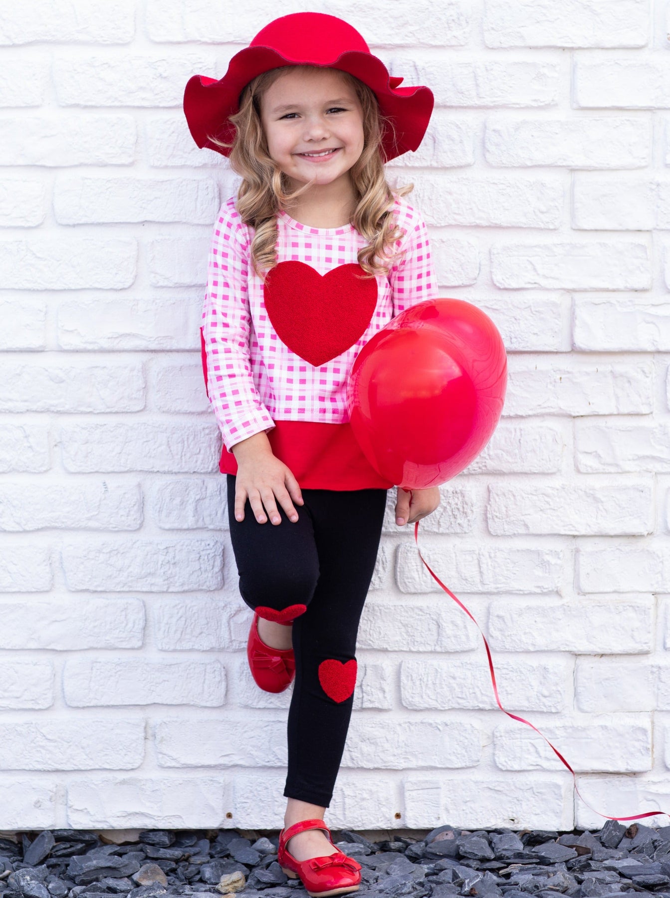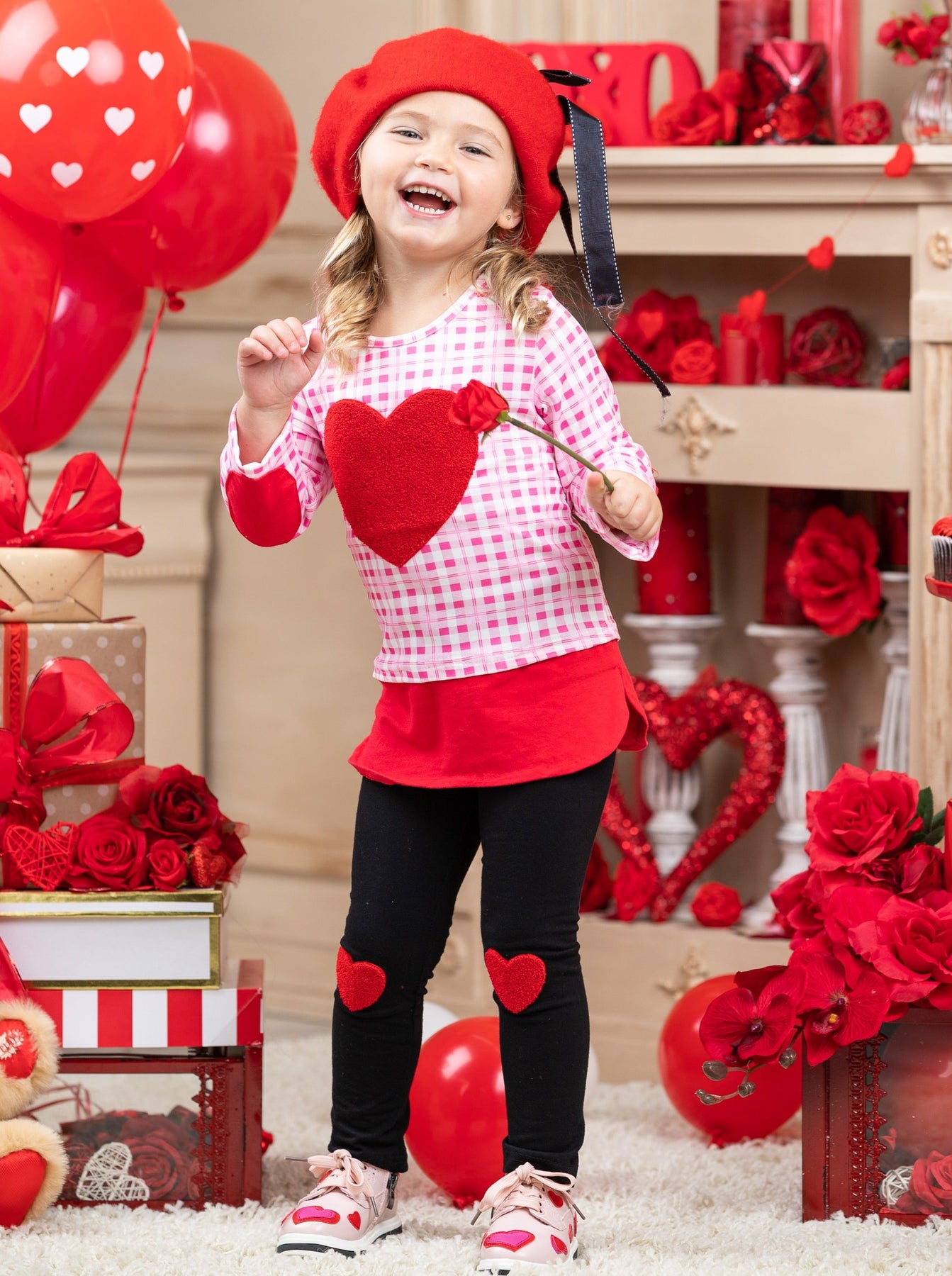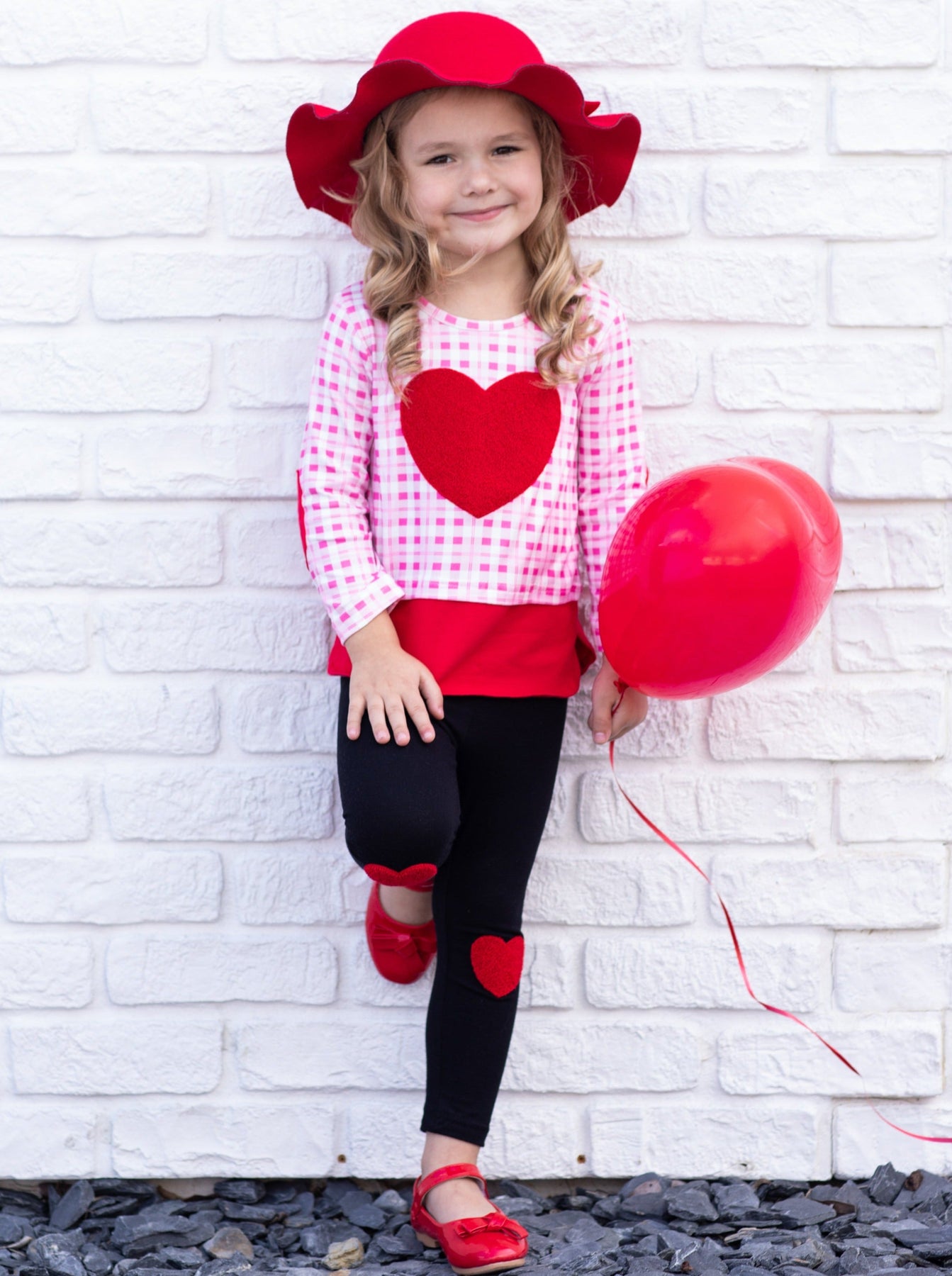 - This lovable legging set has a dazzling, princess feel. Fuzzy heart applique on the checkered plaid top's chest and elbows ties the outfit together with heart knee-patch leggings and makes the whole set fun and stylish for the perfect Valentine's Day glam!