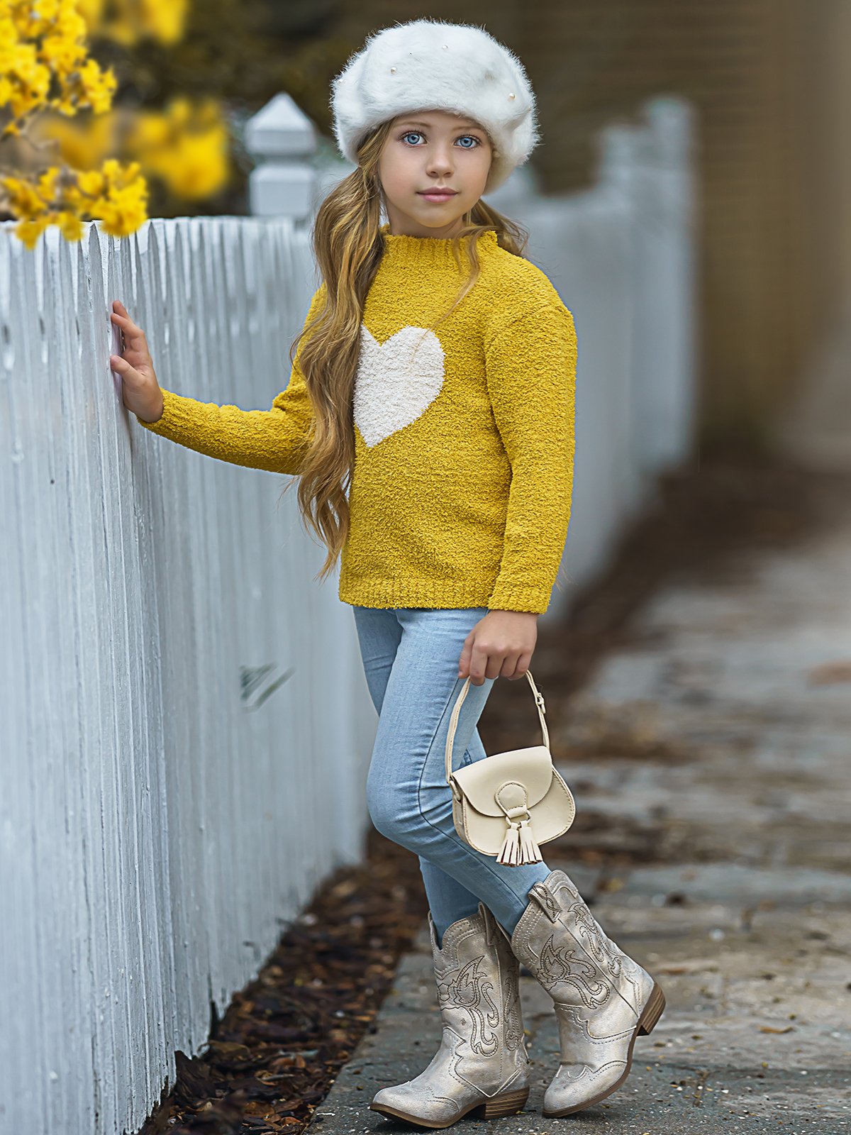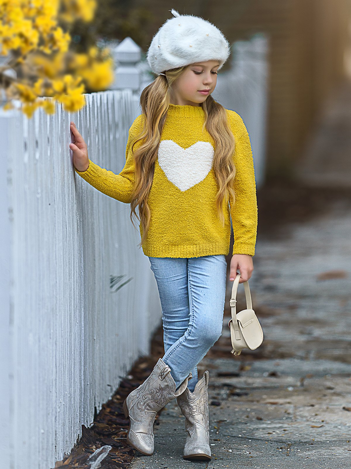 Keep Her Heart Close Yellow Fuzzy Sweater