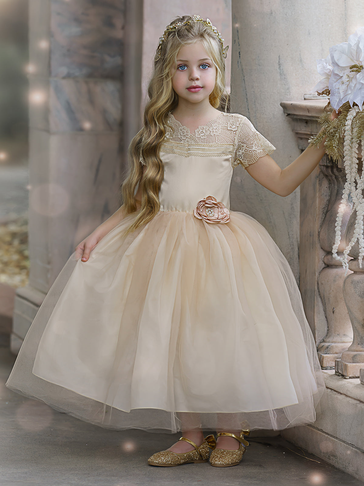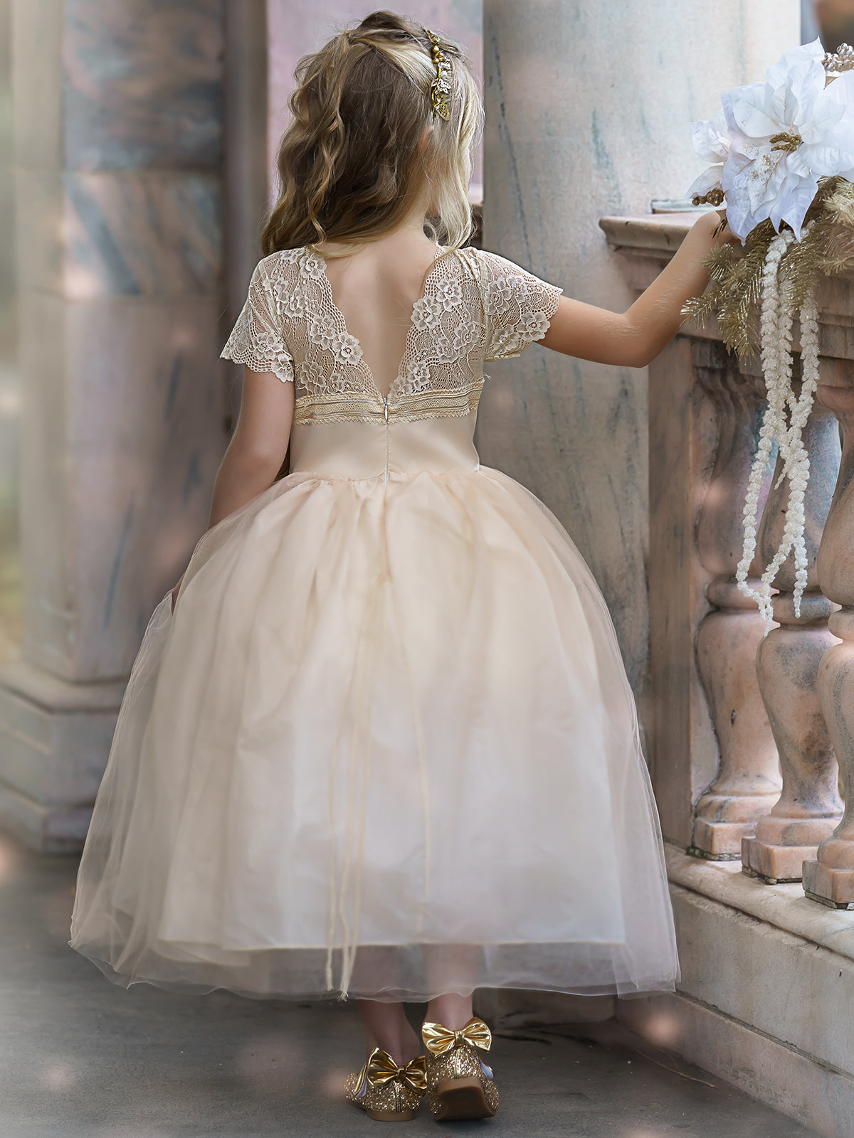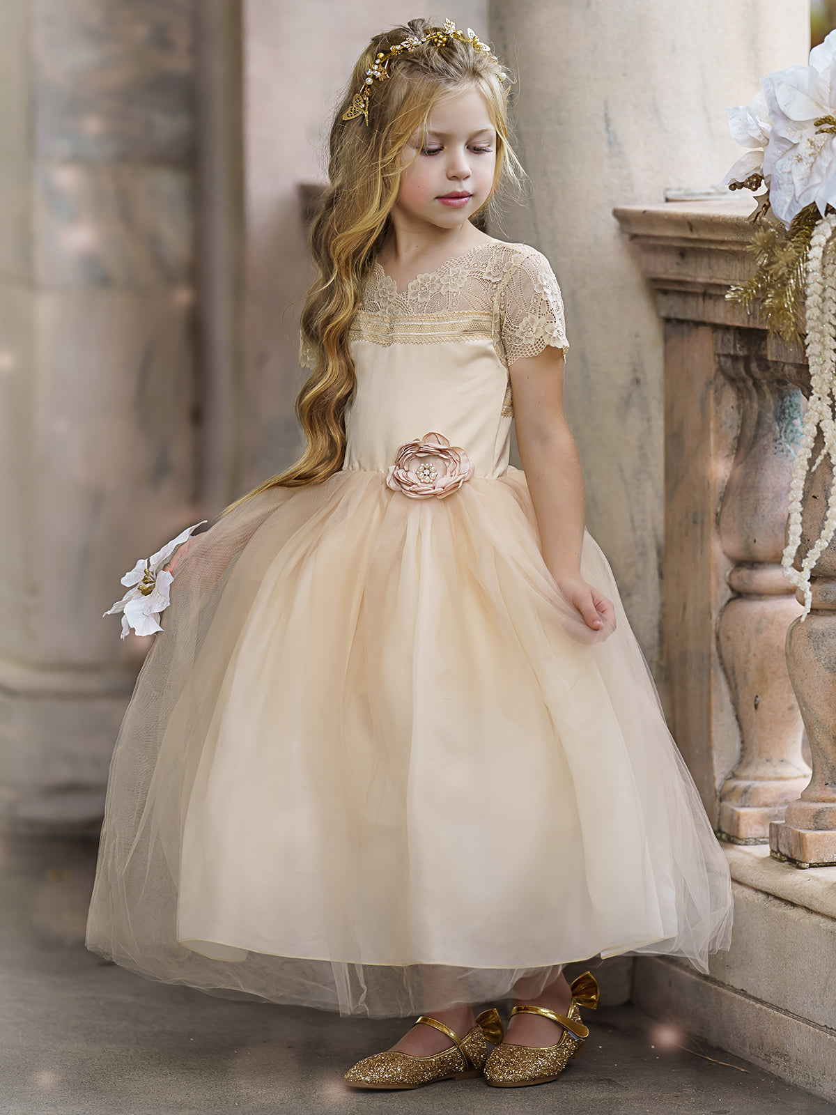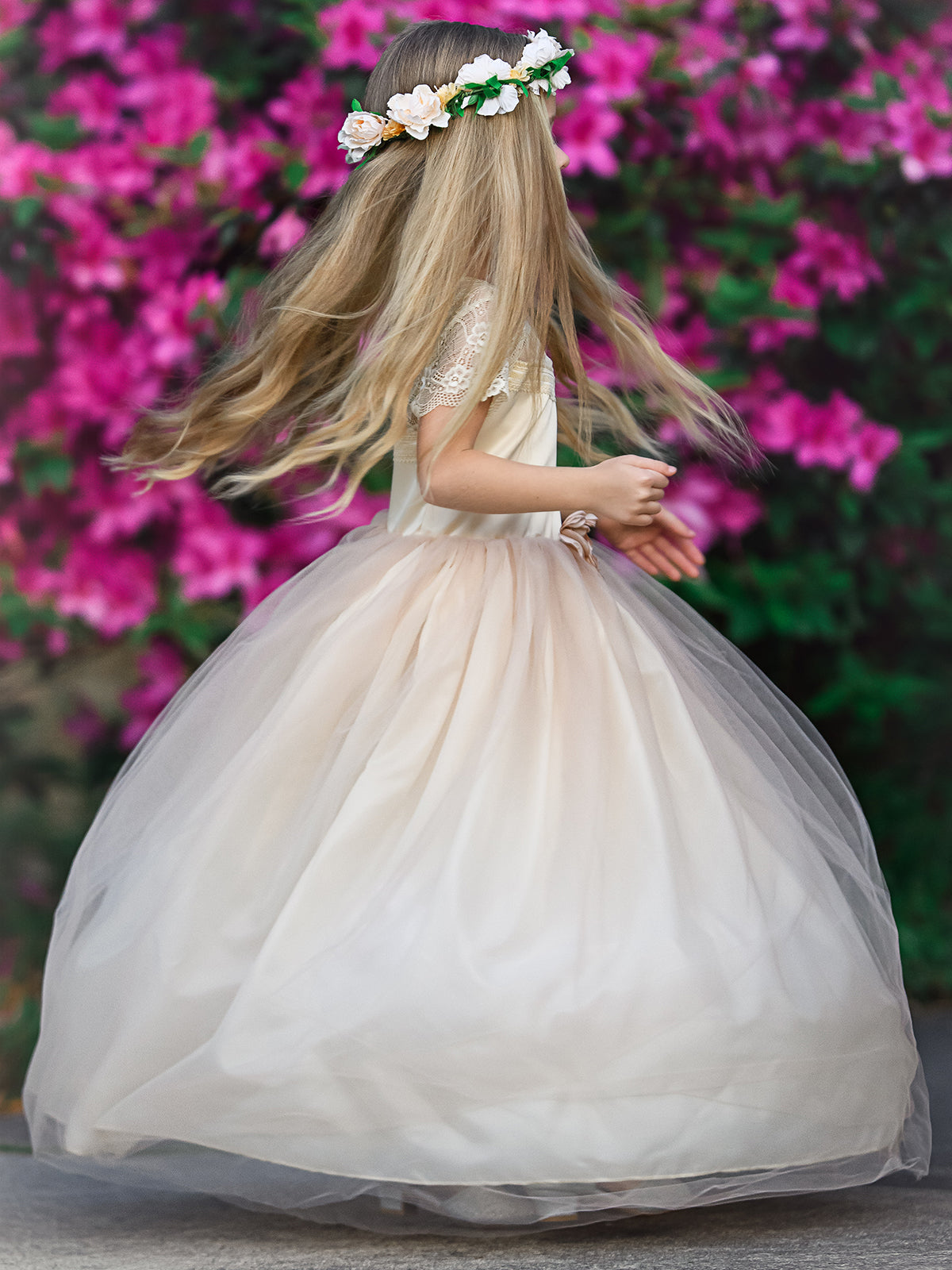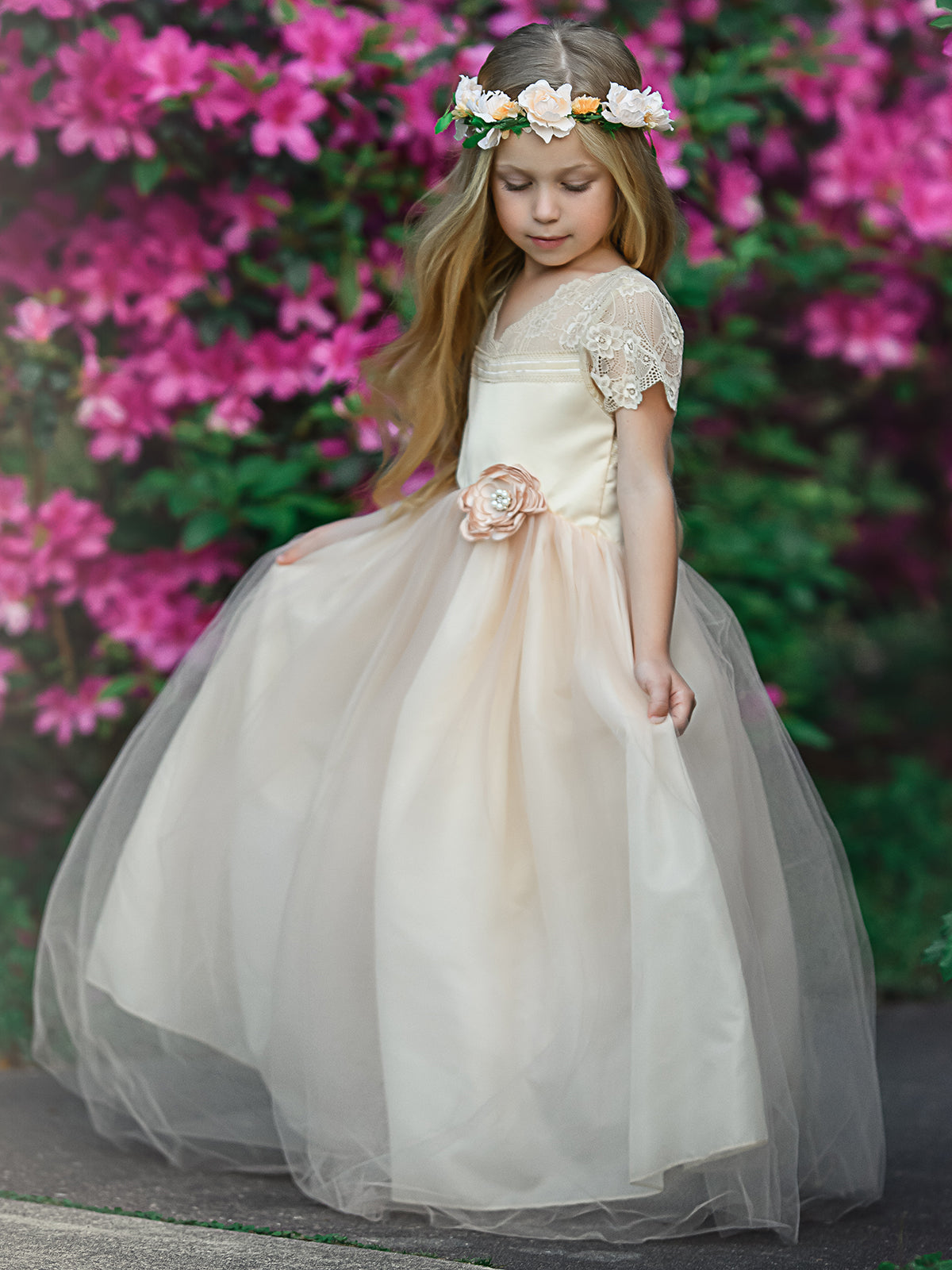 She is going to feel like a true princess in this extravagant tulle and lace maxi dress. Adorned with a delicate flower clip, this dress makes the perfect addition to her holiday wardrobe!