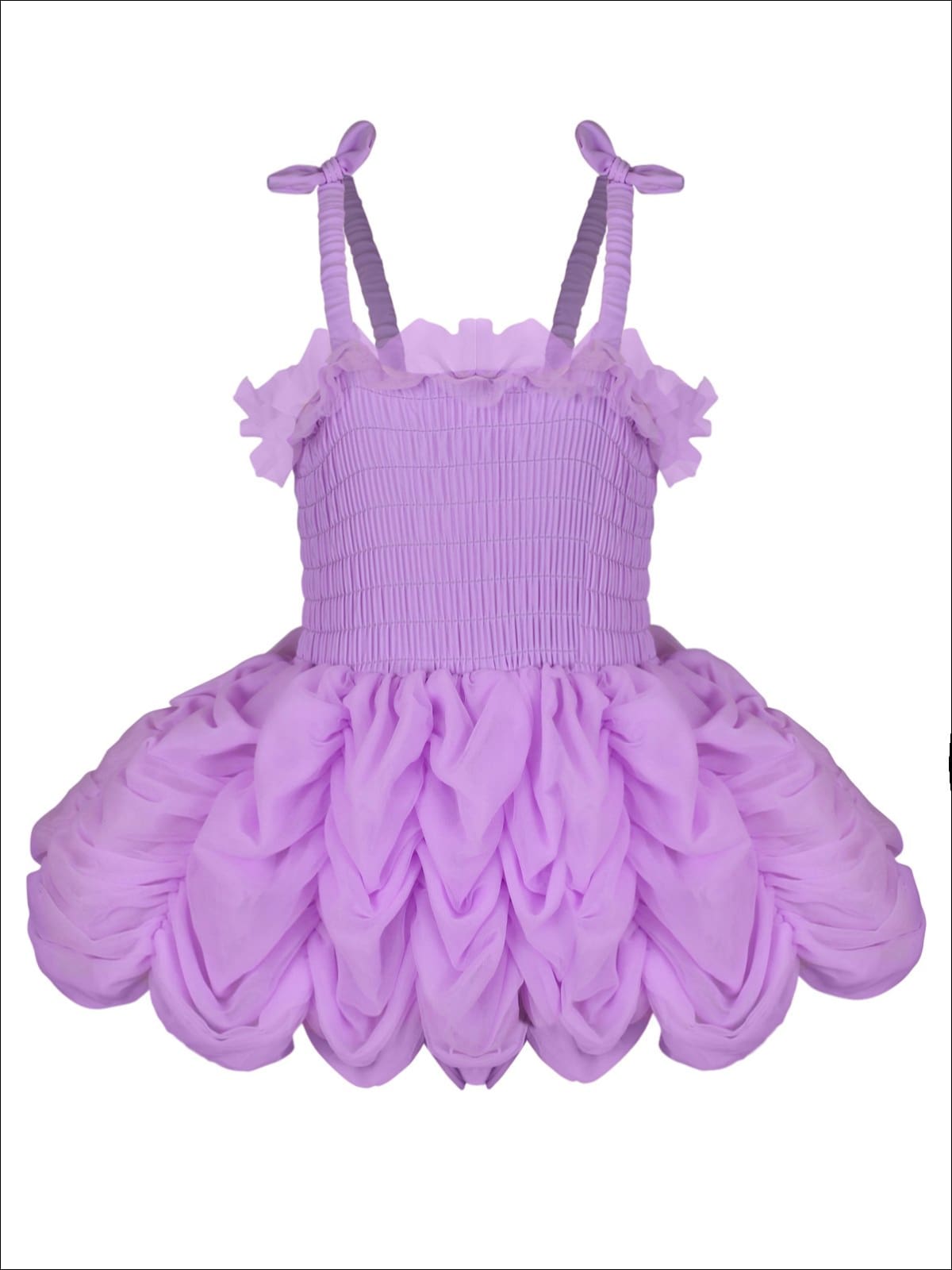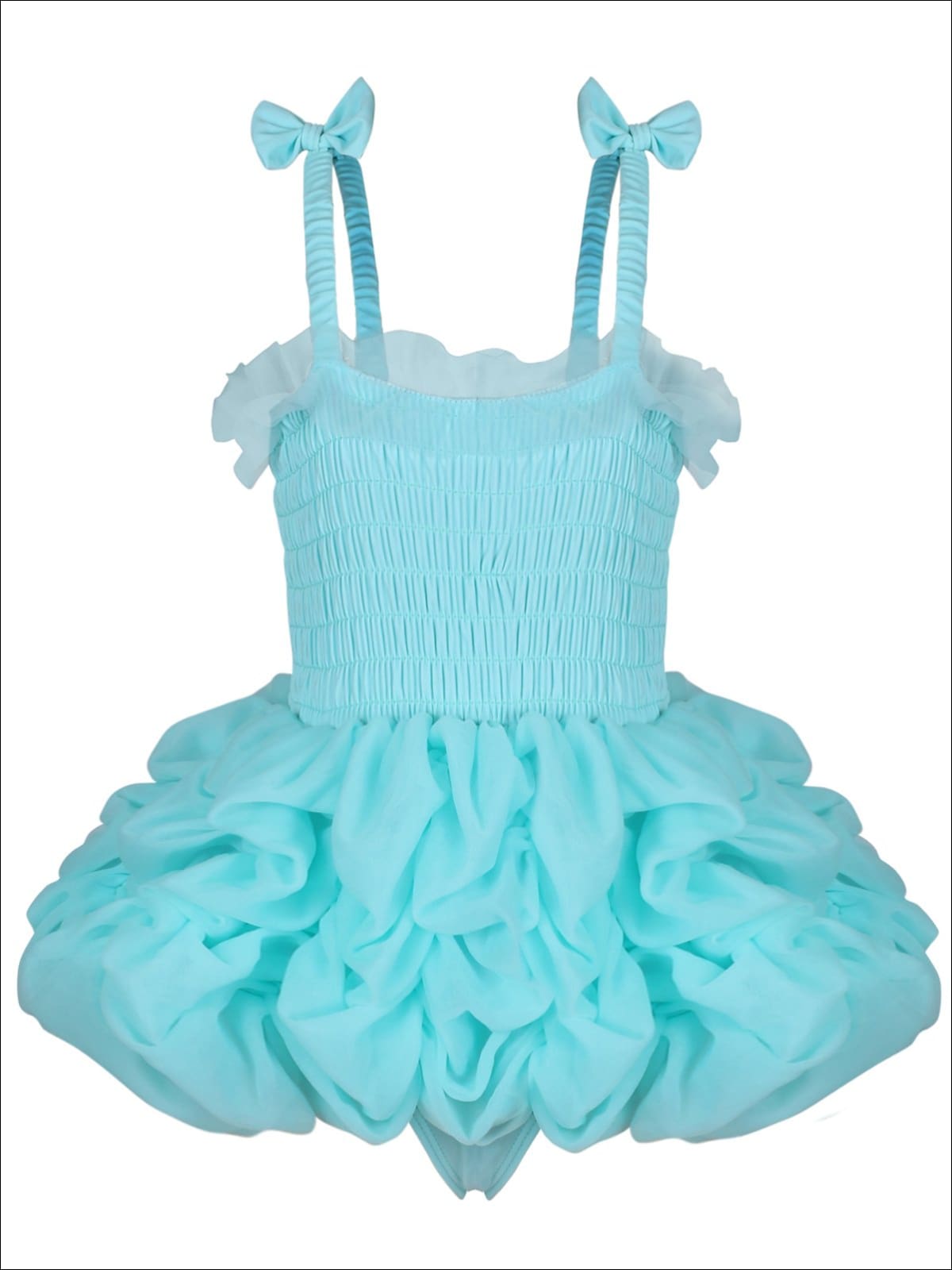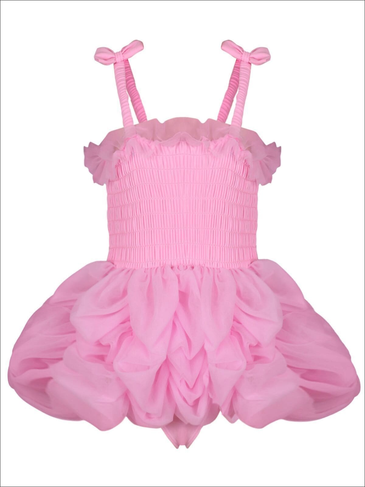 Girls Mesh Skirted Ruffled One Piece Swimsuit with Bow Straps