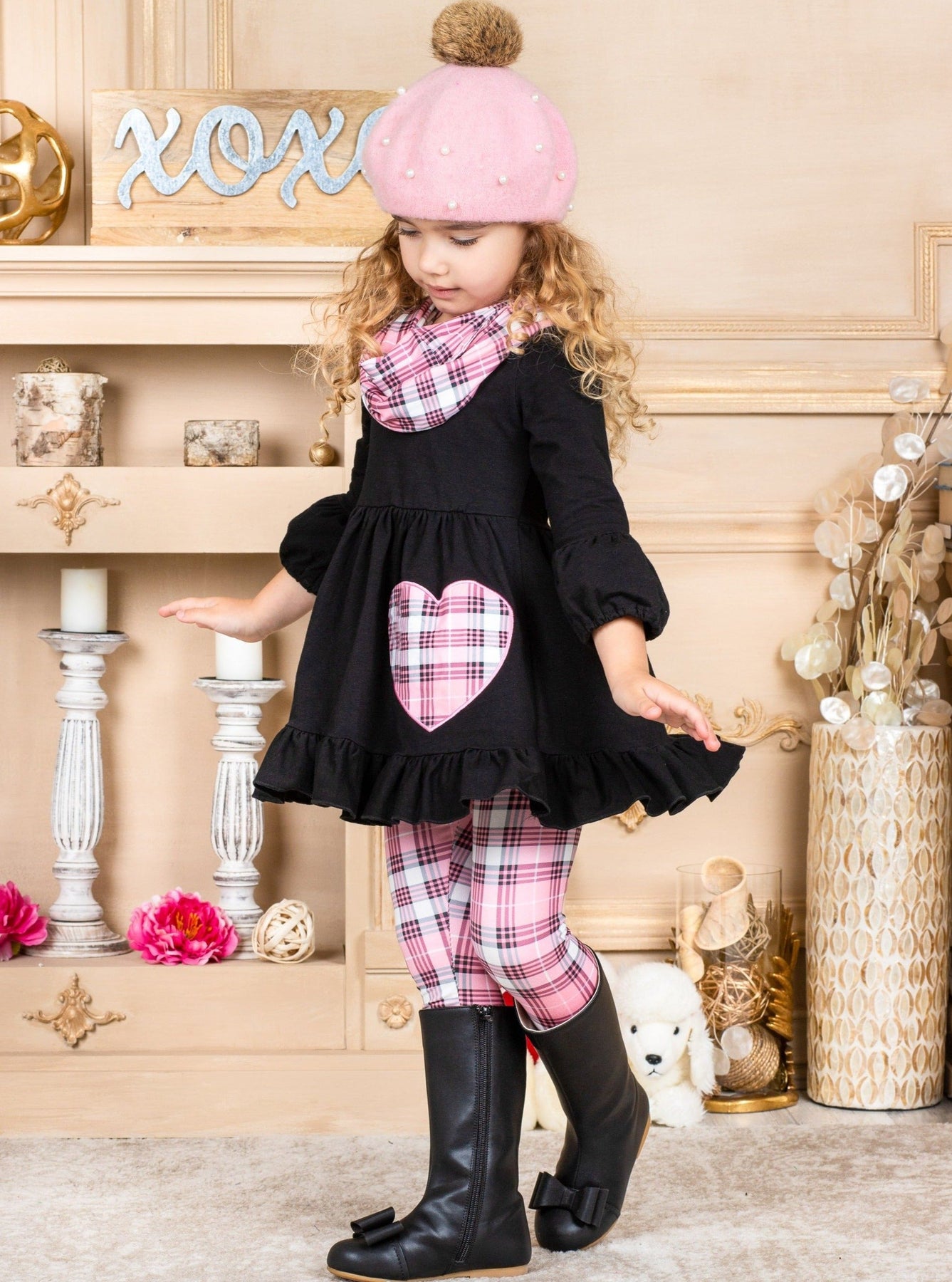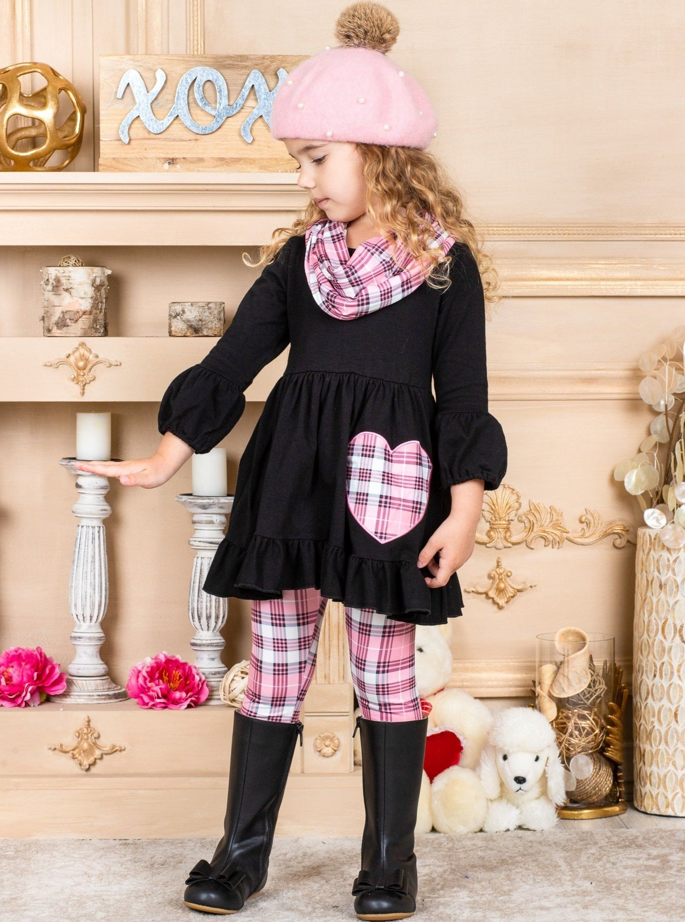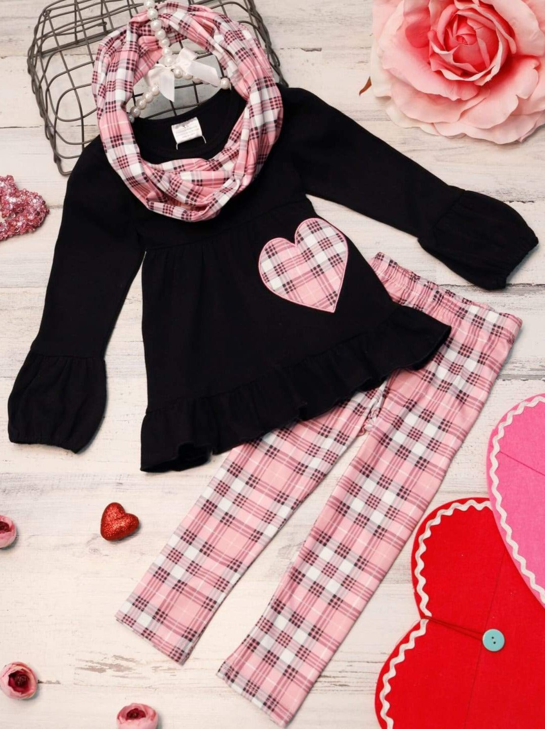 - Wrap your little bundle of joy in this plaid-perfect set to complete her Valentine's Day. Mix and match this 3-piece set with her cutest hat, shoes, and accessories and watch these charming pieces become her new obsession!
