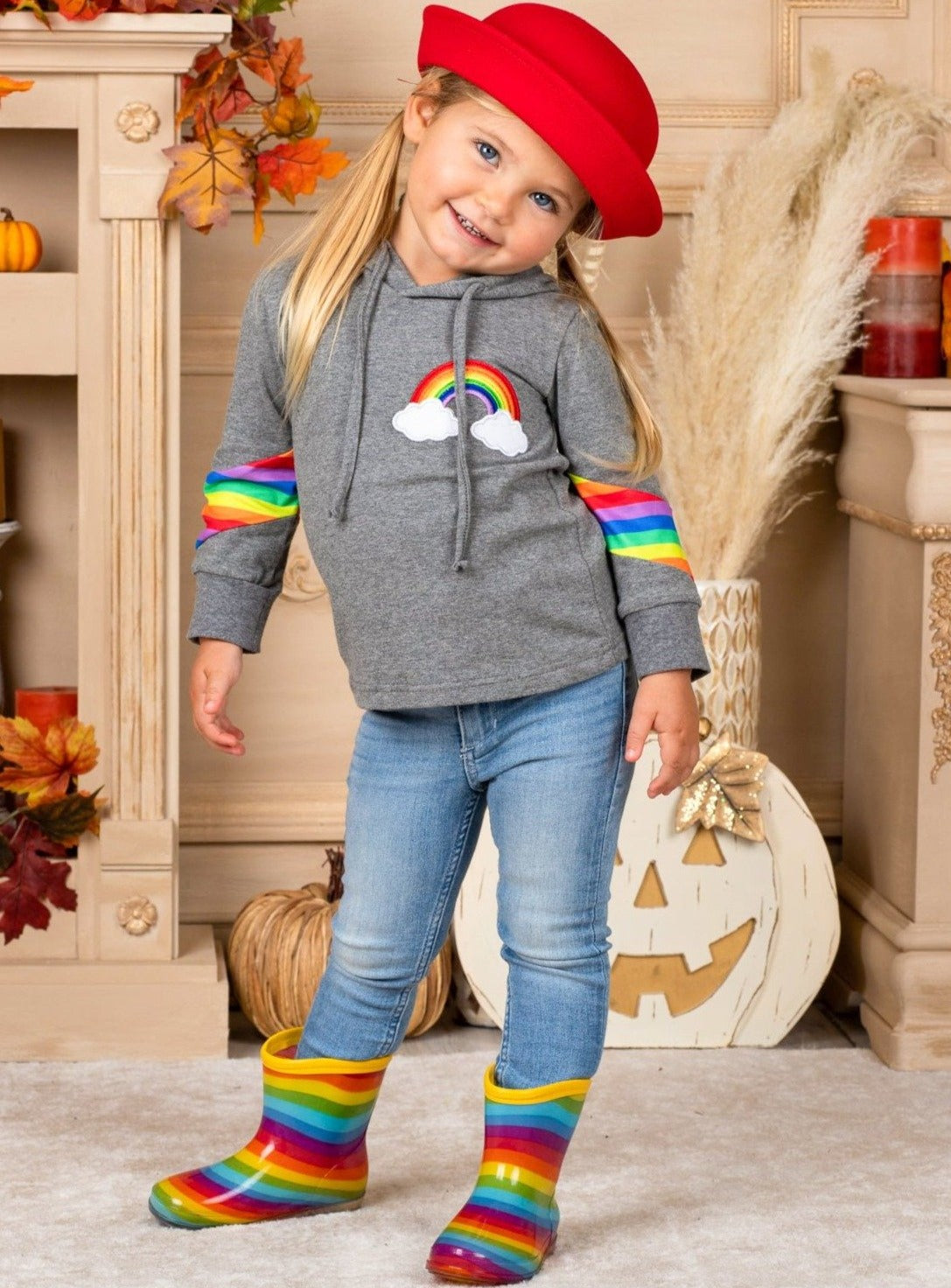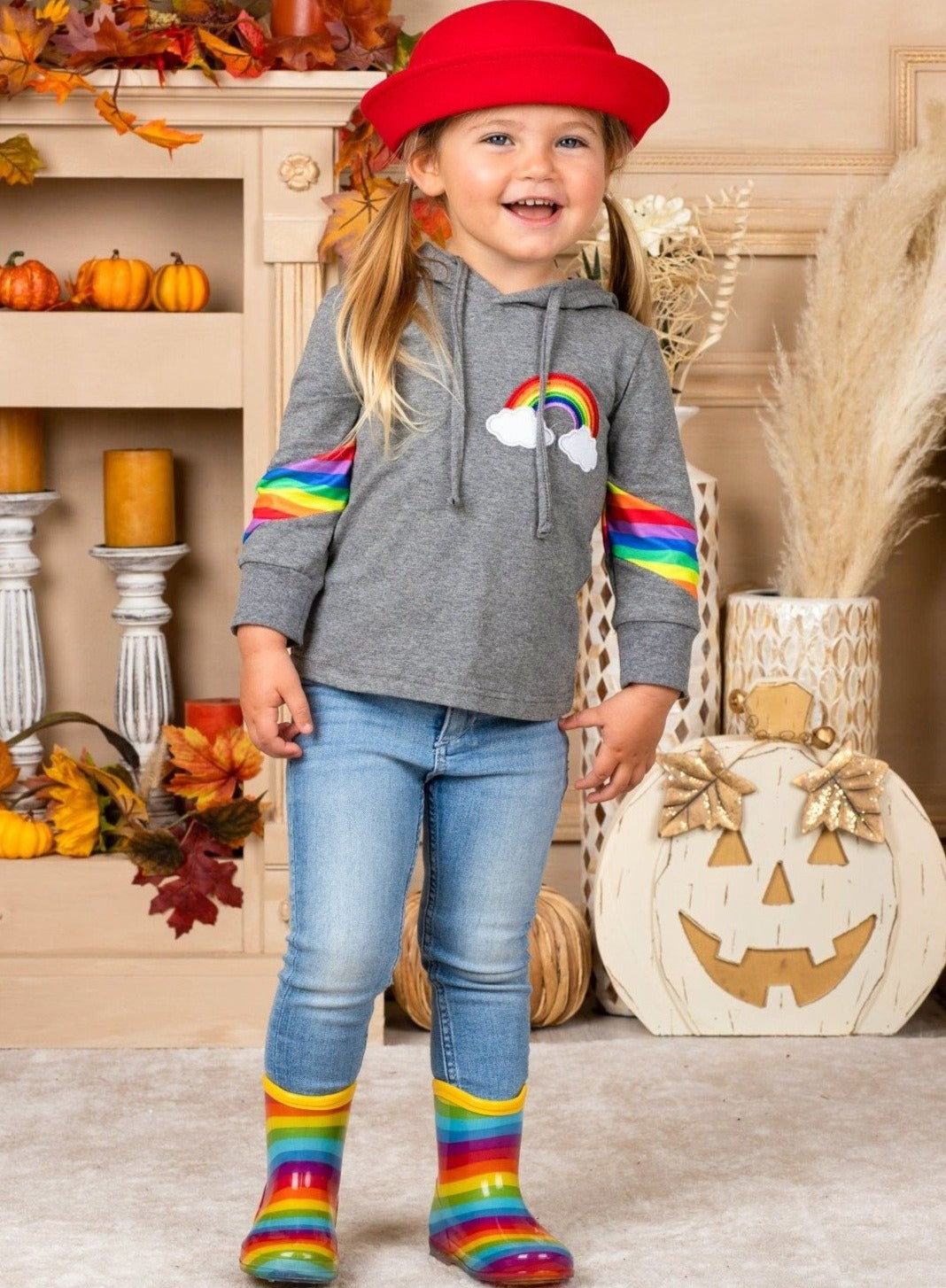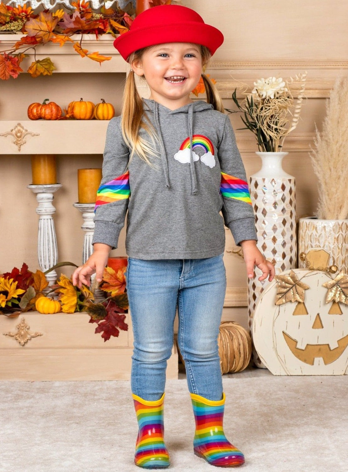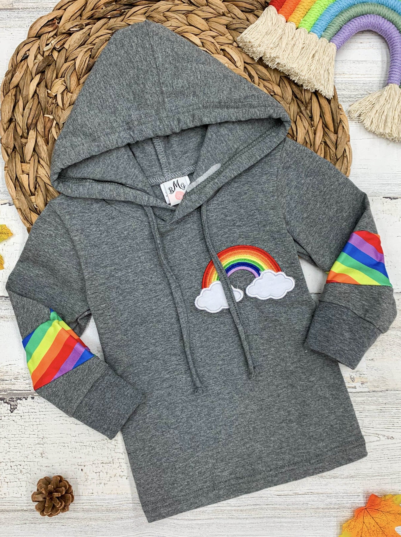 Show off your true colors in this cozy hooded pullover top with vibrant rainbow accents. Who doesn't love a rainbow to brighten their day? A must-have for magical girls, no matter the season!
