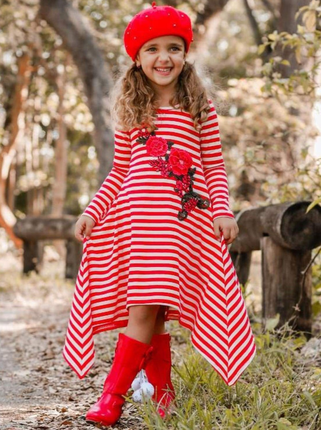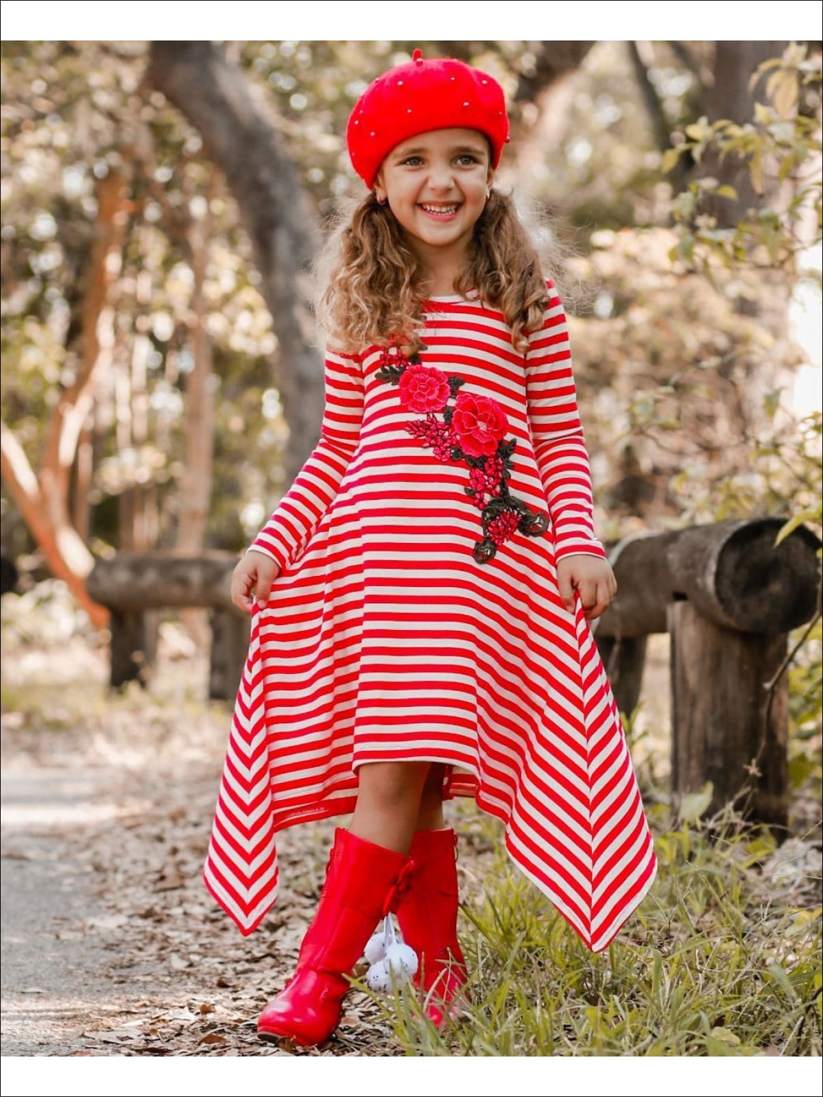 Sweet as a candy cane & soft as cotton, this side tail dress will make your little one glow with cheer all season long!