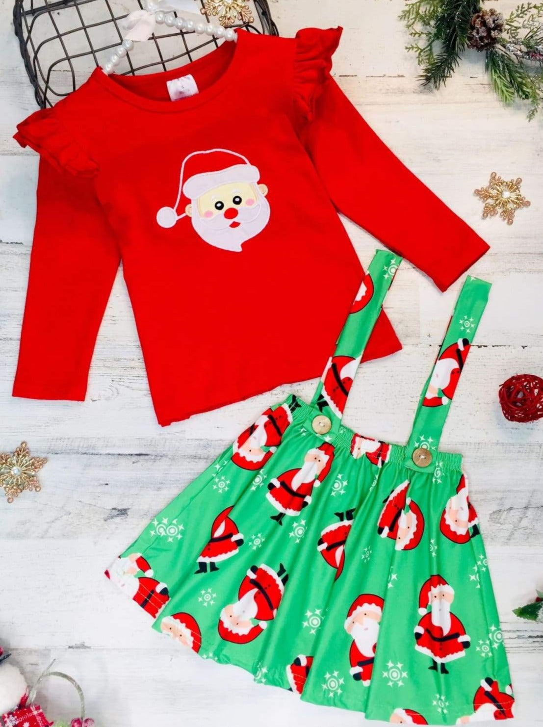 Hearken to the merry bells of the season and give her a ruffle-trimmed top layered under a frock of cheerful prints to dress up her holidays. A Santa or snowman applique steal the show and match the overall dress to create a festive ensemble!
