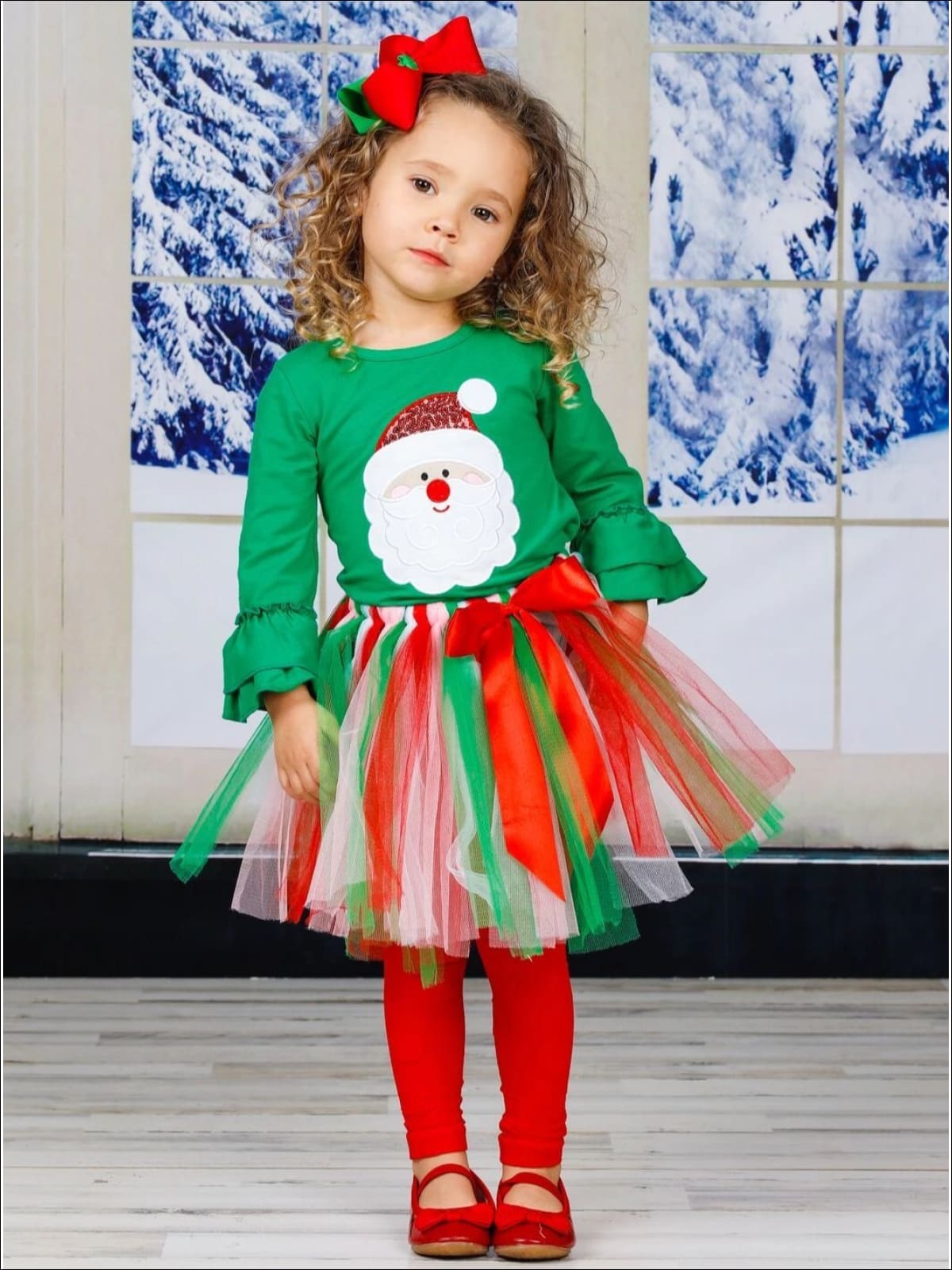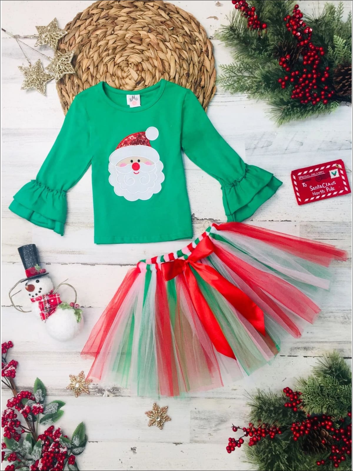 Girls Santa Ruffled Top & Tutu Bow Skirt Set