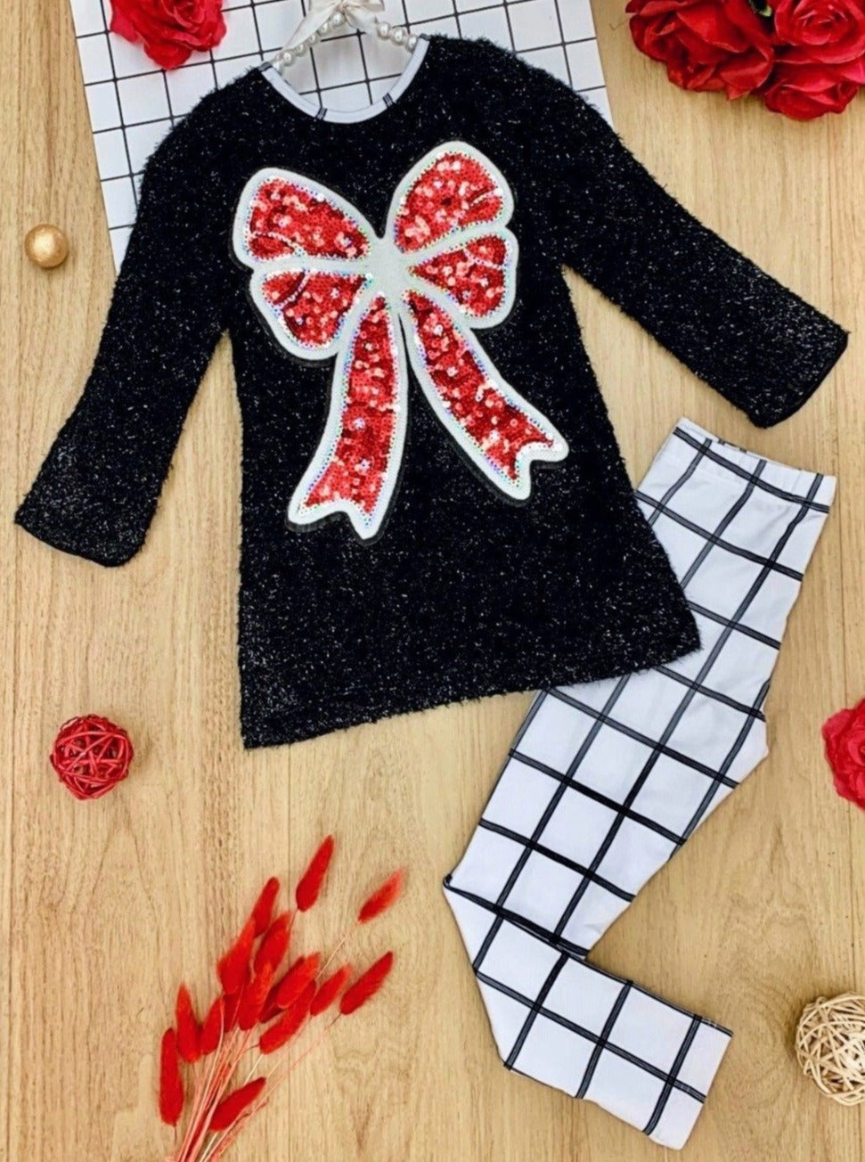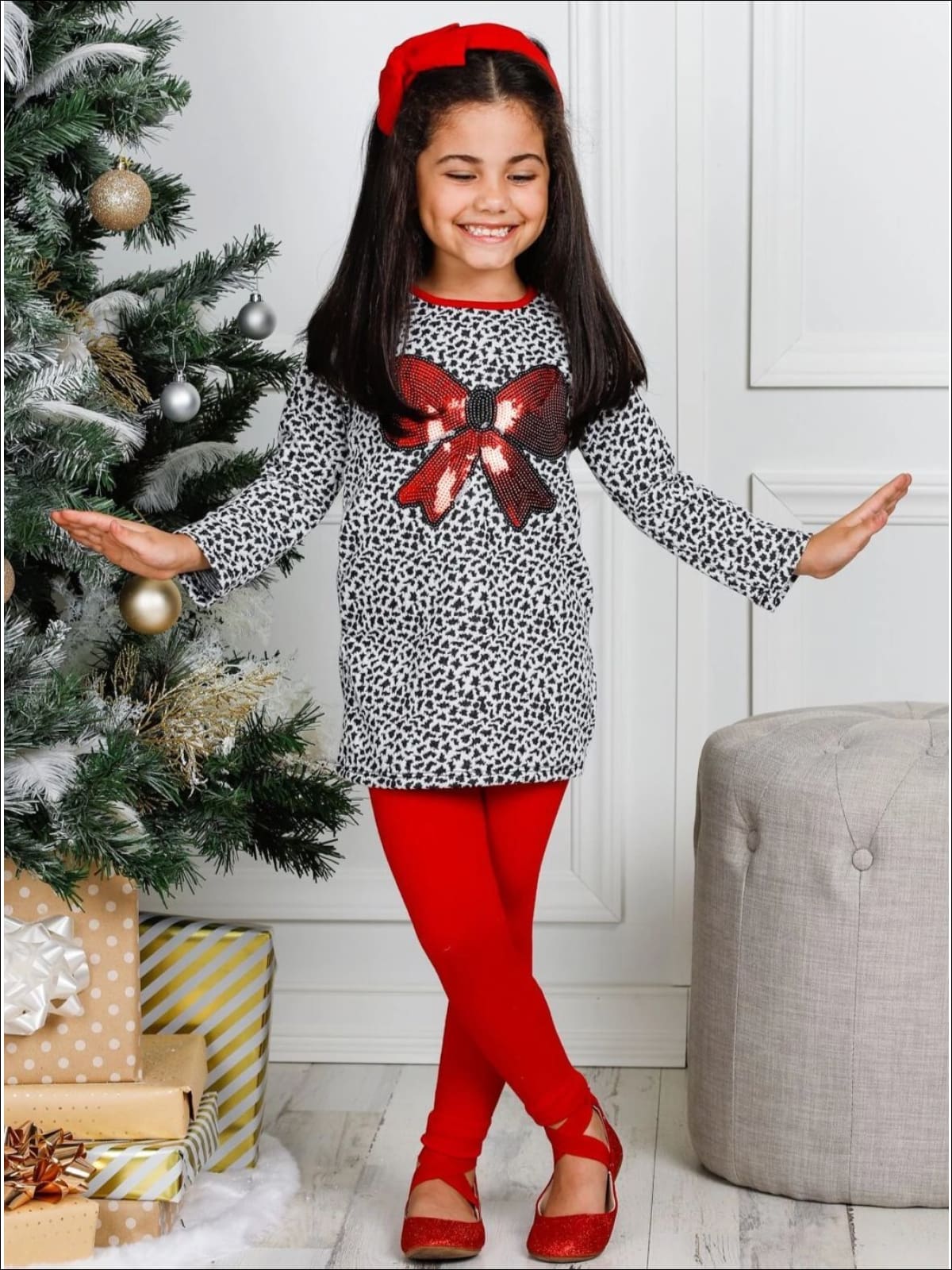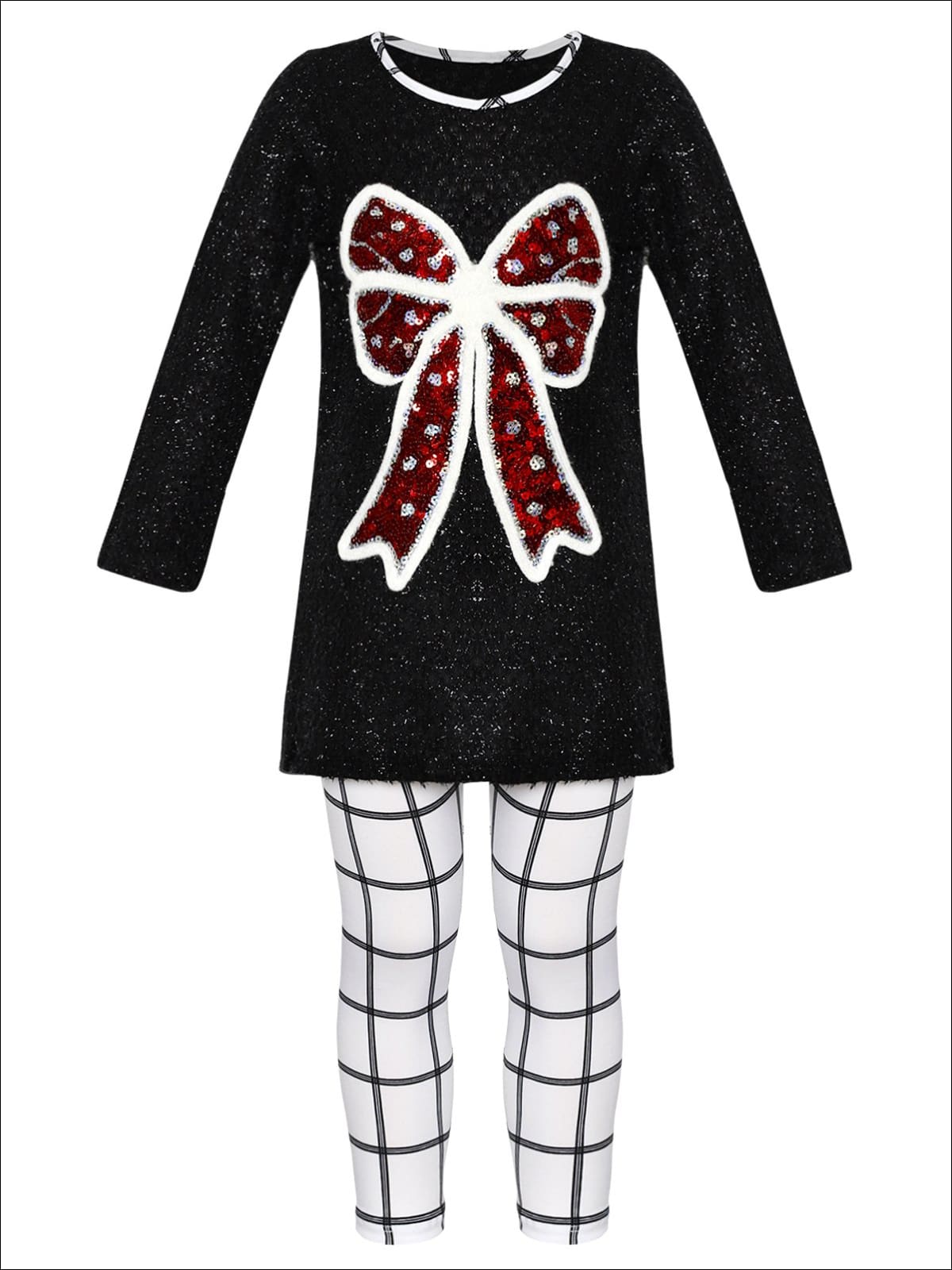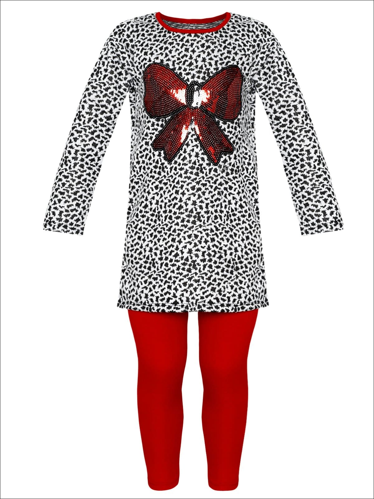Girls Long Sleeve Sequin Bow Applique Tunic & Legging Set