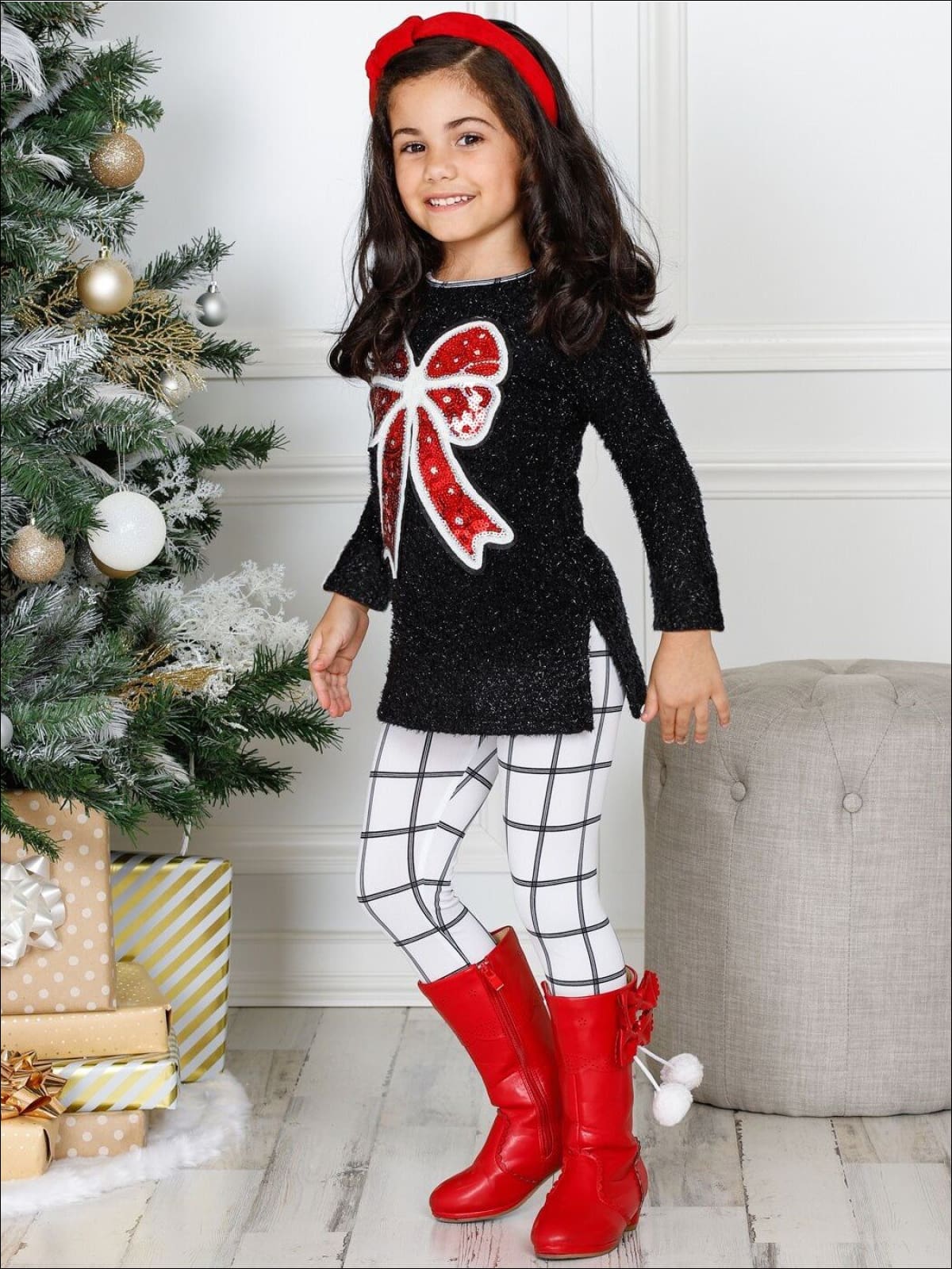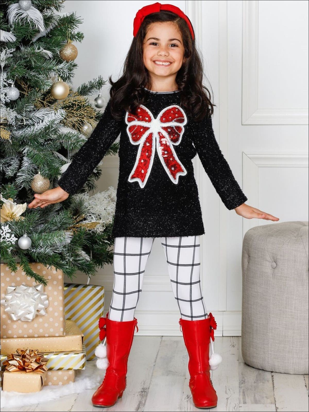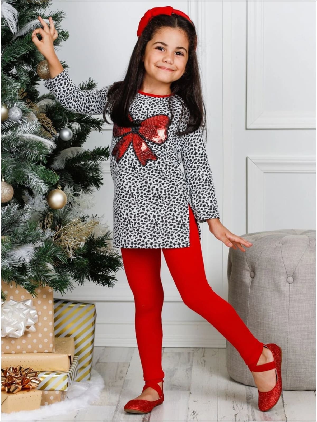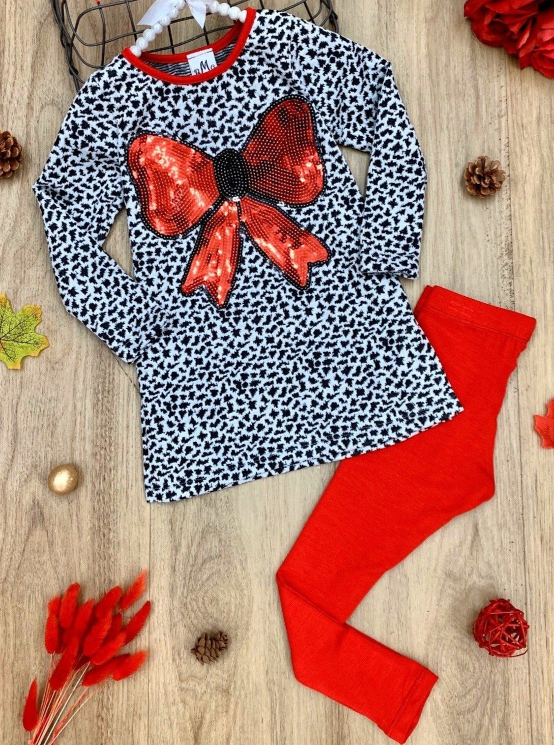 Girls Long Sleeve Sequin Bow Applique Tunic & Leggings Set - Girls Fall Casual Set