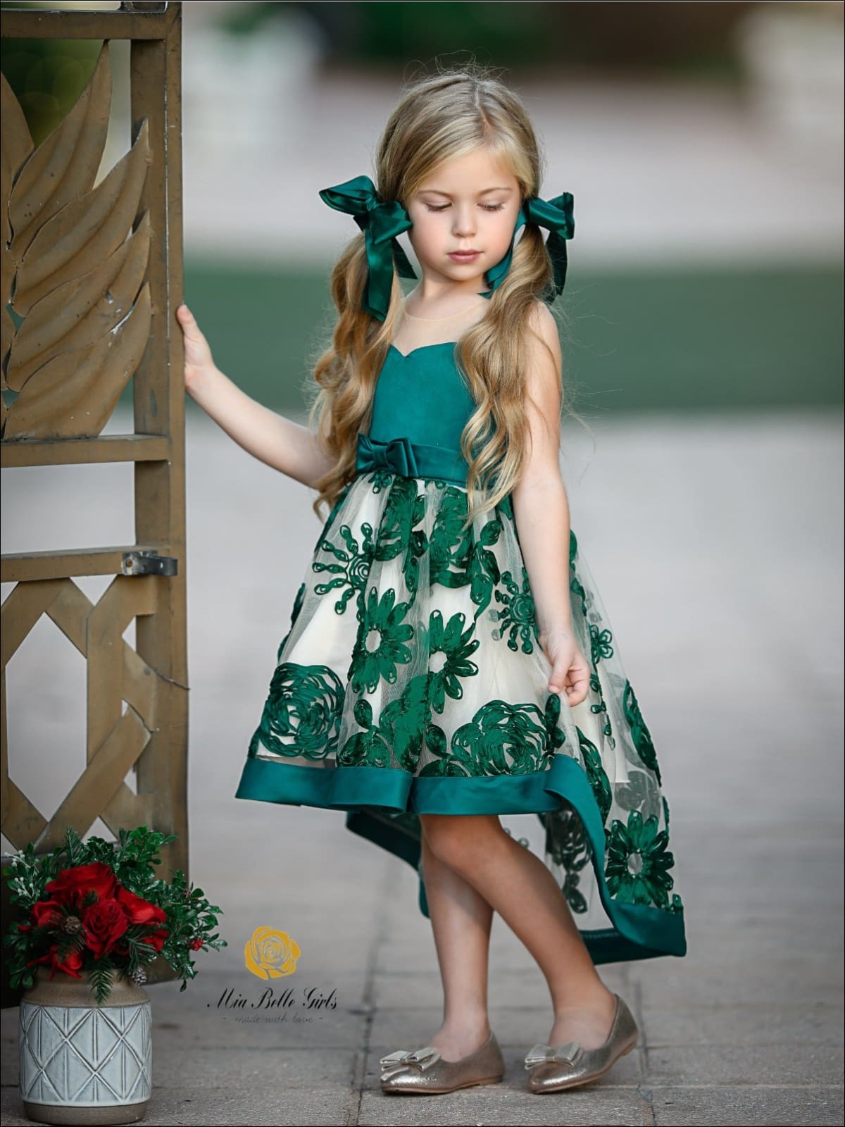 Time to break out the festive formal wear for the holiday season! And what better elegant dress to melt hearts in than this hi-lo chiffon gown embellished with intricately embroidered flowers?