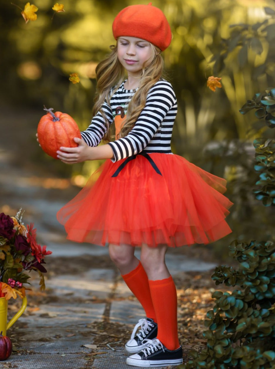 Girls Halloween Dress | Striped Pumpkin Tutu Dress - Mia Belle Girls