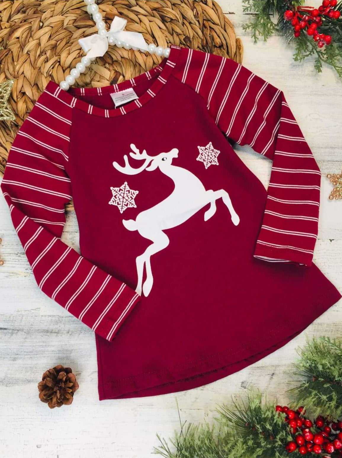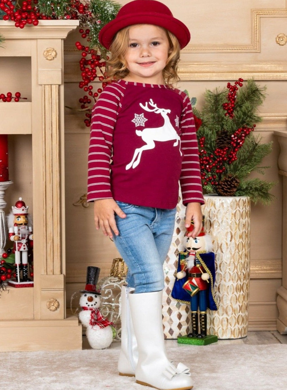 Your little one will SLEIGH this cute holiday raglan top. With a sweet prancing reindeer print, it'll look great in all her winter photos.