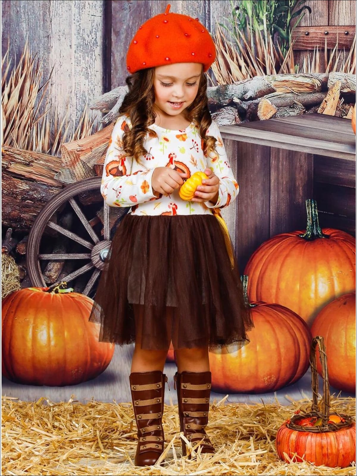 This precious, turkey print dress will definitely get her in the Thanksgiving spirit! The tutu skirt gives it a princess touch while the long sleeve top keeps her warm and cozy.