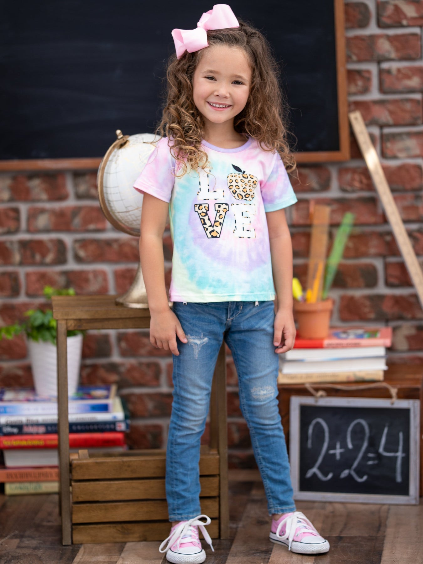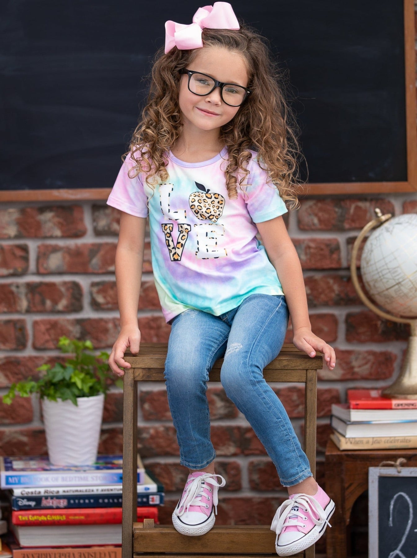 Make getting dressed for school cool again with this on-trend tie-dye top. Learning at this level of cuteness is simply a MUST! It's sure to make her best dressed for her first day back in school.