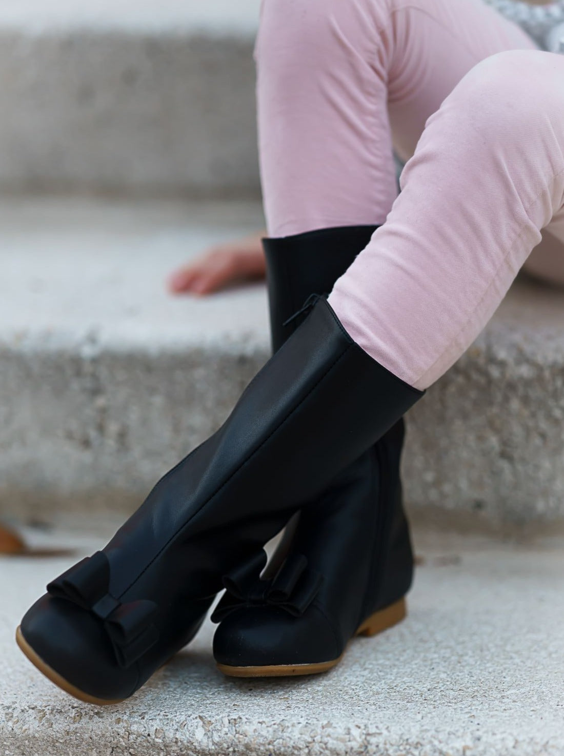 Get your little one's day started on the right foot with these super cute boots. Topped off by a layered bow, this pair of boots keeps your little one trendy, comfy and stylish.