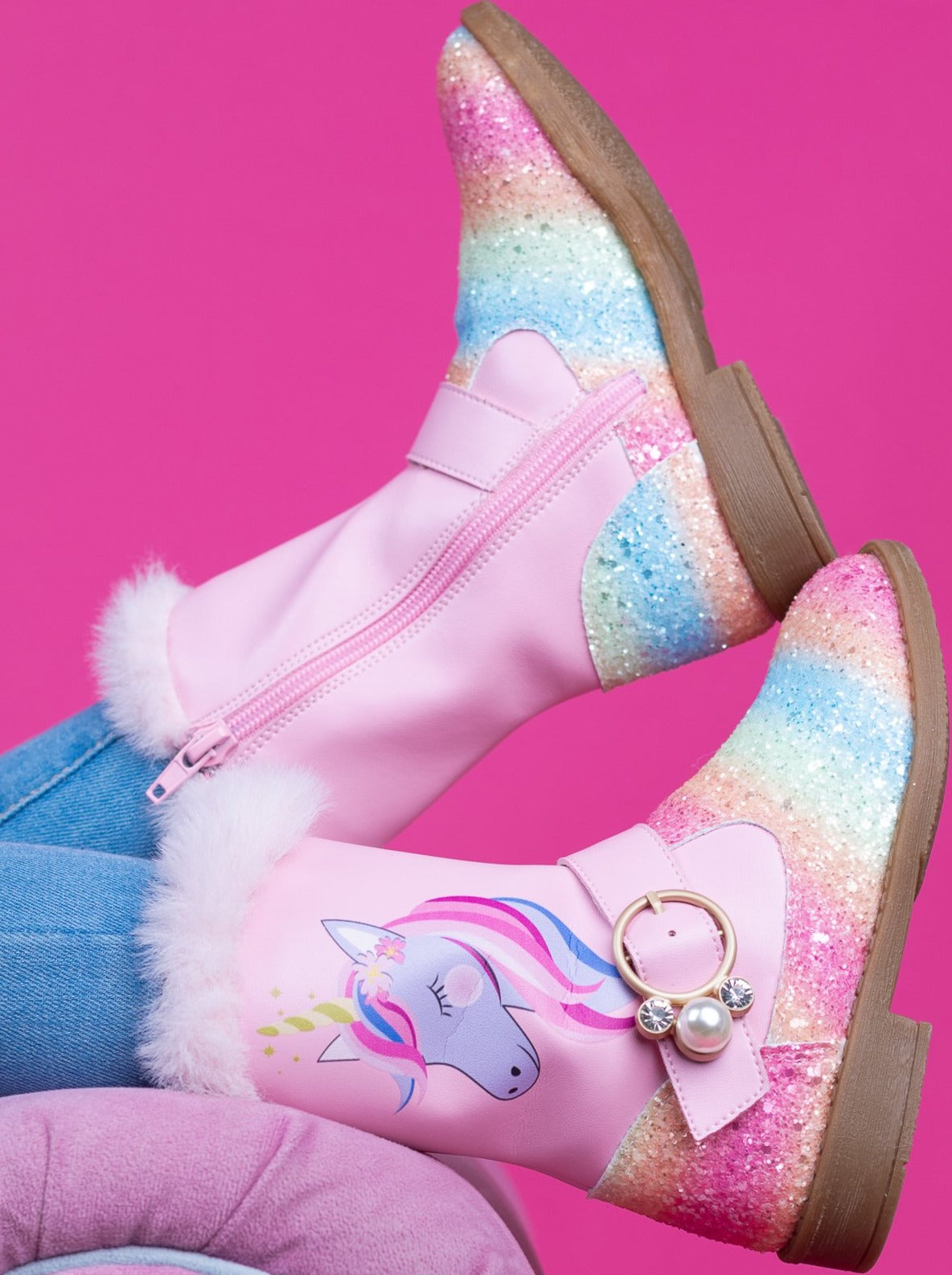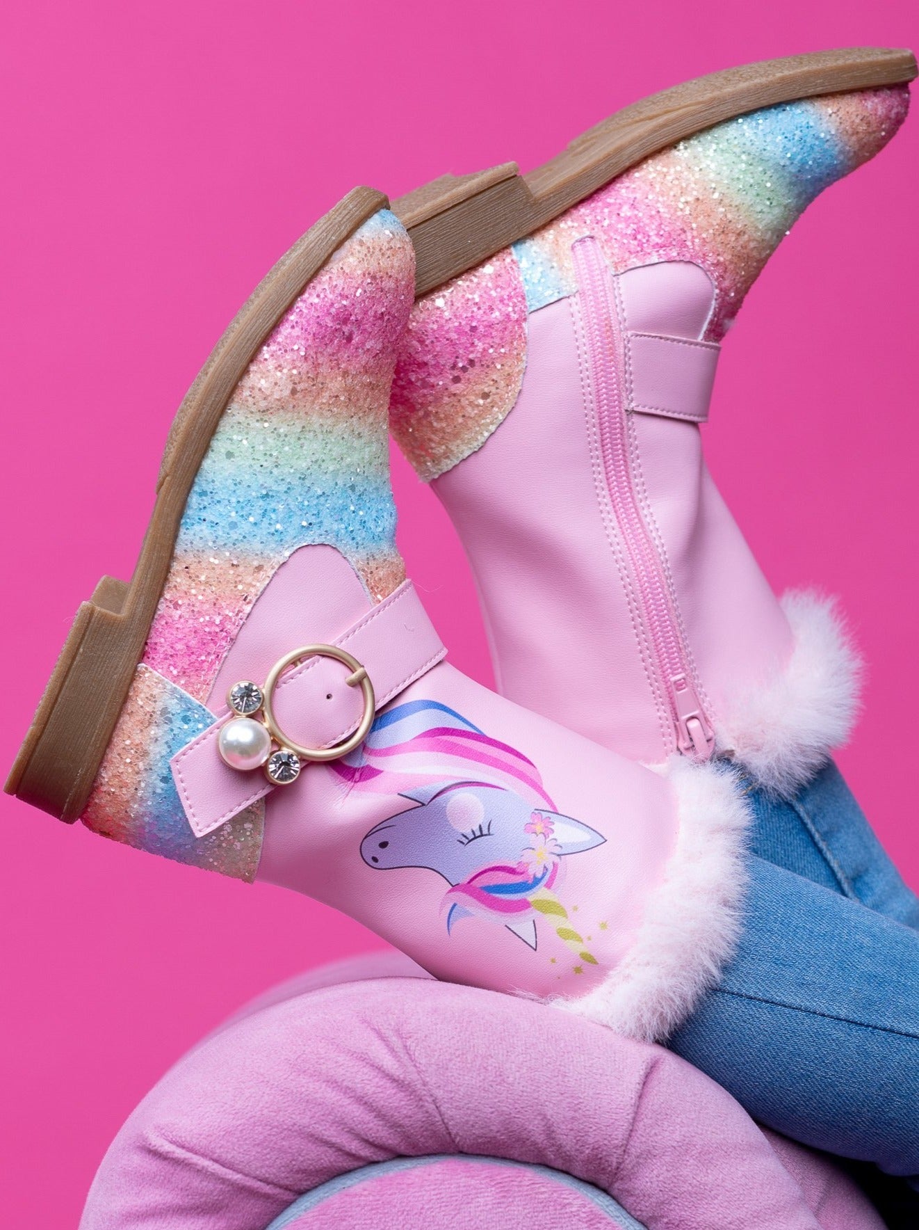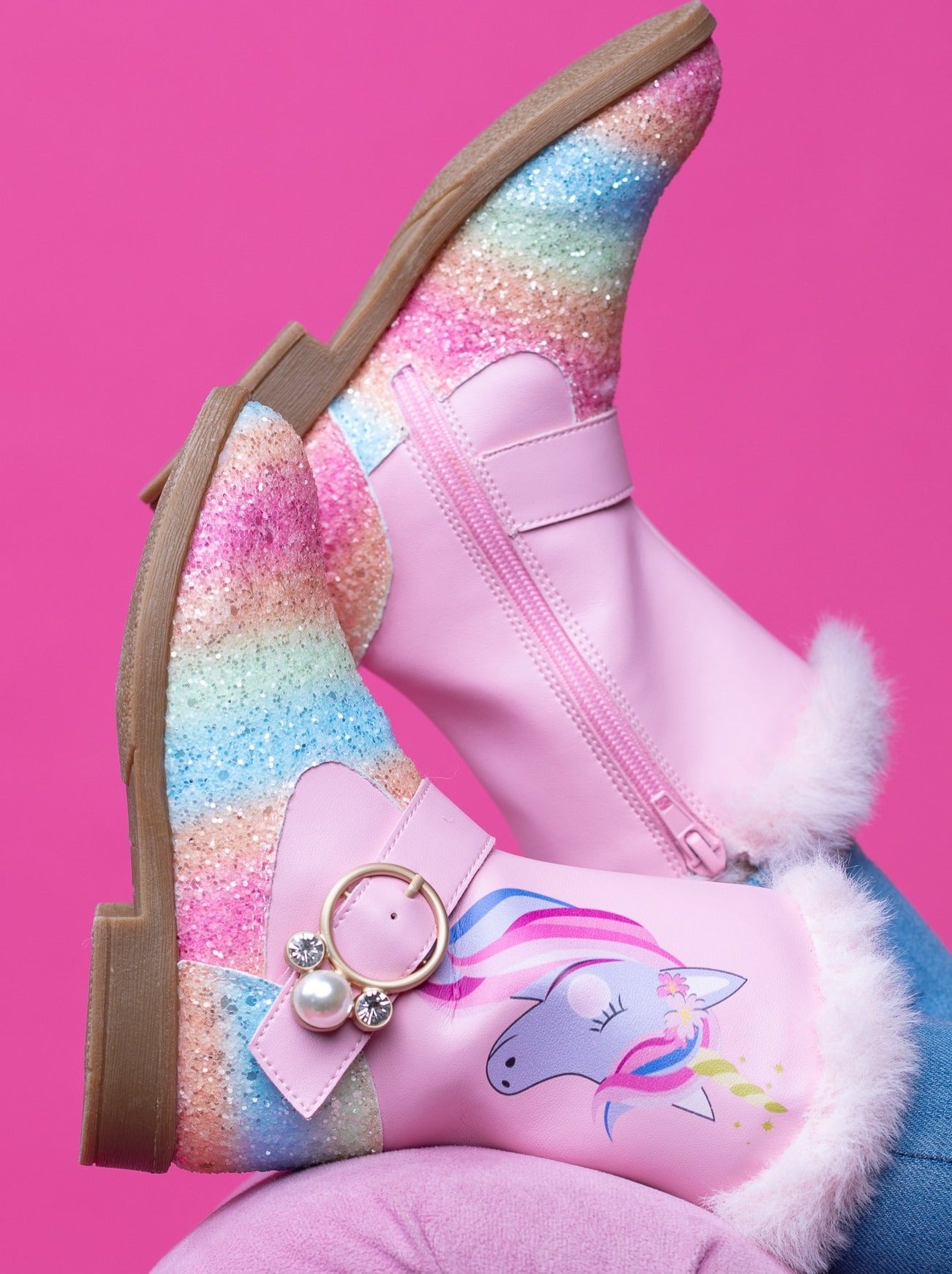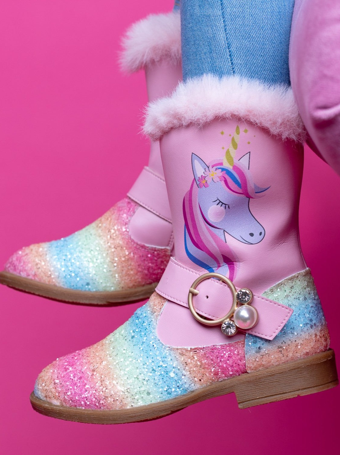 Glitter and sparkle make everything better! Grab these colorful rainbow unicorn glitter boots for your beautiful little one and they will put dazzle in every step she makes.