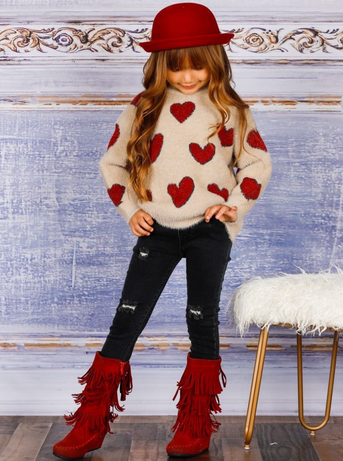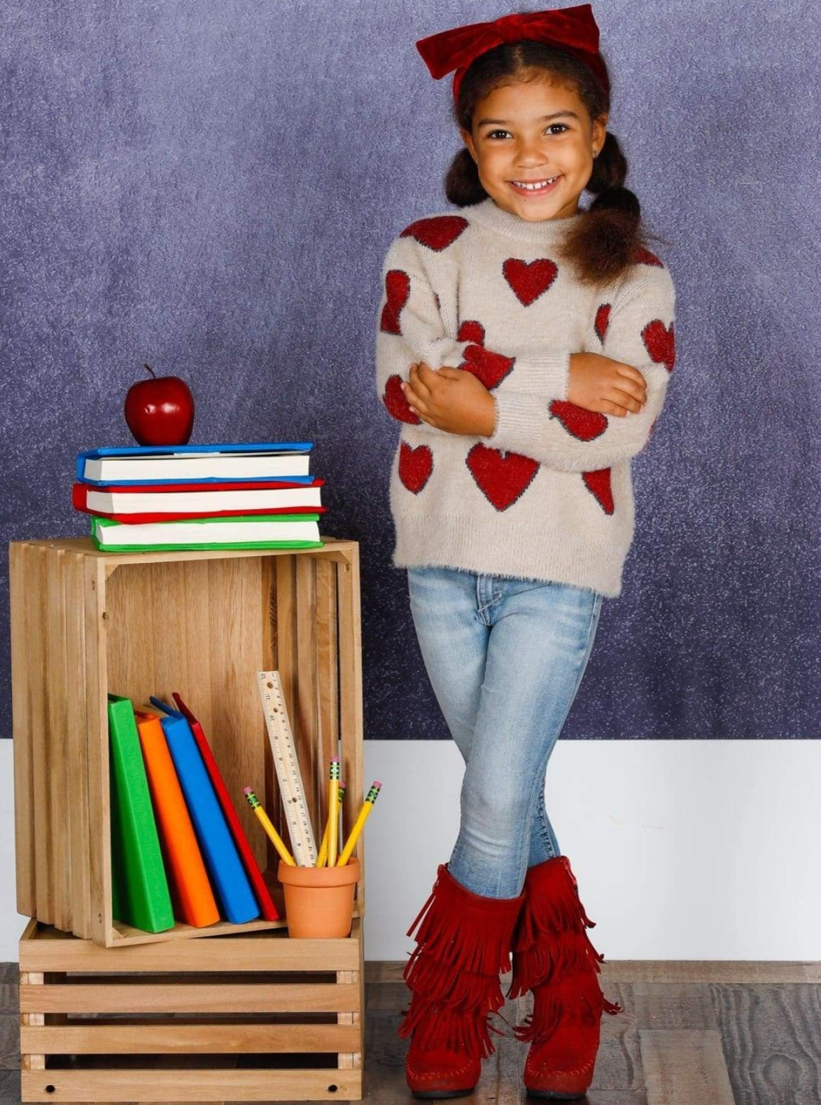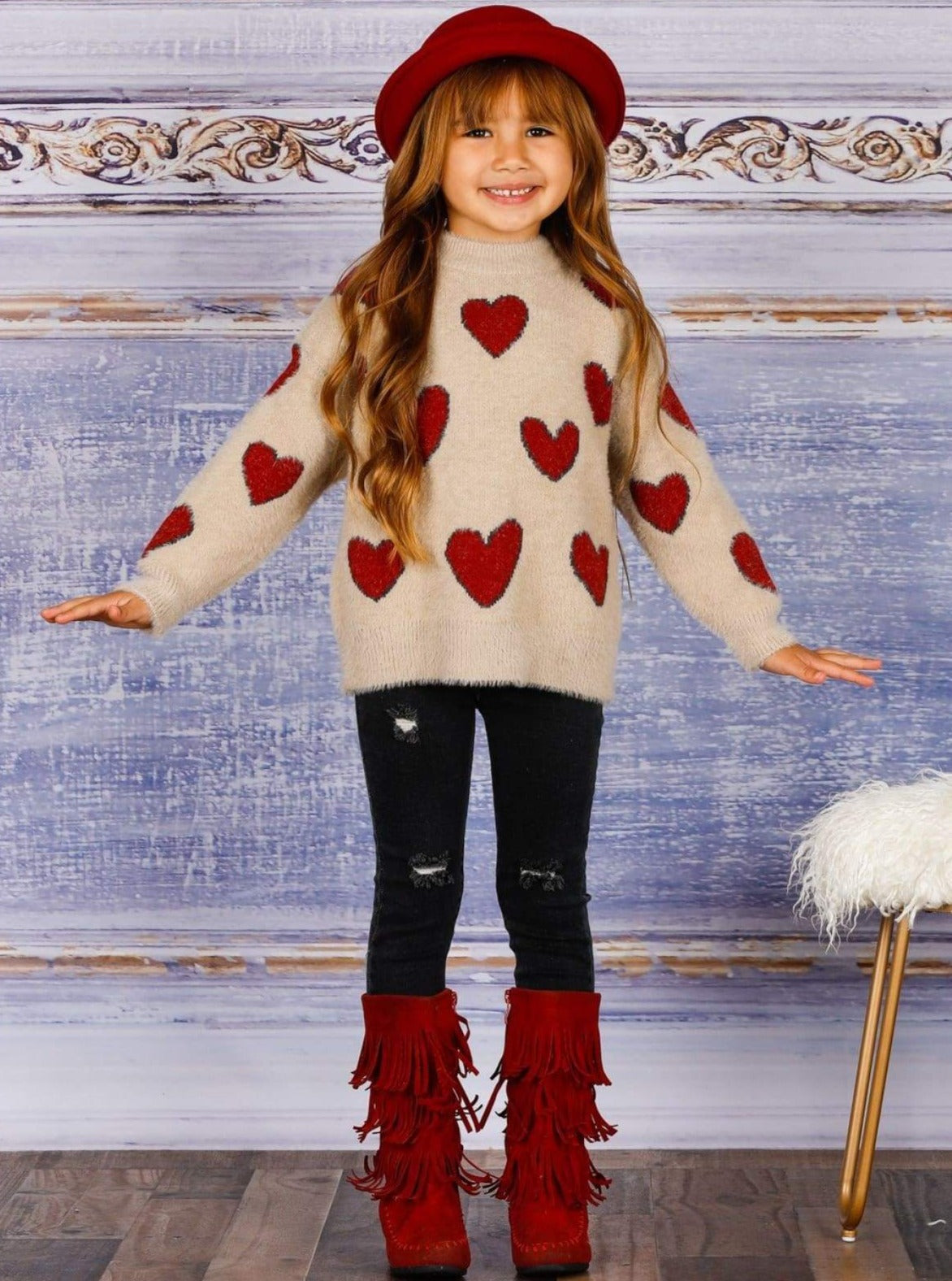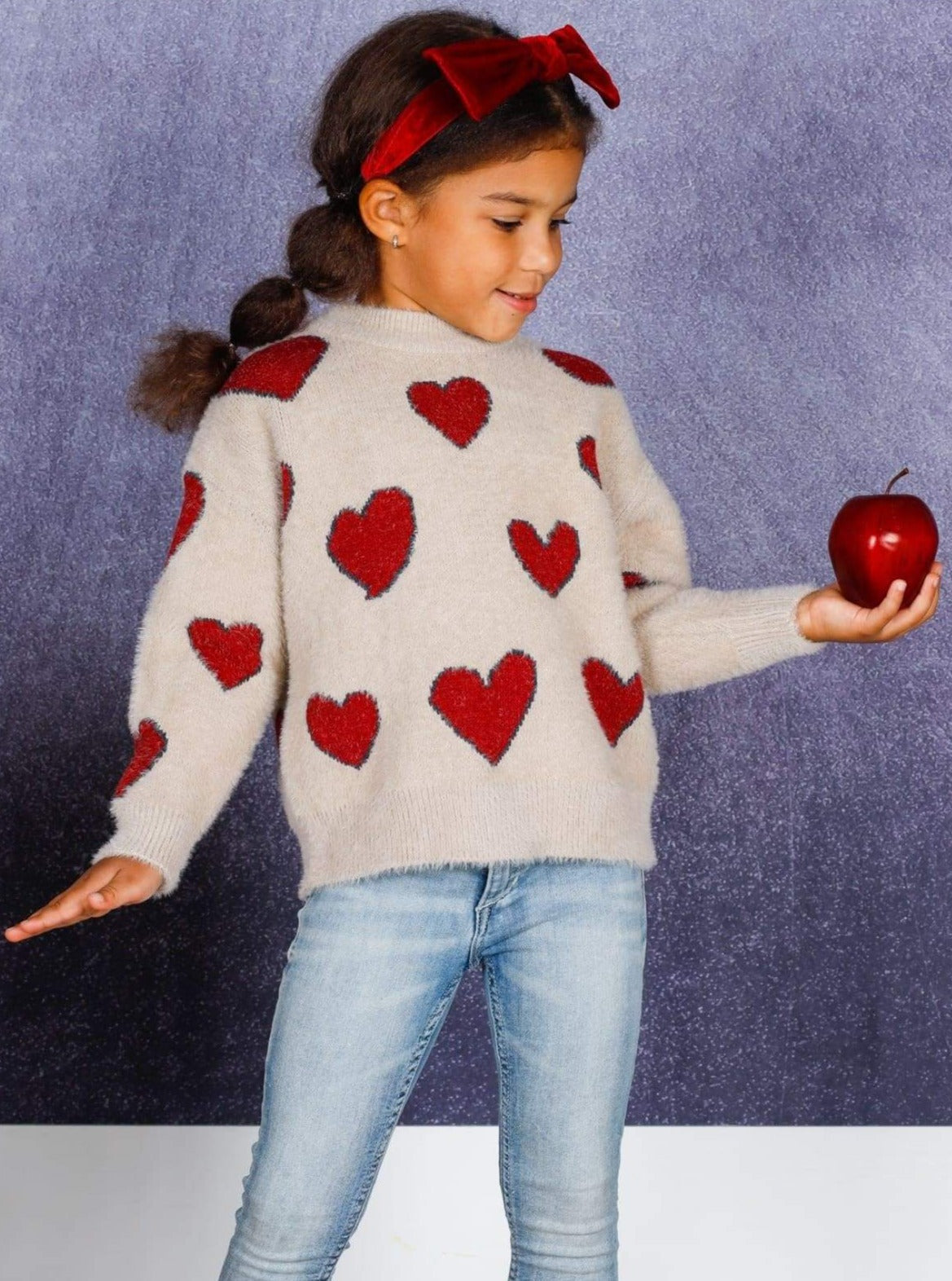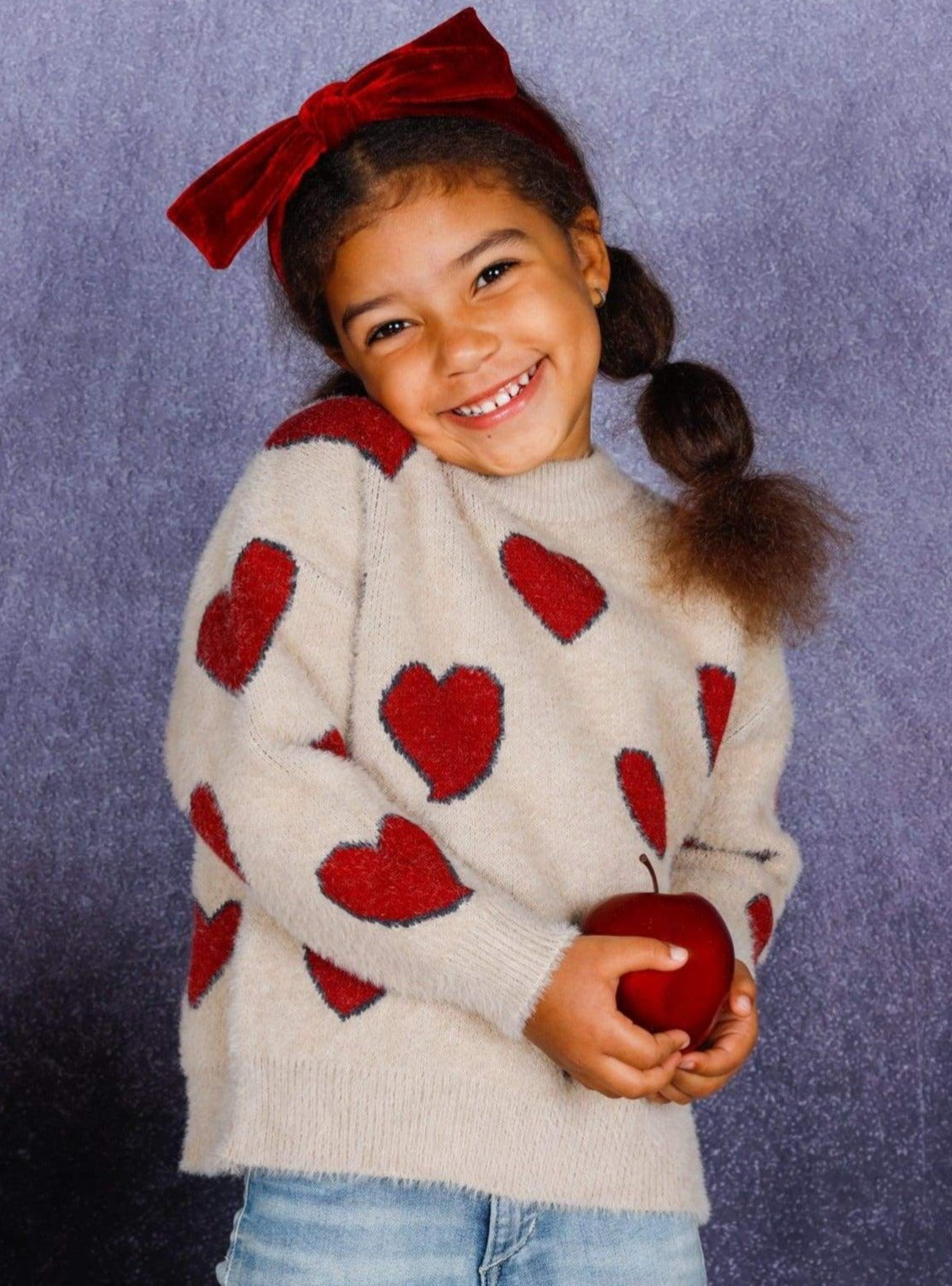 Cupid chose your little cutie to look precious in this heart print sweater. Super soft and plush fabric will have her snuggling with her loved ones all day long!