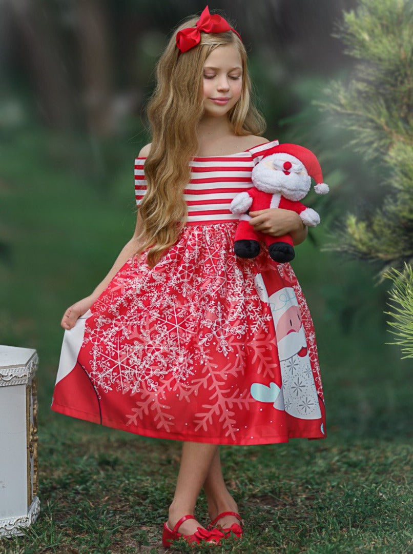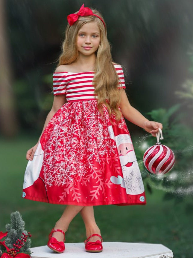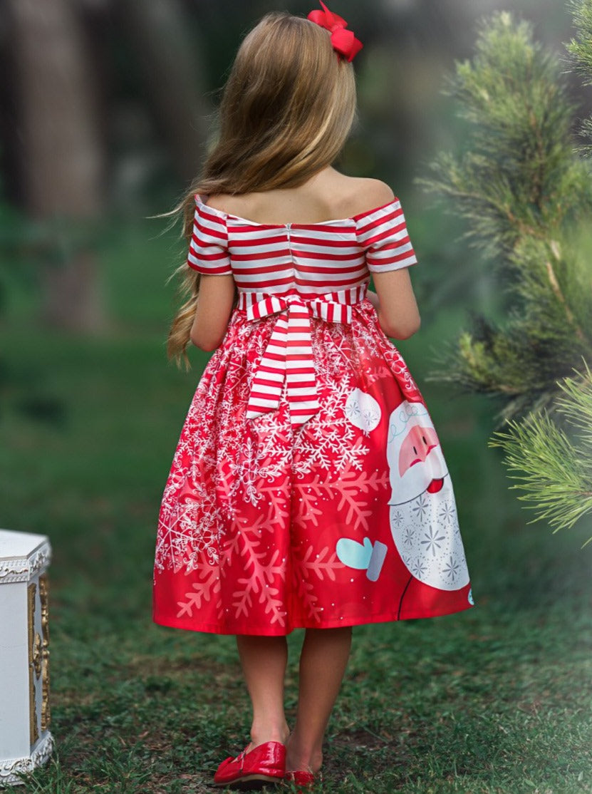 Santa's coming to town! Make sure your sweet sugar plum is dressed for the occasion in our girl's formal off-shoulder dress. Ideal for special events, pageants, and photo opportunities.