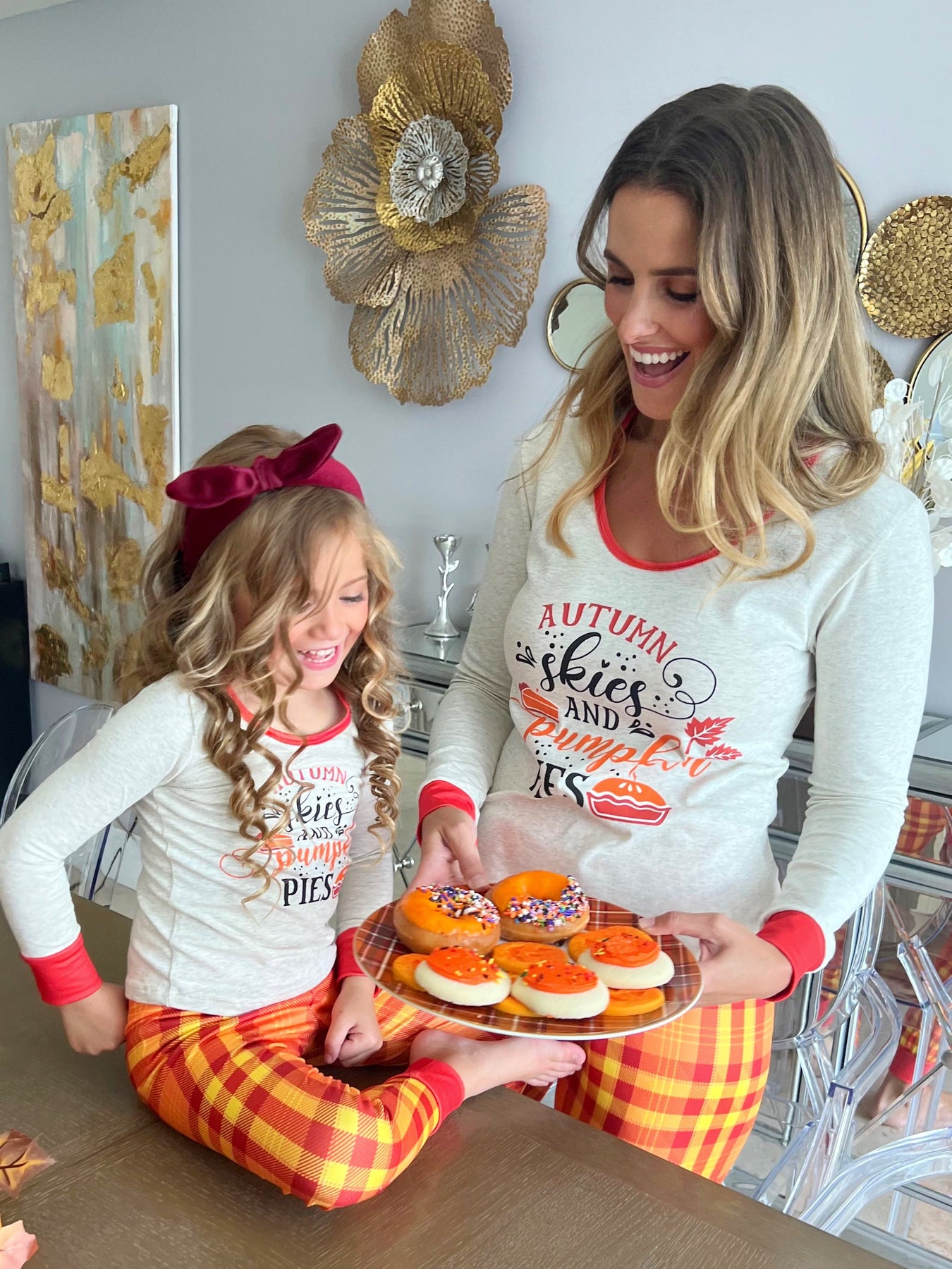 Yay! It's finally Fall! Time to get cute and cozy with our mother-daughter matching plaid pajama set. They'll be perfect for cuddling up close after holiday meals.