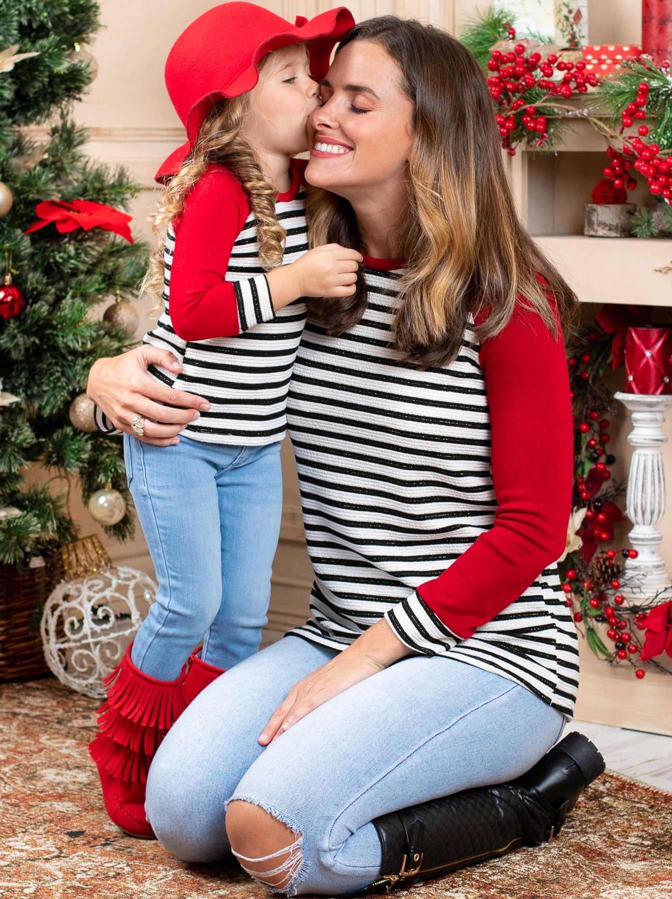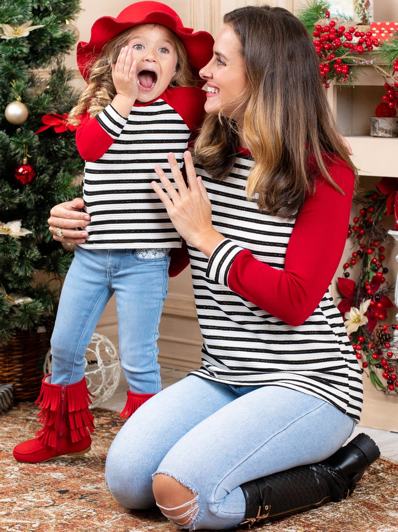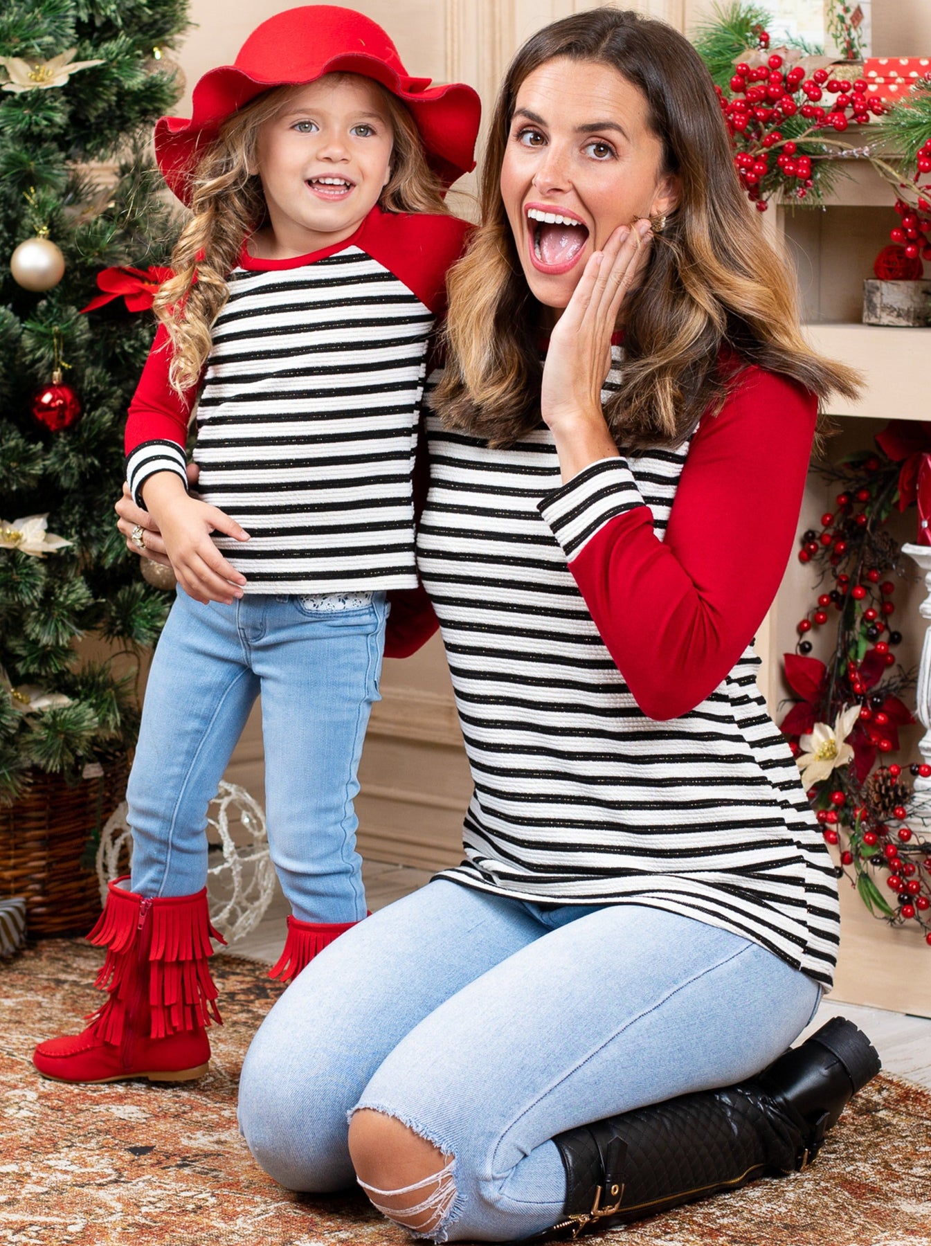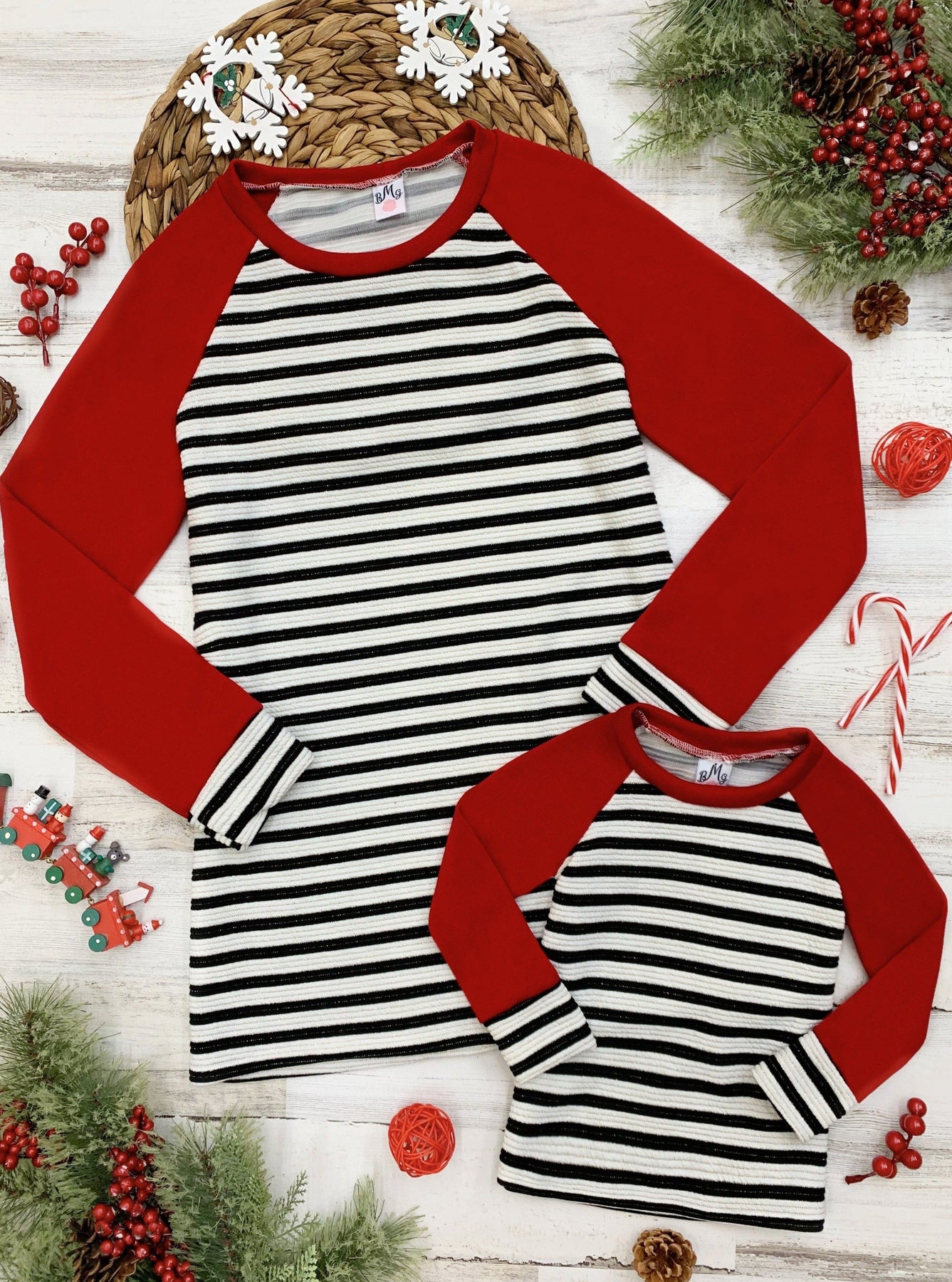 We believe it’s past time that you and your mini-me treat yo’elves to some merry matching Mommy & Me raglan style tops. Twin your way through the holidays in identical long sleeve striped shirts to make all the other moms Grinch-green with envy.