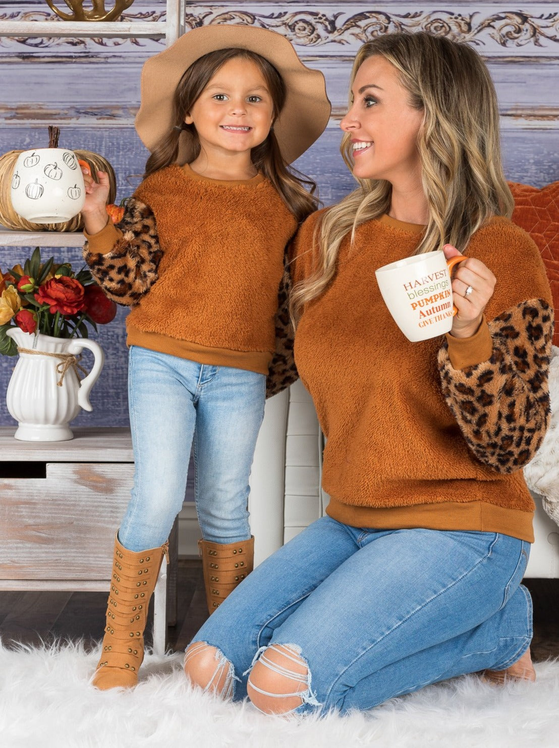 • When it comes to looking fierce, our plush leopard raglan sleeve sweater does the trick! Such an adorable matching mother-daughter design to keep you snuggled up close all season long