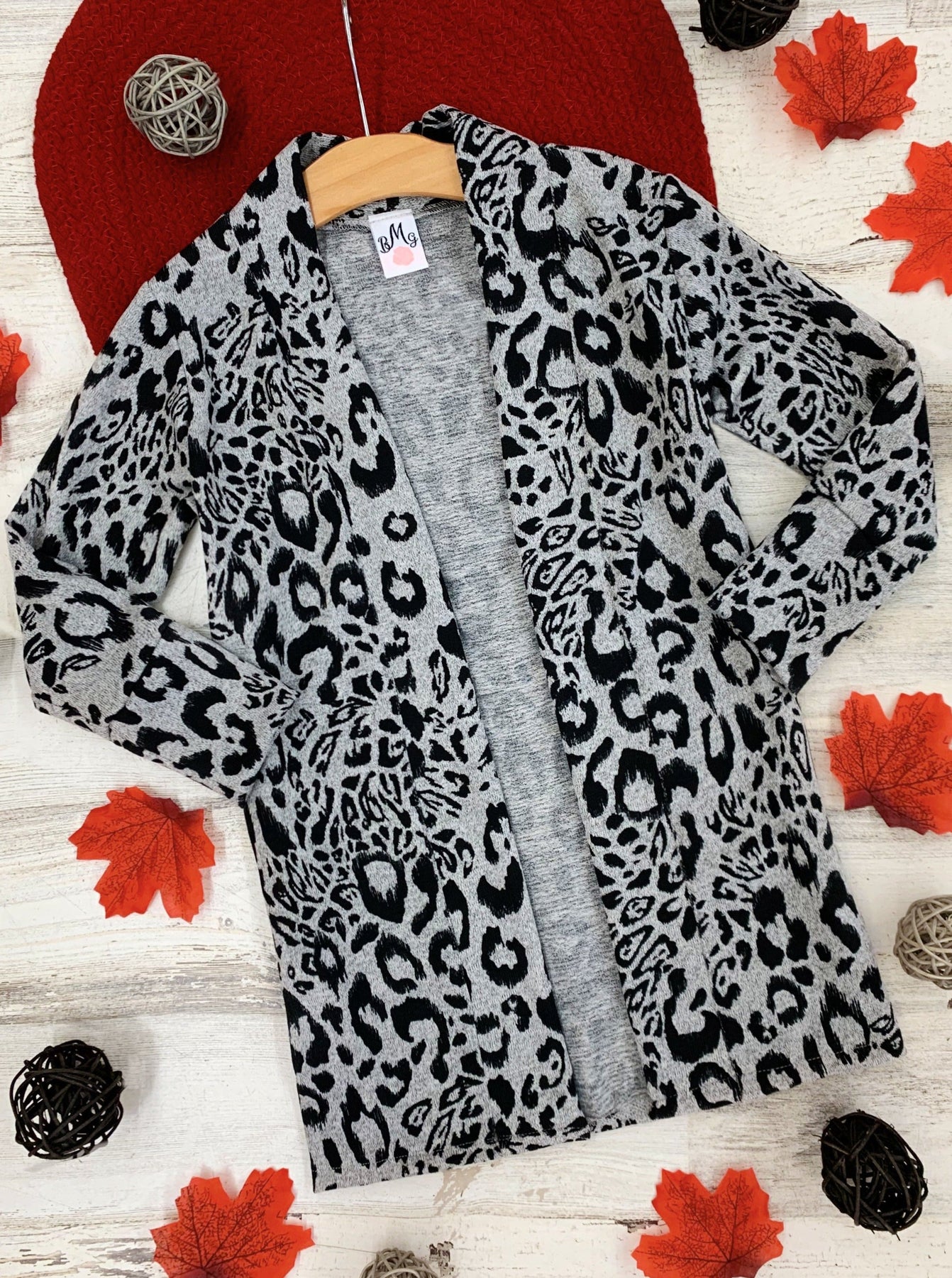 Wild, fierce, and twinning like crazy, these oversized cardigans are the ideal mother-daughter matching outerwear. The soft grey background and leopard print pattern help tops, jeans, and accessories pop with vivid color.
