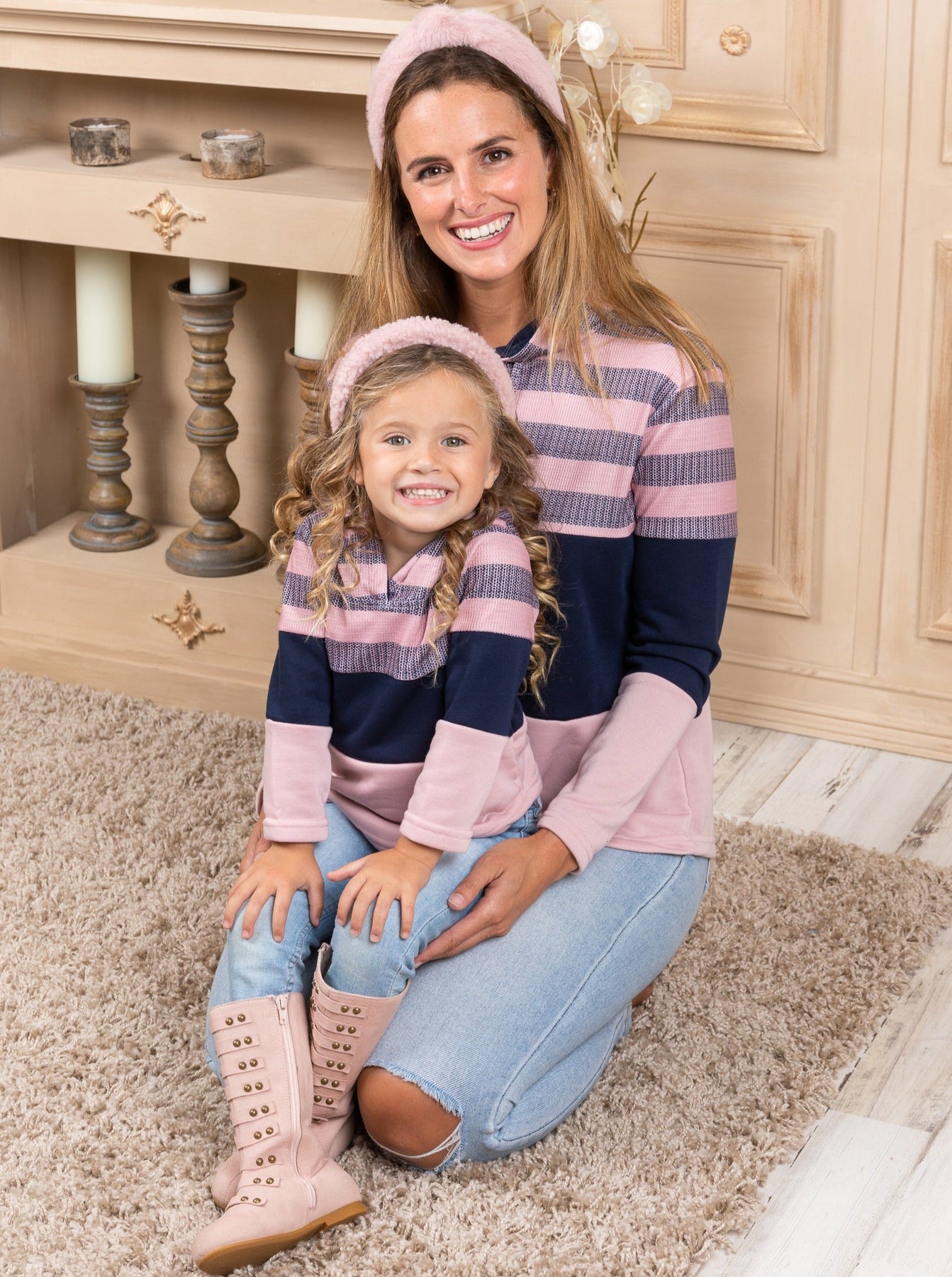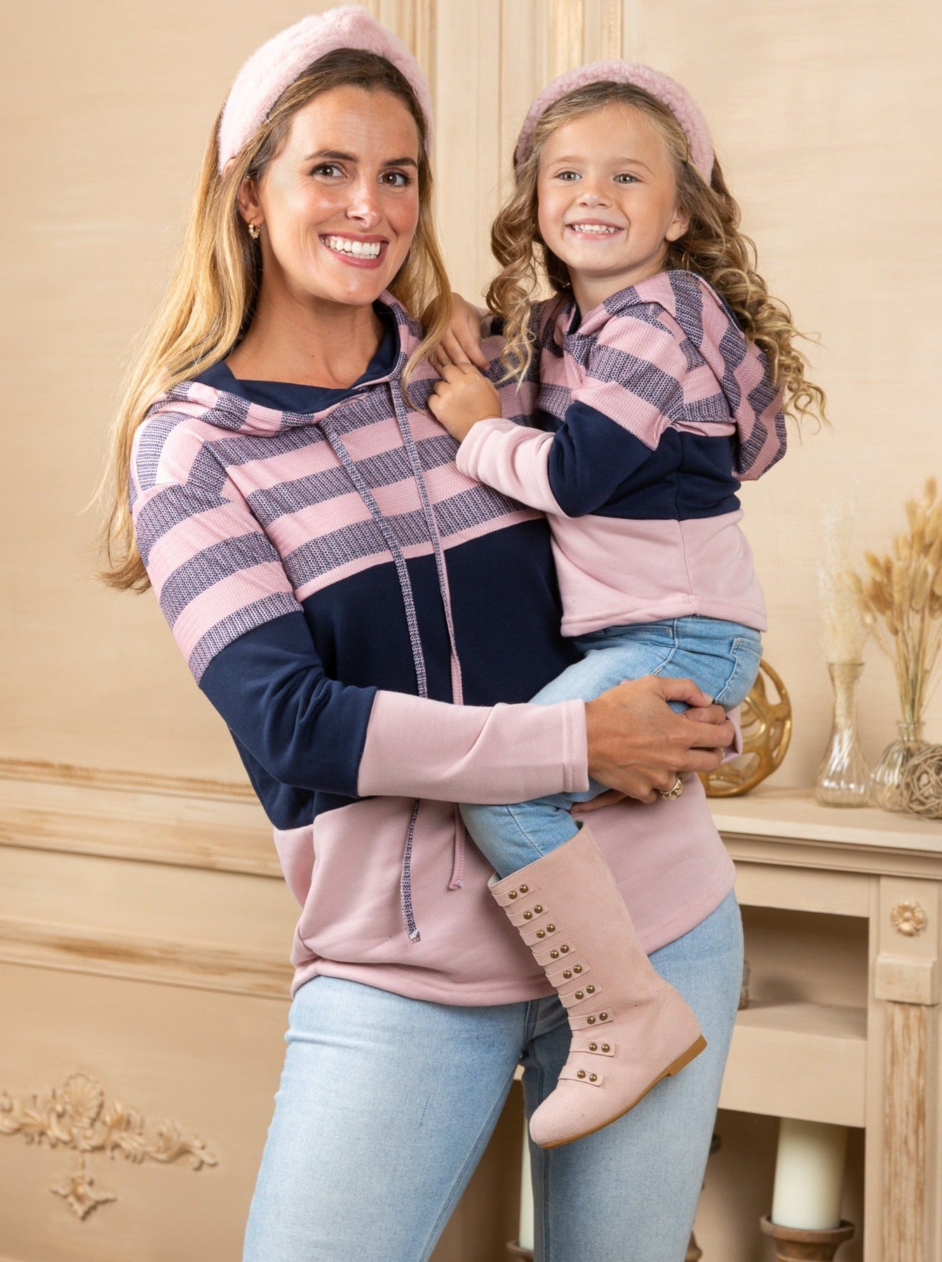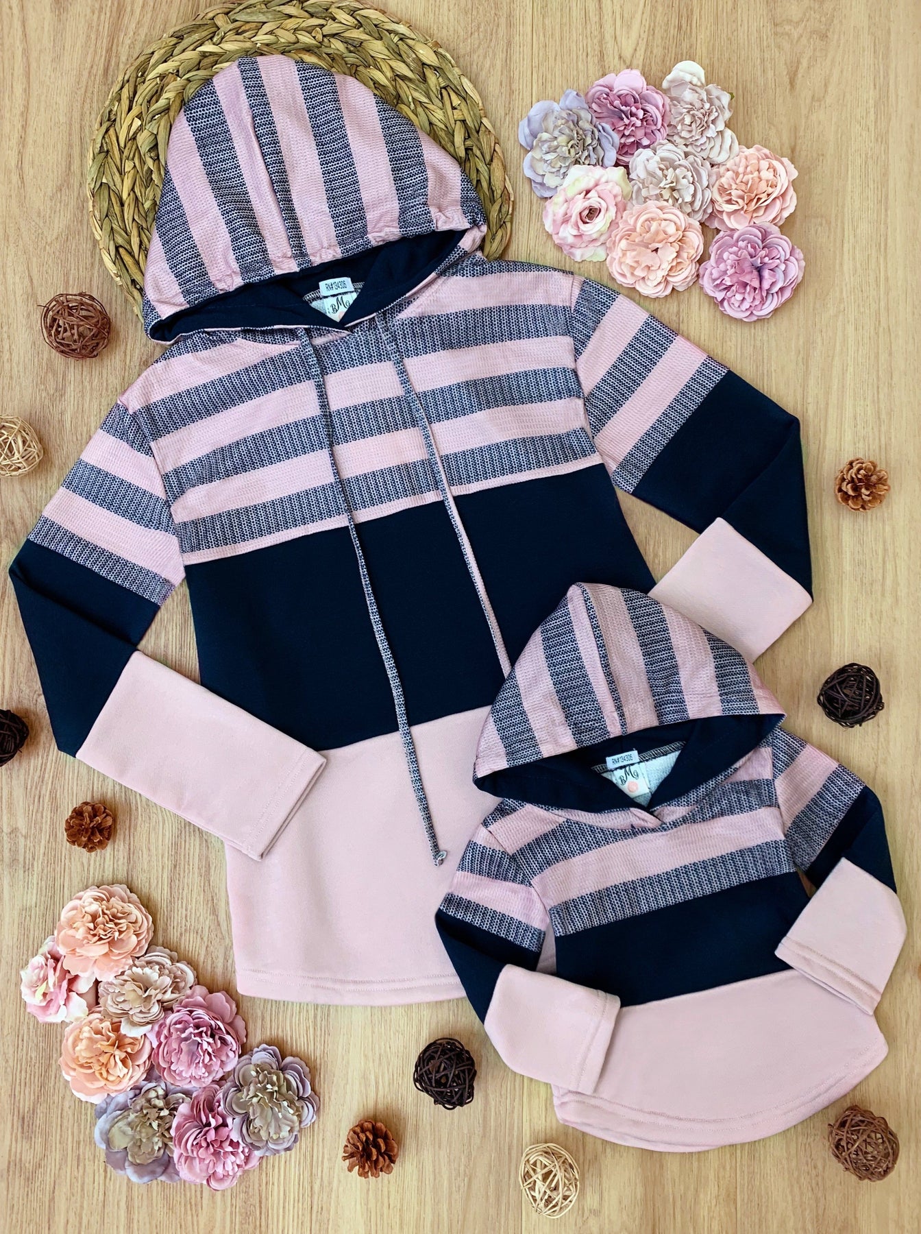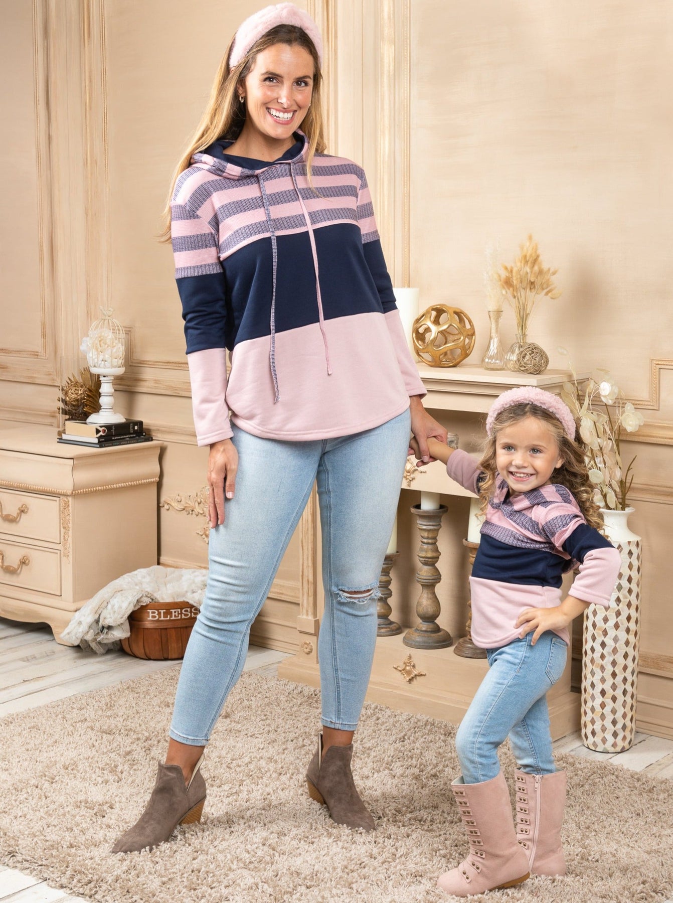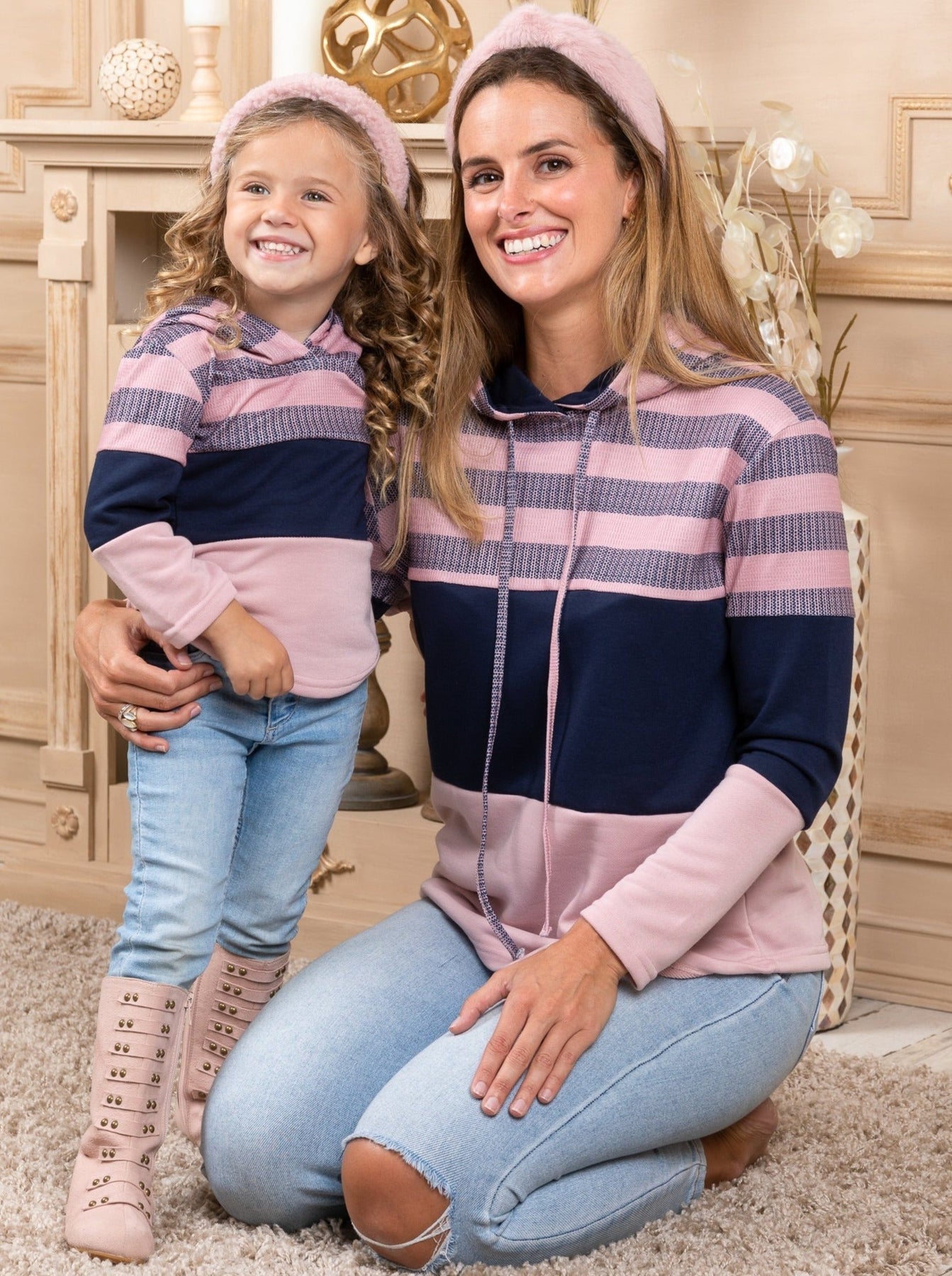 Sweet sweaters for even sweater fashionistas! These cozy striped hoodies have identical stripes and color blocking. With soft, huggable fabric, you'll love the look and feel wash after wash.