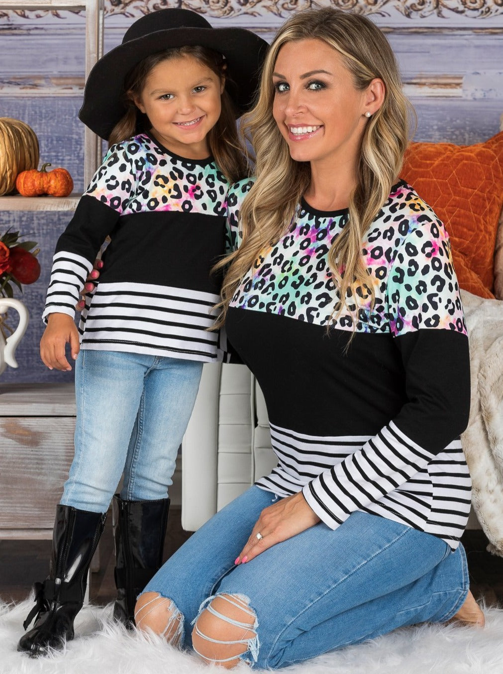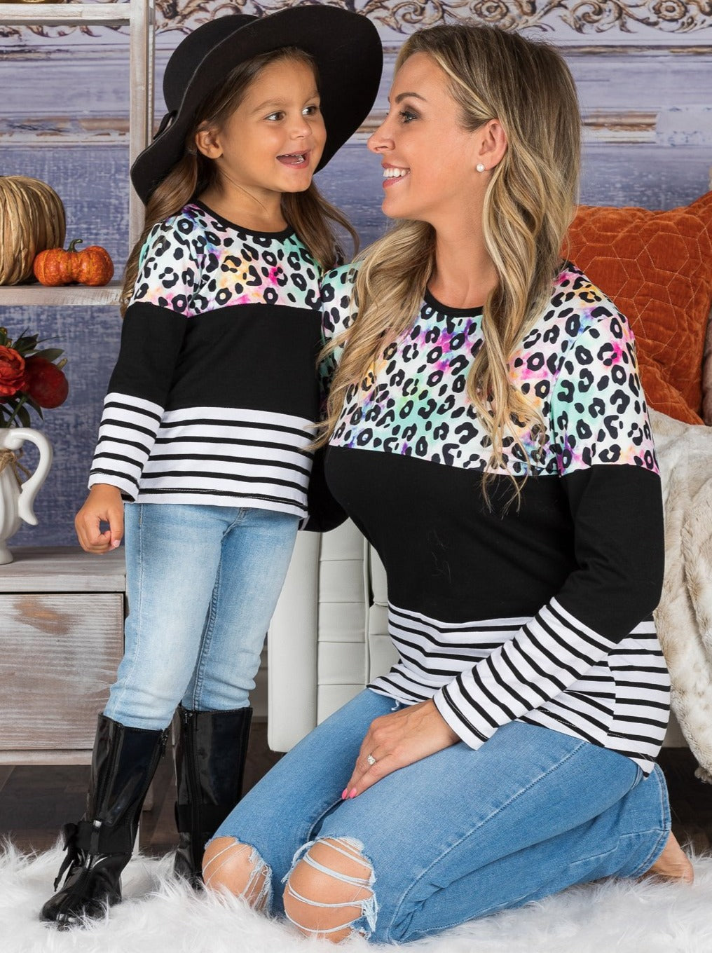 Mommy and Me Matching Tops | Pastel Leopard Colorblock Top | Girls Clothes