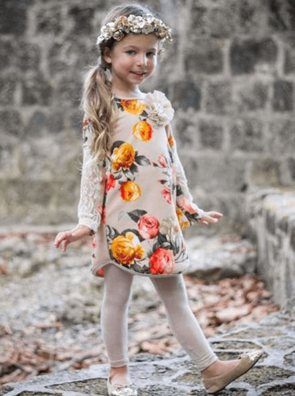 Every girl loves flowers and lace. Now your fashionista can have them both in this stylish leggings set. Look at those boho-chic sleeves! So adorable and sweet!