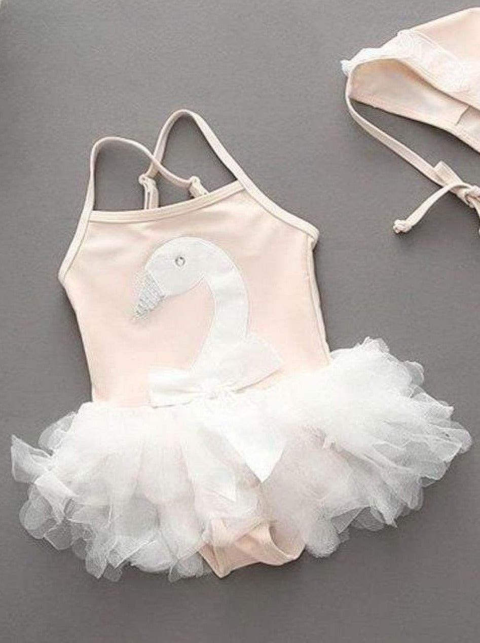 Girls Swan Tutu Mesh Ruffled Skirt One Piece Swimsuit - Girls One Piece Swimsuit