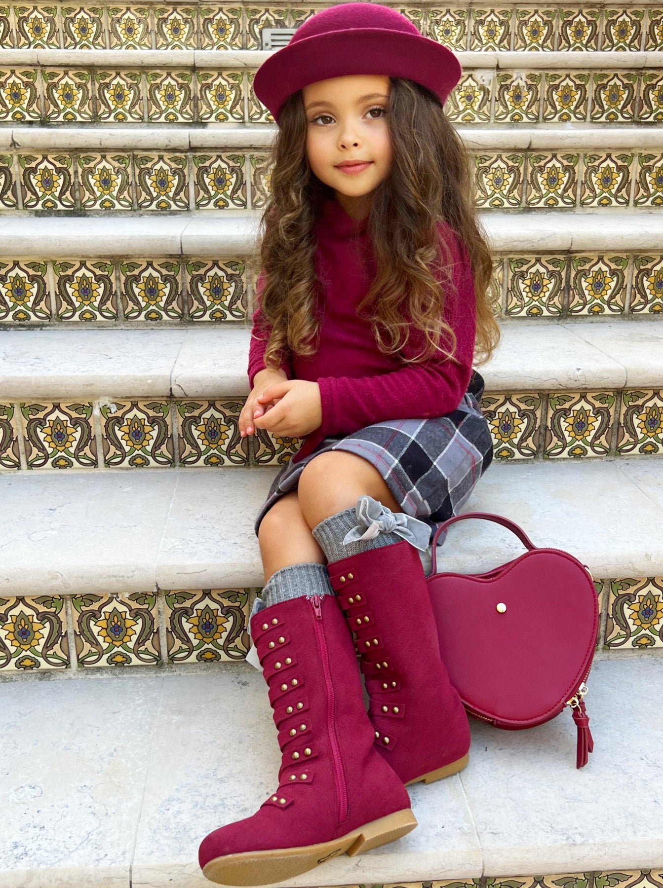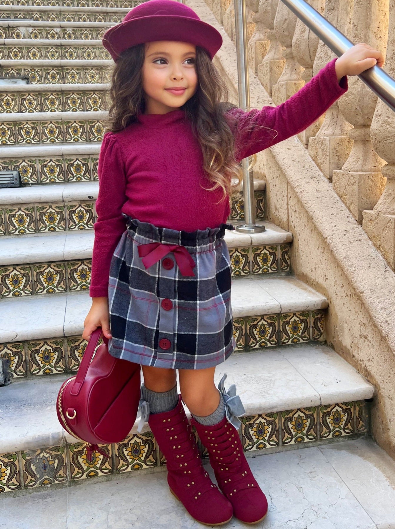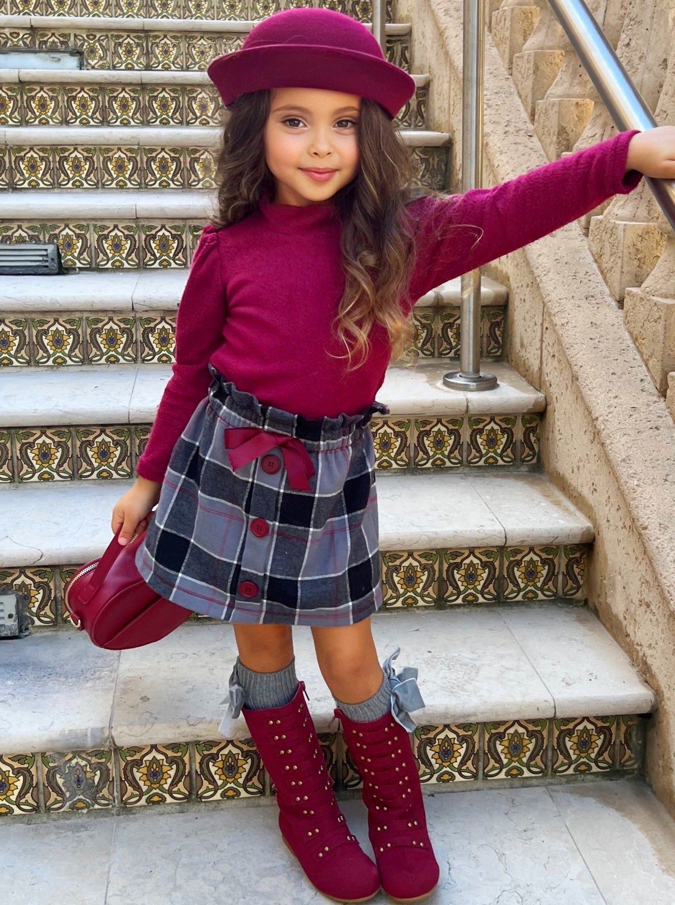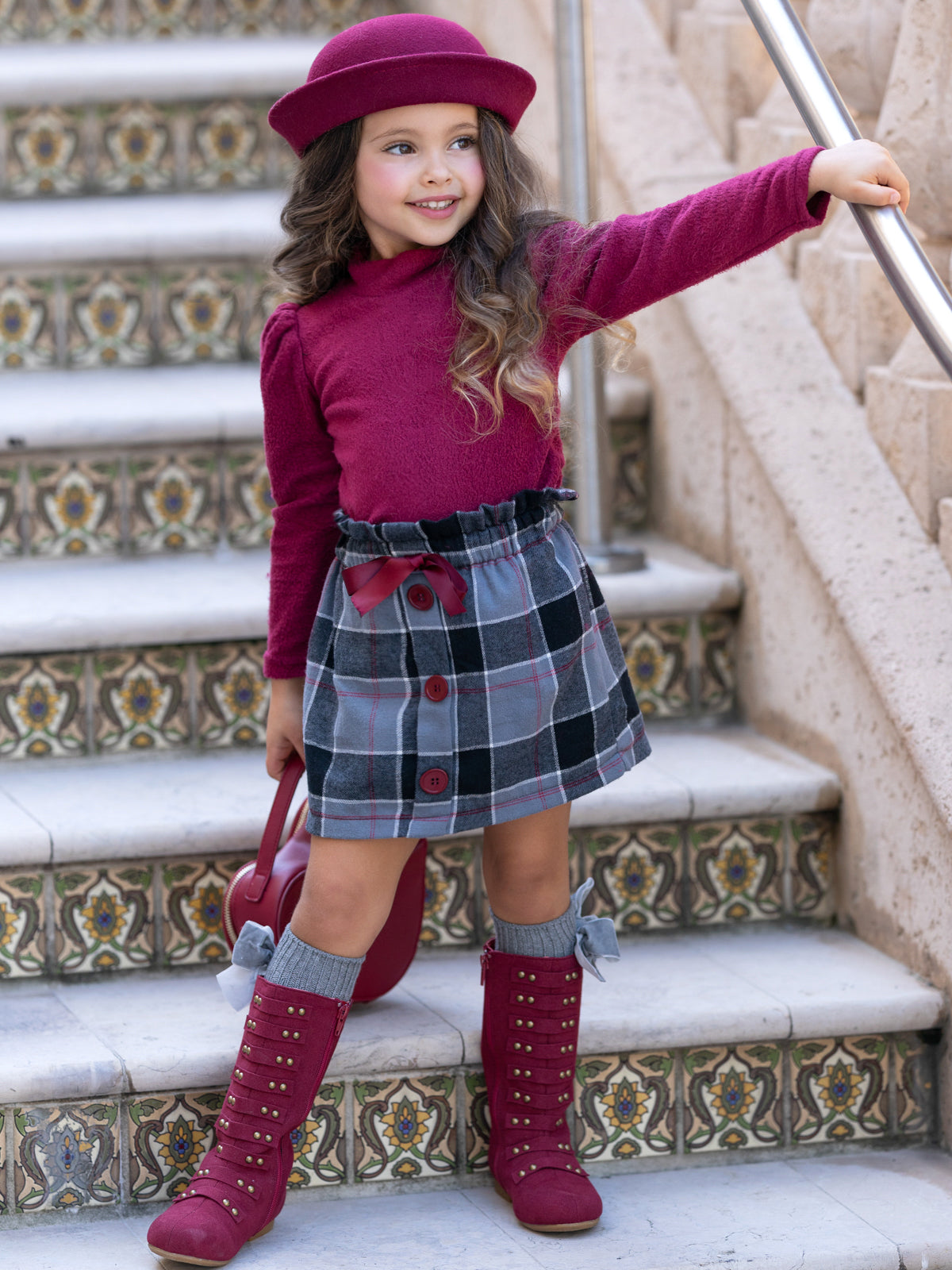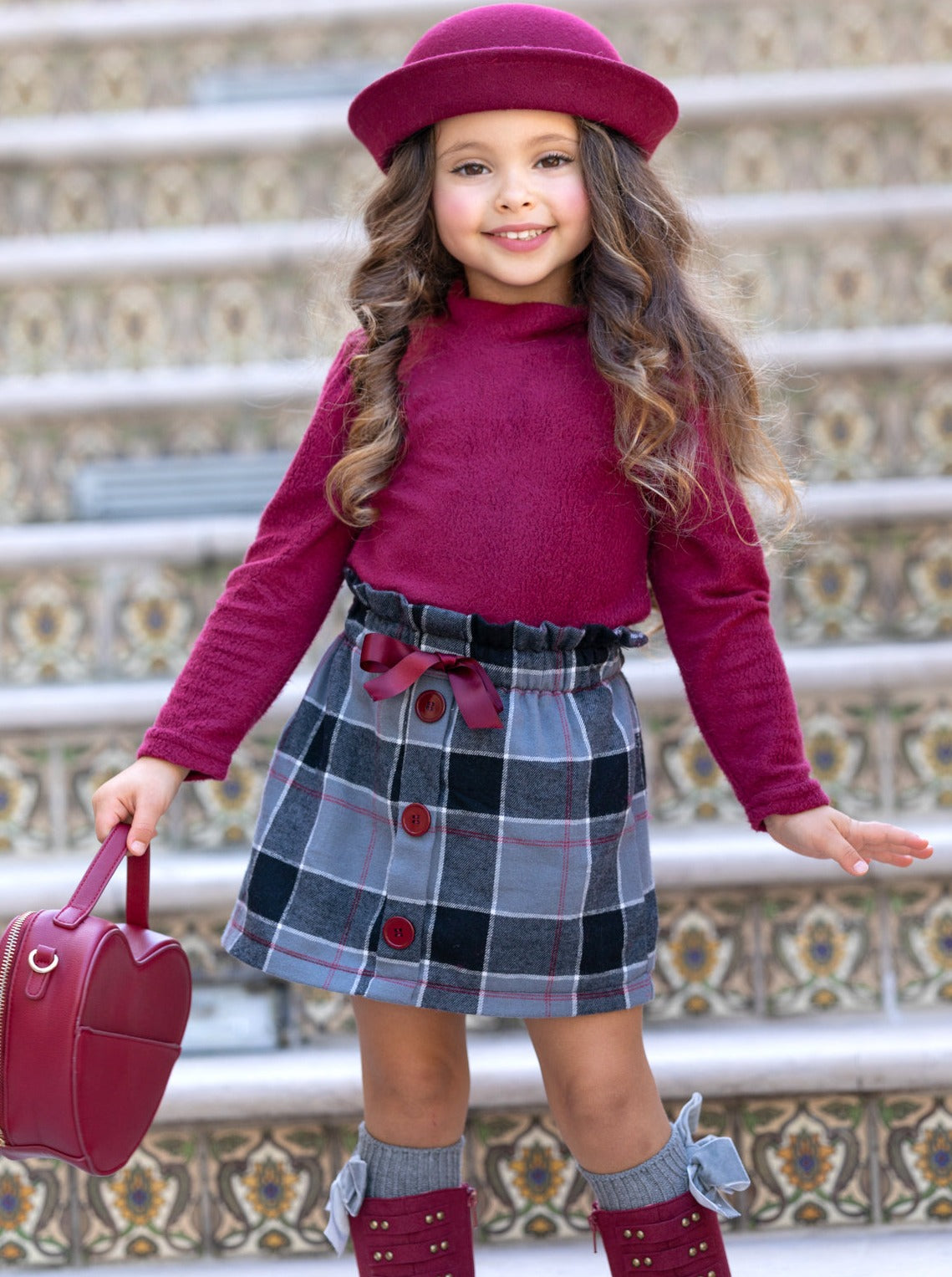 Tell us this isn't the cutest turtleneck skirt set you've seen all season! We know you can't! We love the warm wooly fabric, lush color, and always trendy plaid skirt--and so will your little girl!