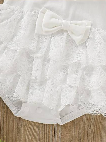 A cute, soft little look for your little princess. The bow and ruffles are perfect for your precious little girl
